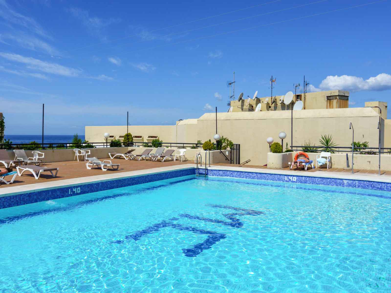 Petite résidence "apartamento fuerte marbella". À 200 m de la mer. en commun: piscine rectangulaire (5 x 10 m, profondeur 140 cm, disponibilité saisonnière: 01.jan. - 31.dec.). infrastructures de la résidence: restaurant, bar, ascenseur, terrasse sur le toit. place de parking no 101. supermarché 120 m, restaurant 30 m, arrêt de bus