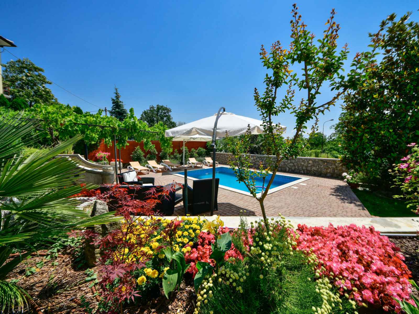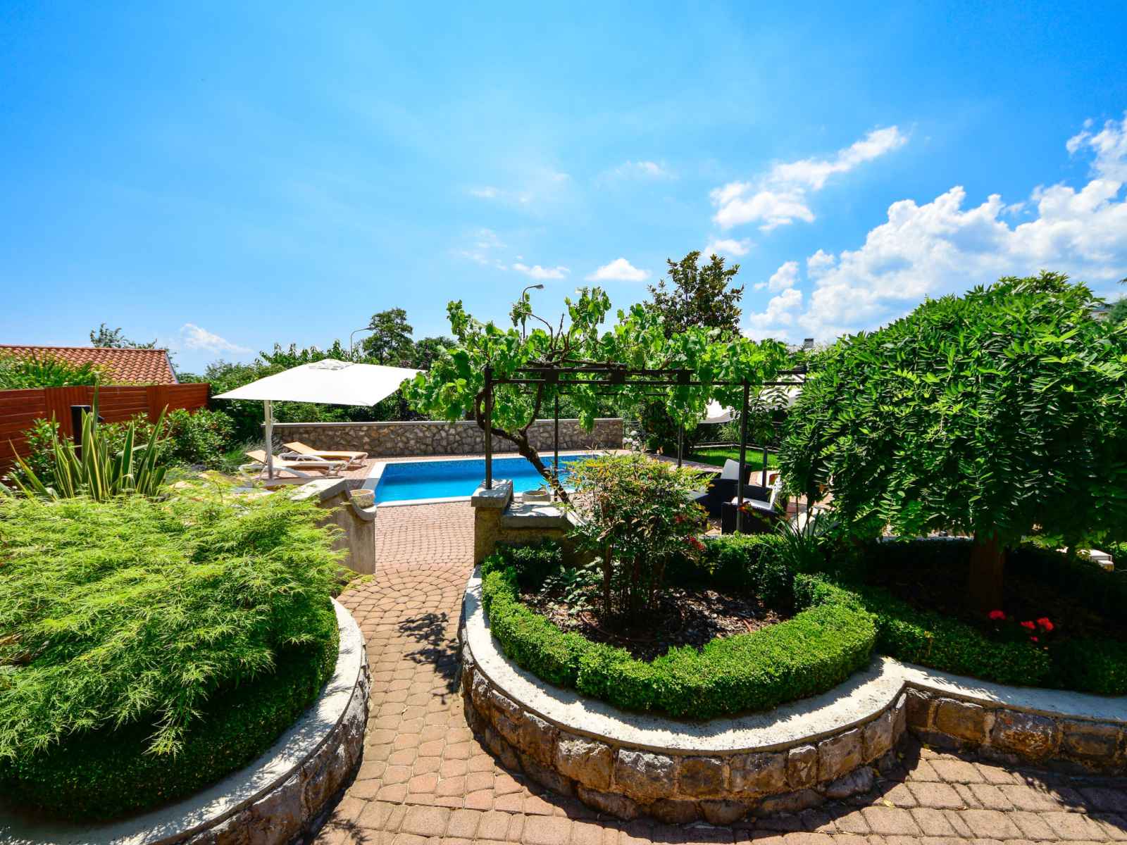 Matulji: immeuble "lidija". À 800 m du centre de matulji, à 5.5 km du centre d'opatija, situation ensoleillée, à 3.5 km de la mer, à 3.5 km de la plage. en commun: terrain 1'200 m2. a usage privé: terrain 400 m2, jardin avec plantes et fleurs, piscine rectangulaire (6 x 4 m, profondeur 140 cm, disponibilité saisonnière: 27.avr. - 12.oct.).