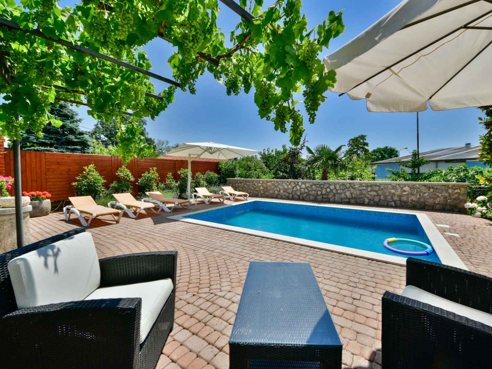 bassin pour les enfants, douche extérieure, terrasse (50 m2), meubles de jardin, barbecue. infrastructures de la maison: accès internet. place de parking (pour 3 voitures) près de la maison sur le terrain. magasins 800 m, supermarché 1.4 km, restaurant 800 m, arrêt de bus 260 m, plage de graviers 3.5 km, plage bétonnée 3.5 km.