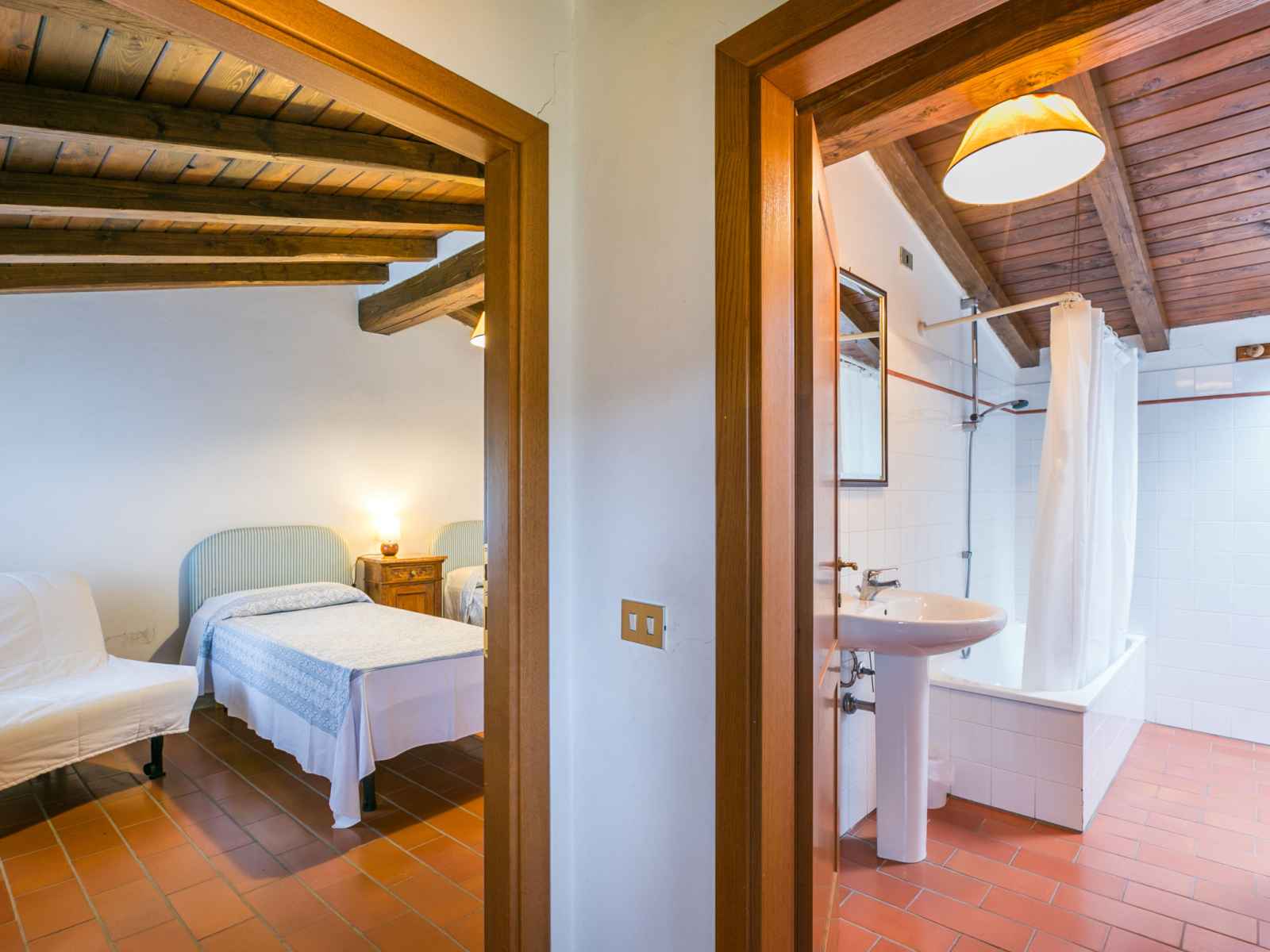 pergola, espace de jeux pour les enfants. infrastructures de la maison: connexion wifi, baby foot, lave-linge (en commun), chauffage payable localement, possibilité de chauffage uniquement du 01.nov. - 04.avr.. magasins 700 m, supermarché 4.5 km, arrêt de bus 100 m, plage de sable "viareggio" 60 km, centre thermal "montecatini" 10 km. terrain de golf (18 trous) 13 km. attractions à proximité: montecarlo 12 km, pistoia 30 km, san miniato 38 km, pisa 55 km. vente locale de produits de la ferme. veuillez noter: le propriétaire habite sur le même terrain.