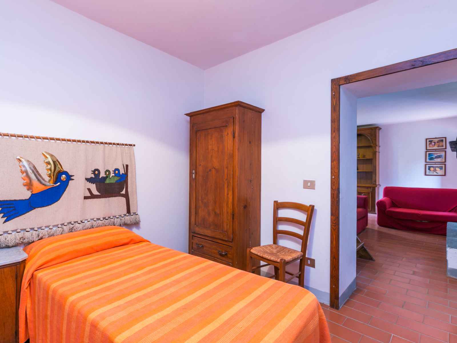 chambre double avec douche/WC. Bain/WC. Chauffage au gaz. Jardinet. Meubles de terrasse, barbecue (portable). Vue panoramique. A disposition: moustiquaire, chaise haute pour enfant, lit bébé jusqu'à 2 ans, bois (en sus). Place de parking près de la maison. Veuillez noter: logement non-fumeur. Maximum 2 animaux/ chiens autorisés. Entrée privée, détecteur de fumée, extincteur. Distance de la piscine env. 1 km. Accès par chemin de terre 1,3 km. IT047012B5GD79MHY5