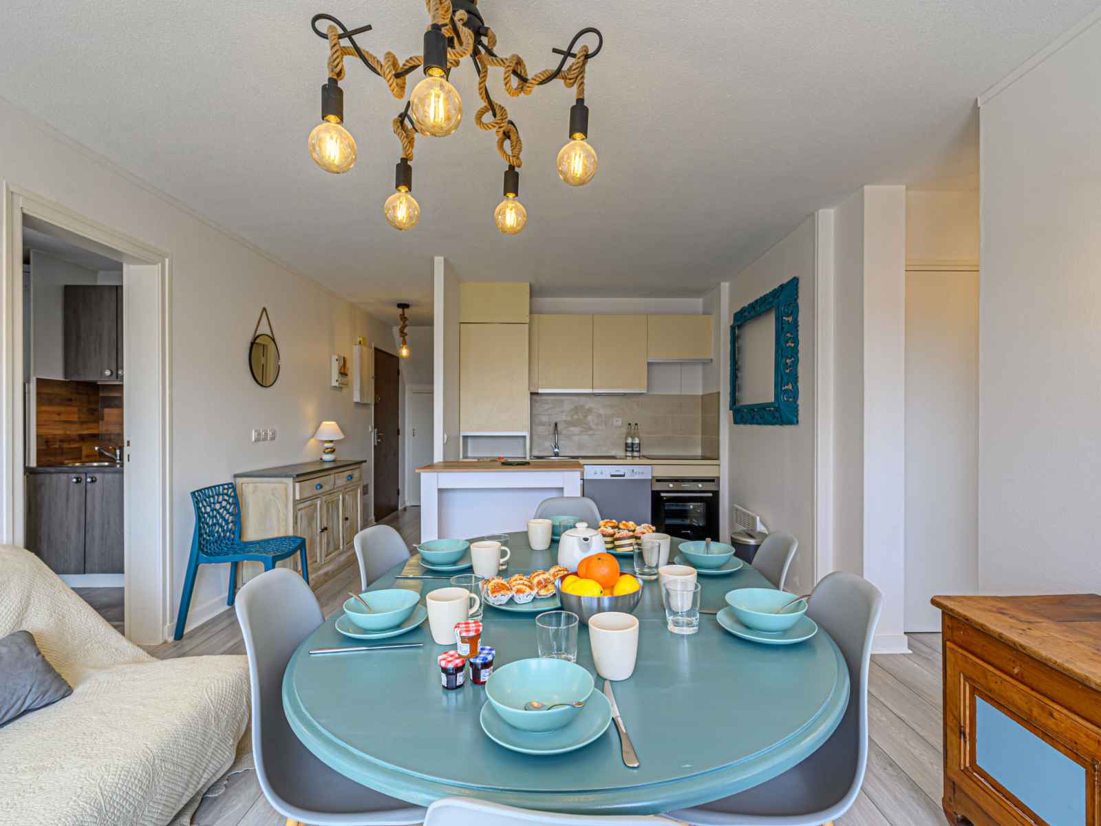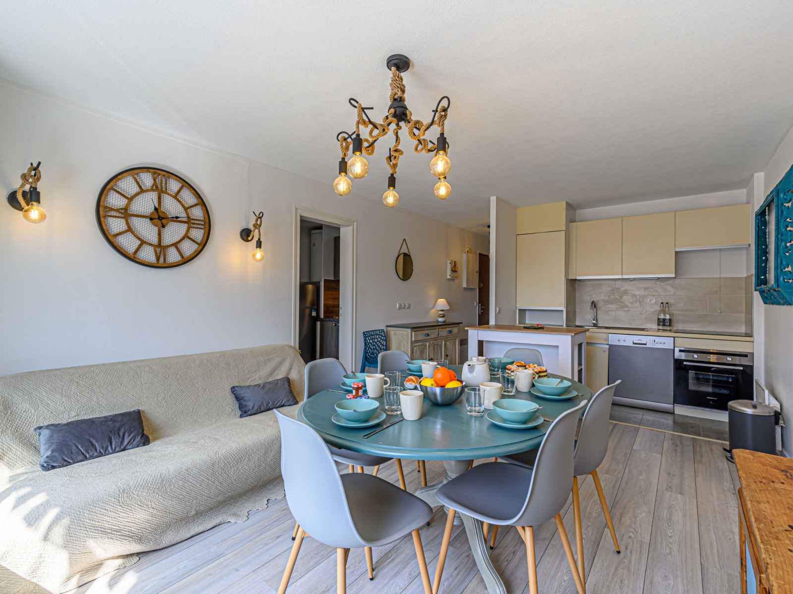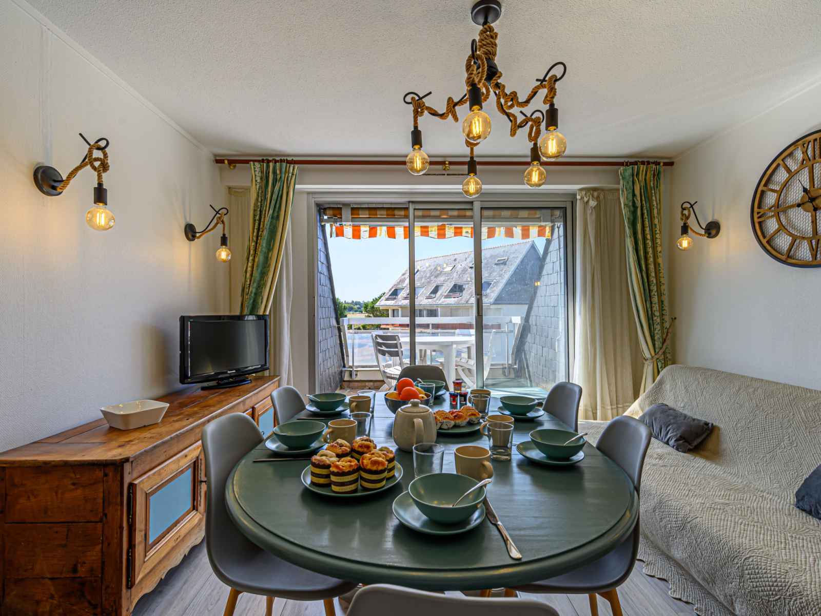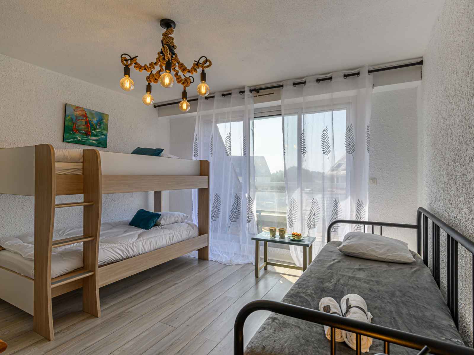 "les cardinaux", apt 4 pièces 66 m2 au 2ème étage. aménagement confortable: séjour/salle à manger avec 1 divan-lit double (1 x 140 cm, longueur 190 cm), tv (écran plat). sortie sur la terrasse. 1 chambre avec 1 grand-lit (1 x 160 cm, longueur 190 cm). 1 chambre avec 1 x 2 lits superposés (90 cm, longueur 190 cm). 1 chambre avec 1 lit (120