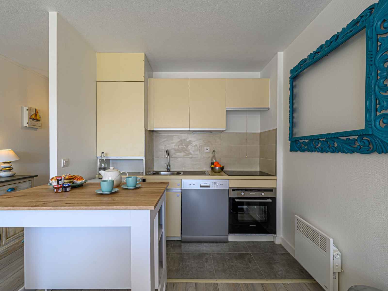 cm, longueur 190 cm). Cuisine (four, lave-vaisselle, 3 plaques à induction, bouilloire électrique, micro-ondes, cafetière électrique). Salle de bains, douche/WC, WC séparé. Balcon. Mobilier de balcon. Vue latérale sur la mer. A disposition: lave-linge. Internet (Connexion WIFI, gratuit). Place de parking No 15. Veuillez noter: détecteur de fumée. Annonce d'un particulier (art 155, IV du CGI). 56186 000633 6A