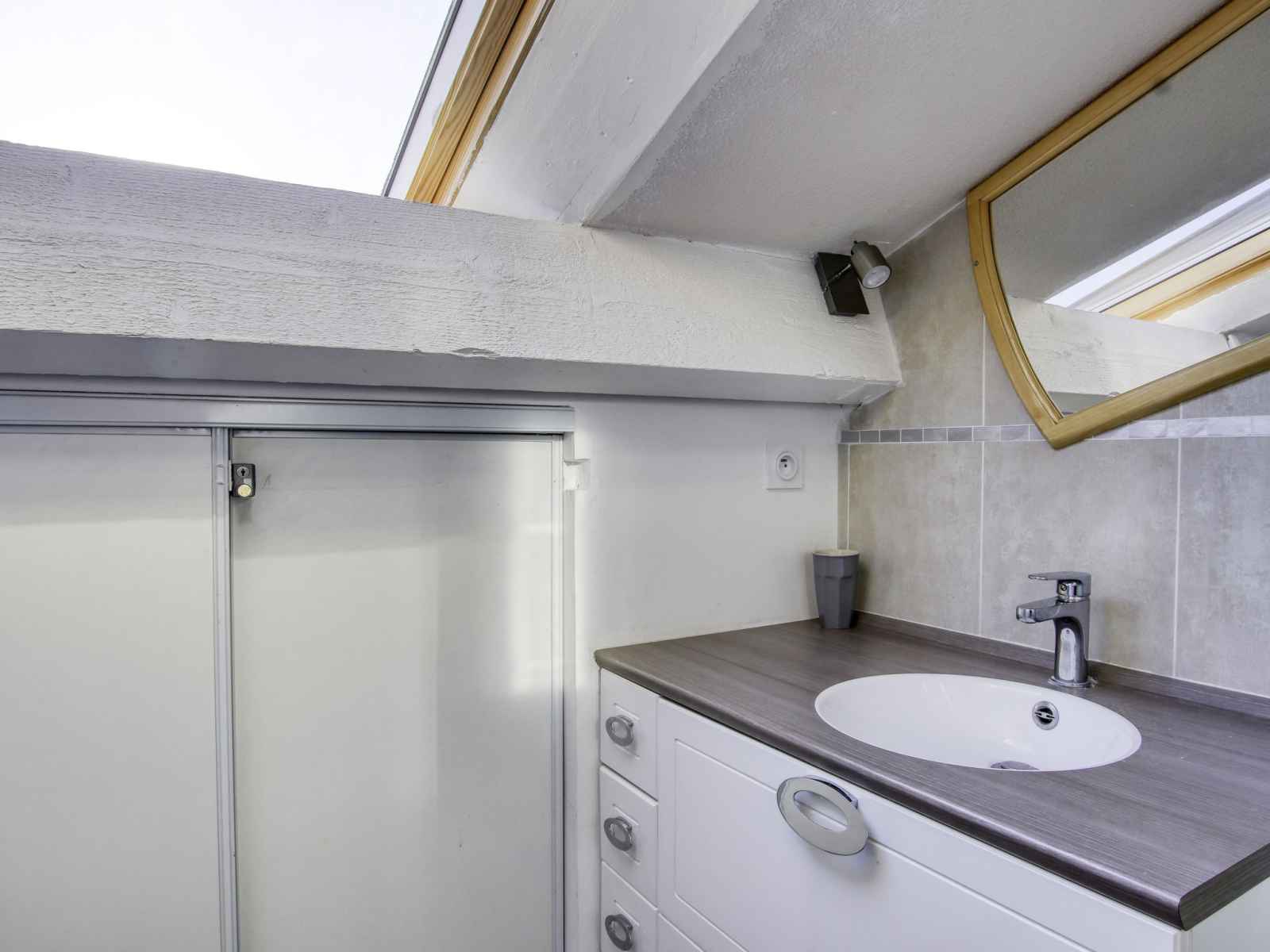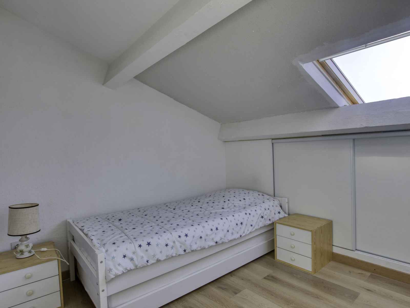 micro-ondes, congélateur, cafetière électrique). Salle de bains, WC séparé. Chauffage électrique. À l'étage supérieur: 1 chambre, mansardée avec fenêtre sous le toit avec 1 grand-lit (160 cm, longueur 200 cm). 1 chambre, mansardée avec fenêtre sous le toit avec 1 lit gigogne (2 pers. 2 x 90 cm, longueur 190 cm). Douche, WC séparé. Belle vue sur la mer. A disposition: lave-linge, sèche-linge, fer à repasser, chaise haute pour enfant, lit bébé jusqu'à 2 ans. Internet (Connexion WIFI, gratuit). Place de parking No 15. Veuillez noter: logement non-fumeur. Maximum 1 animal/ chien autorisé. TV seulement FR. Détecteur de fumée, sans ascenseur. Annonce d'un professionnel (art 155, IV du CGI) 8312300164467