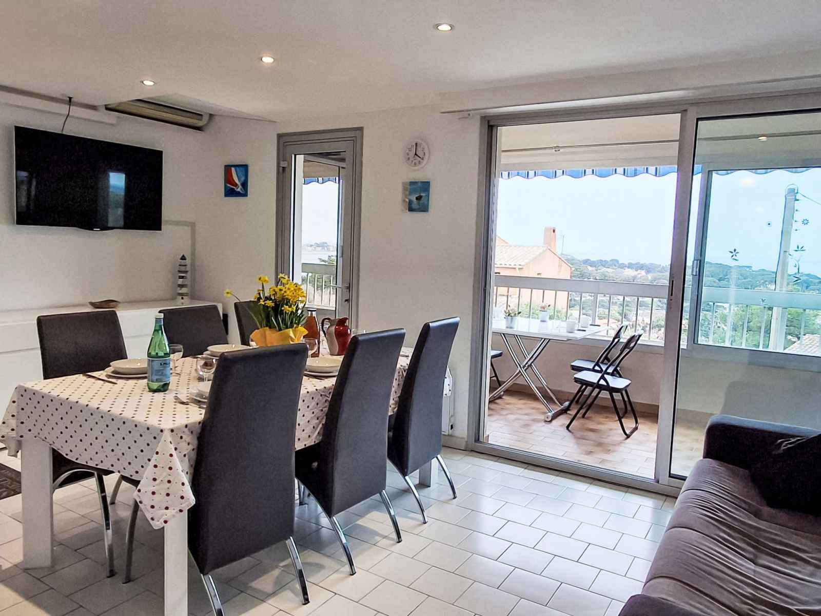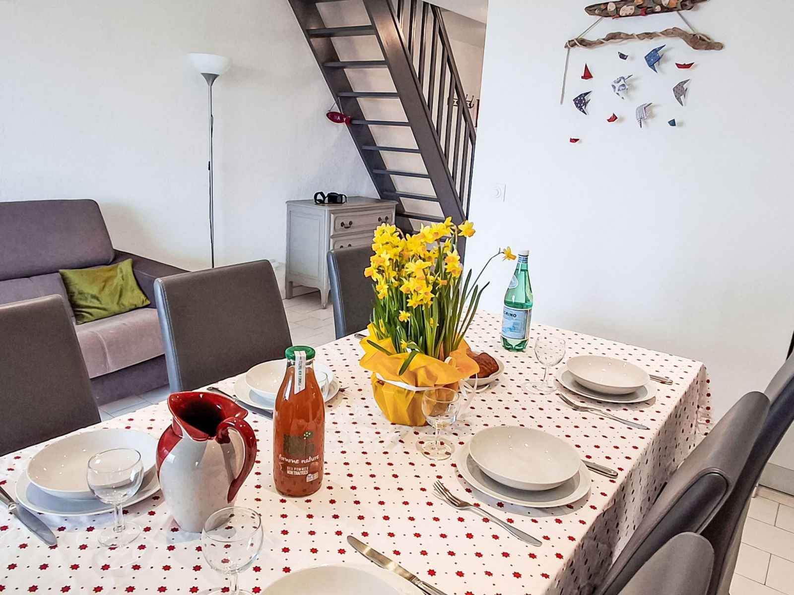 Appartement sur 2 niveaux 4 pièces 70 m2 au 1er étage, situation sud-ouest. aménagement agréable: séjour/salle à manger avec tv (écran plat), air-conditionné. sortie sur la véranda. 1 chambre avec 1 grand-lit (1 x 160 cm, longueur 200 cm). coin cuisine (four, lave-vaisselle, 4 plaques vitrocéramiques, grille-pain, bouilloire électrique,