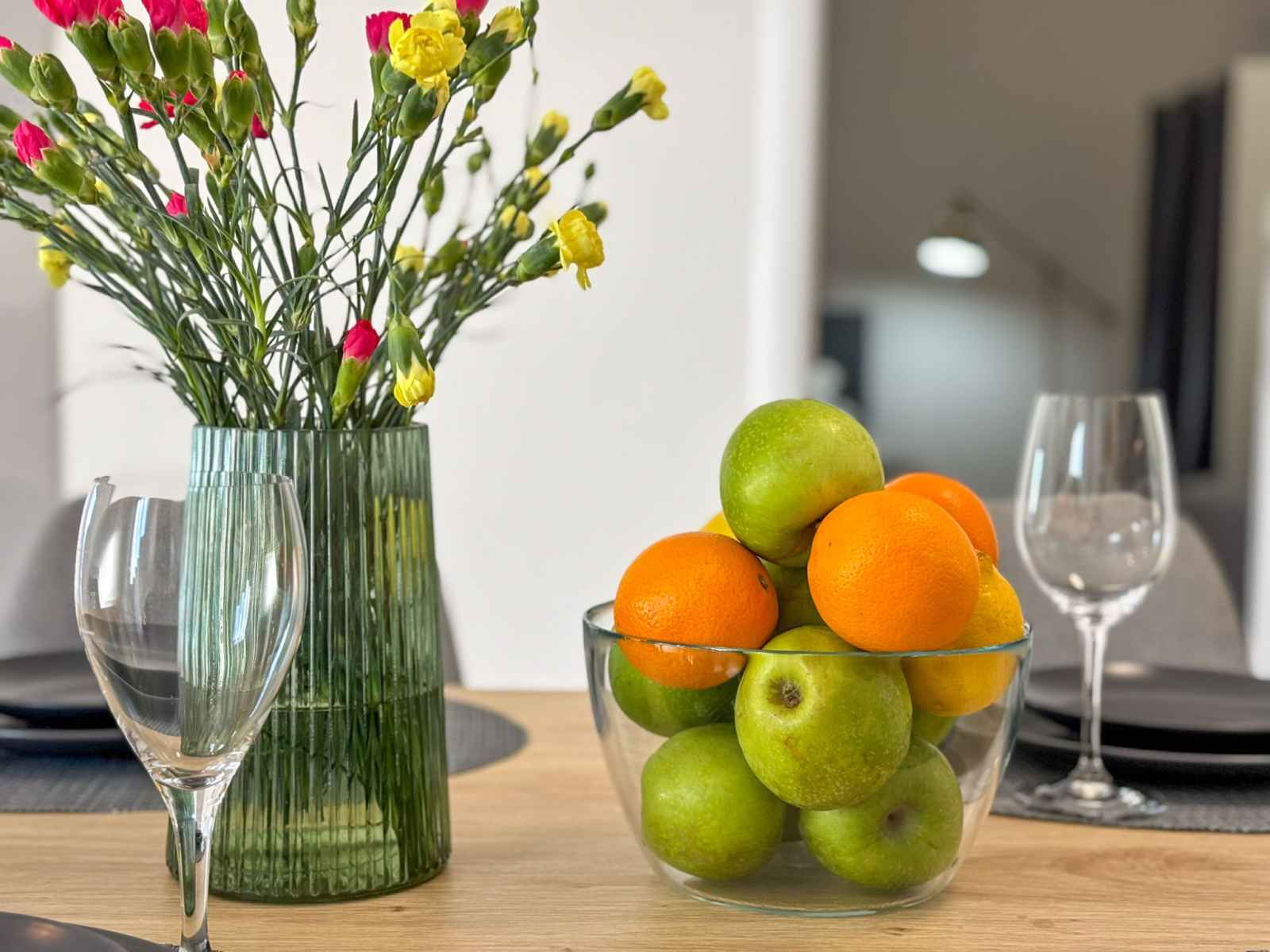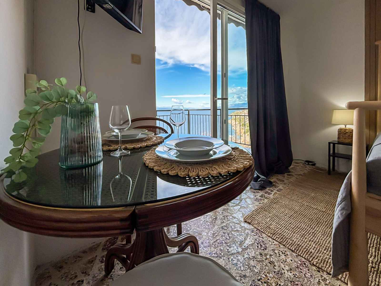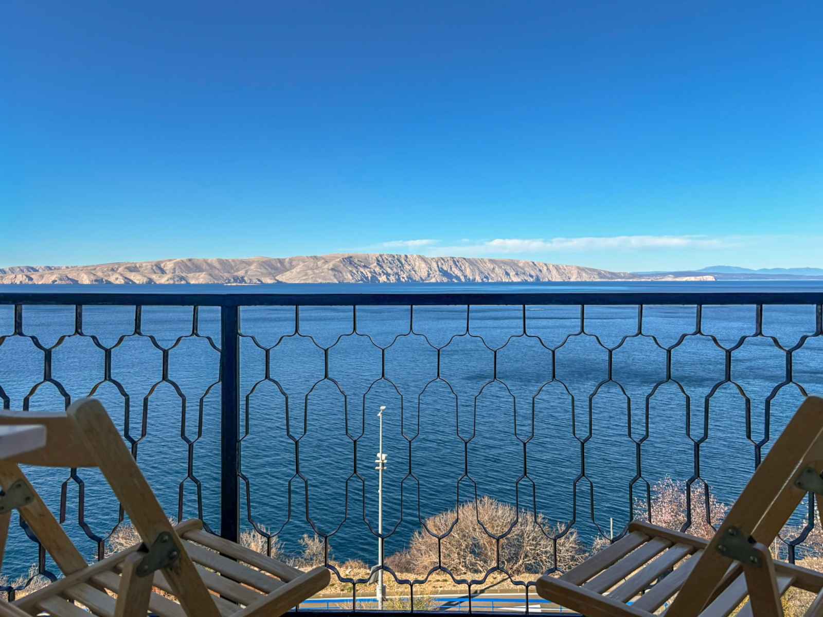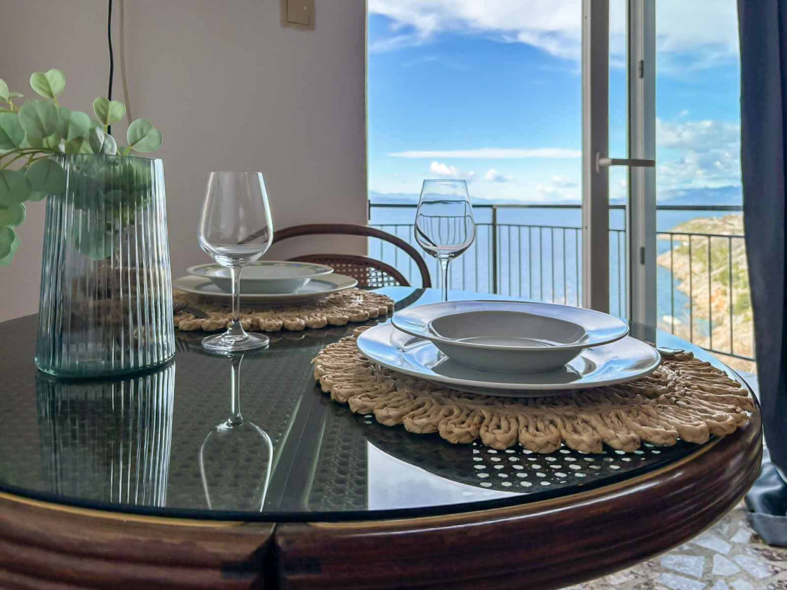 Sortie sur le balcon. 1 chambre avec 2 lits (80 cm, longueur 200 cm), air-conditionné. Cuisine ouverte (four, lave-vaisselle, 4 plaques vitrocéramiques, grille-pain, bouilloire électrique, micro-ondes, congélateur, cafetière électrique). Bain/WC, douche/WC. Pas de chauffage. Balcon 10 m2, terrasse 16 m2, terrasse 12 m2. Meubles de terrasse, mobilier de balcon. Belle vue panoramique sur la mer. A disposition: lave-linge, fer à repasser, lit bébé, sèche-cheveux. Internet (Connexion WIFI, gratuit). Veuillez noter: maison non-fumeur. Extincteur. L'appartement est constitué de 2 appartements au 2 étage loués comme un seul appartement. Un appartement: salon / chambre à coucher, cuisine ouverte. Deuxième appartement: salon / salle à manger, cuisine ouverte, 2 chambres.
