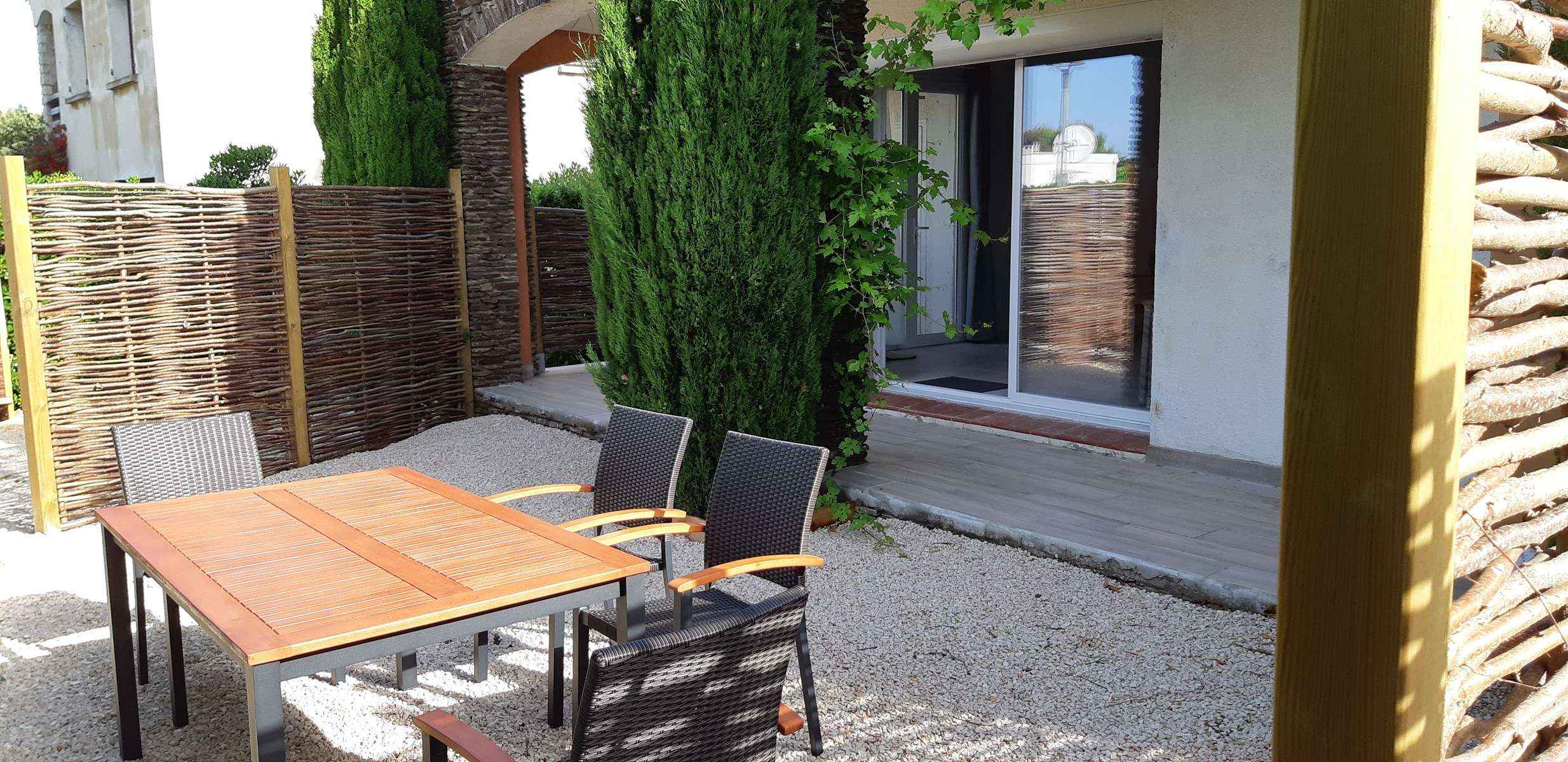 Terrasse exposée plein sud avec salon de jardin