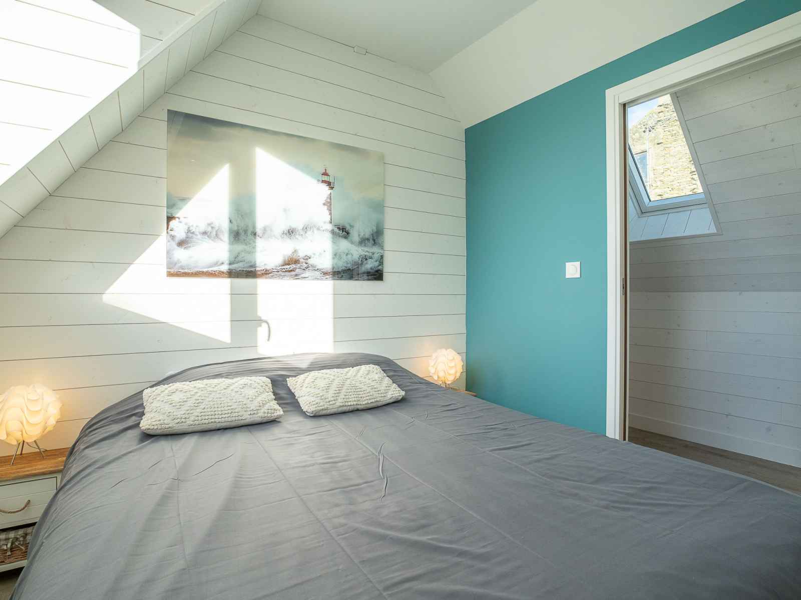 grille-pain, bouilloire électrique, micro-ondes, congélateur, cafetière électrique) avec volet roulant électrique. Douche, WC séparé, double vasque. Chauffage, chauffage électrique, chauffe eau. À l'étage supérieur: 1 grande chambre avec 1 grand-lit (1 x 160 cm, longueur 200 cm), lavabo, douche et volet roulant électrique. 2 chambres, chaque chambre avec: 2 lits (80 cm, longueur 200 cm), volet roulant électrique. Superbe vue sur la mer. A disposition: lave-linge, fer à repasser, lit bébé, sèche-cheveux. Internet (Connexion WIFI, gratuit). Veuillez noter: logement non-fumeur. Détecteur de fumée. Annonce d'un particulier (art 155, IV du CGI). 3528822A00771