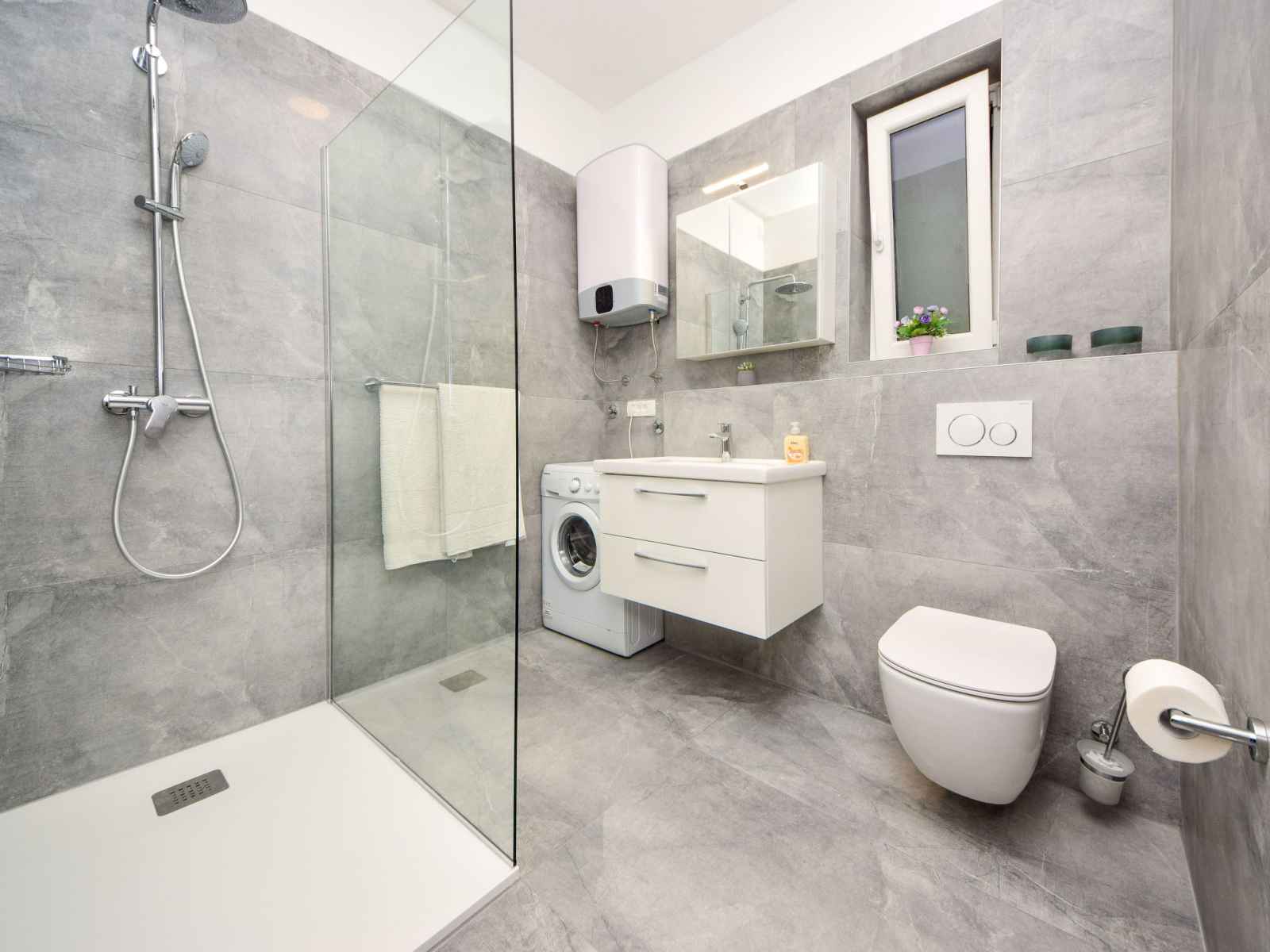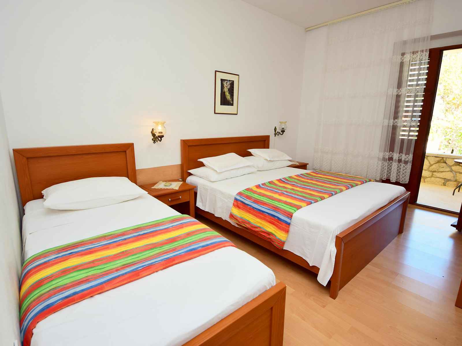 Belle maison à 2 apts "marija". dans la localité, à 300 m du centre, à 100 m de la mer, à 100 m de la plage. a usage privé: terrain 300 m2 avec plantes et fleurs, piscine rectangulaire (5 x 2 m, profondeur 130 cm, disponibilité saisonnière: 04.mai. - 30.sep.) avec marches intérieures. barbecue. infrastructures de la maison: accès