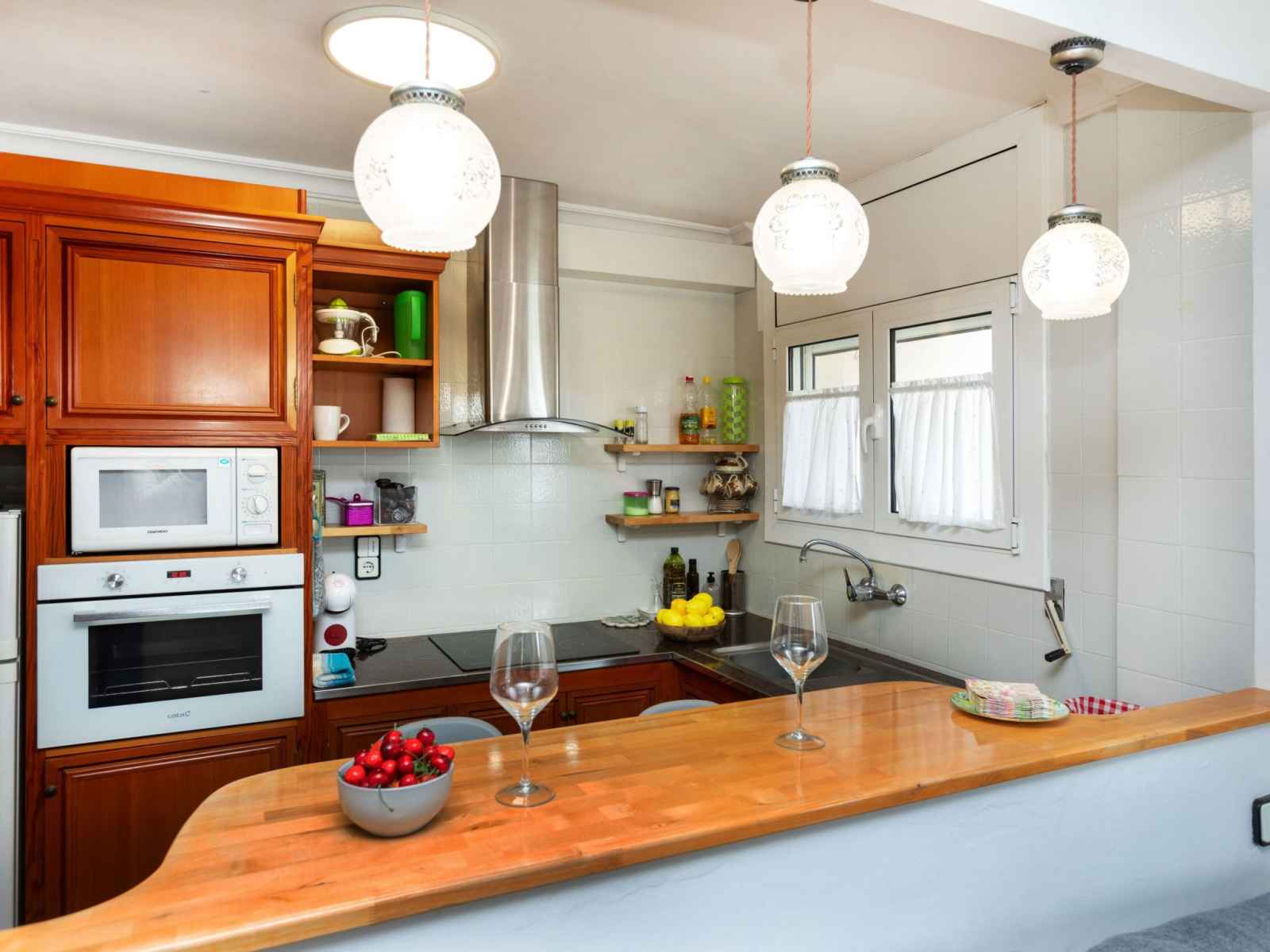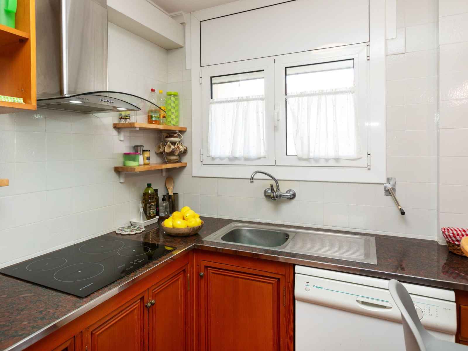 avec 1 grand-lit (150 cm, longueur 190 cm), bain/WC et ventilateur. Salon. Cuisine ouverte (four, lave-vaisselle, 3 plaques vitrocéramiques, grille-pain, bouilloire électrique, micro-ondes, cafetière électrique). Douche/bidet/WC. Chauffage pas dans toutes les pièces. Petit balcon. Mobilier de balcon. A disposition: lave-linge, fer à repasser, chaise haute pour enfant, lit bébé, sèche-cheveux. Internet (Connexion WIFI, gratuit). HUTT-074244 // Reg. Nr.: ESFCTU00004303100005382100000000000000HUTT-074244-011