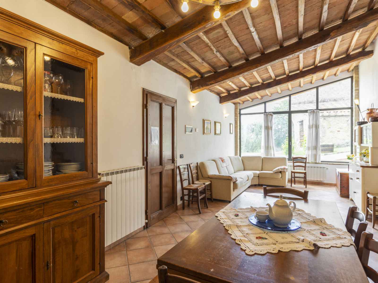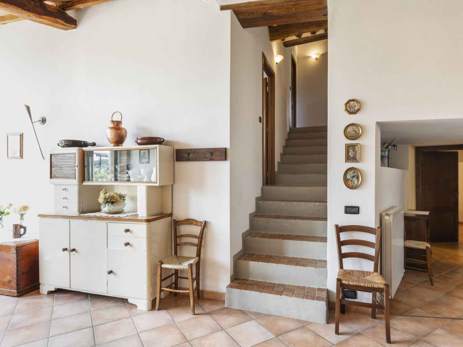 "il forno", apt 5 pièces 130 m2 sur 3 niveaux, au rez-de-chaussée. aménagement agréable et rustique: séjour/salle à manger. sortie sur la loggia. 1 chambre double hauteur plafond 240 cm. coin cuisine (4 plaques de cuisson, four, lave-vaisselle, congélateur). douche/bidet/wc. À l'étage supérieur: 1 chambre double. 2ème étage: 1 chambre