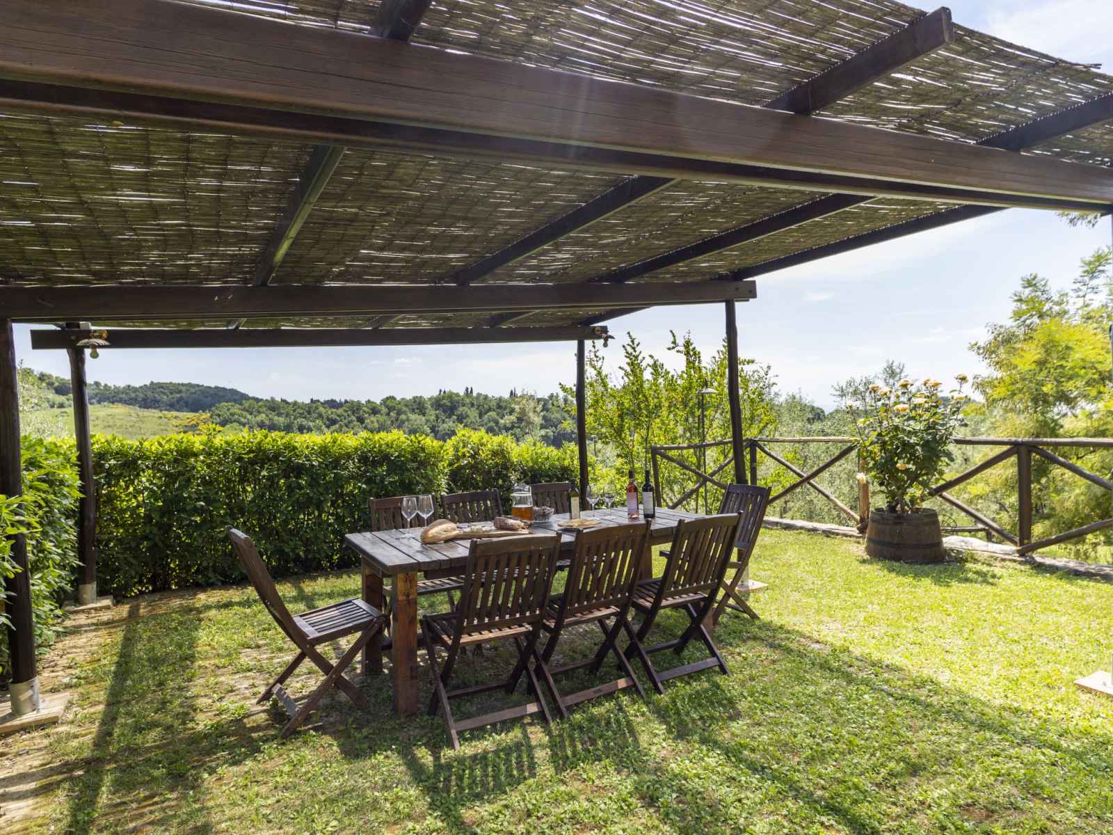 demande, 20 euros la semaine. domaine agricole rustique "le buche". À 14 km du centre de castellina in chianti, à 38 km du centre de siena, à 49 km du centre de firenze, situation tranquille, ensoleillée, dans la verdure. en commun: piscine cloturée (6 x 12 m, profondeur 130 - 230 cm, disponibilité saisonnière: 12.avr. - 01.nov.). ping-pong, barbecue. infrastructures de la maison: chauffage central, chauffage payable localement, possibilité de chauffage uniquement du 01.nov. - 15.avr.. accès en voiture jusqu'à la maison (600 m chemin non goudronné). place de parking sur le terrain. magasins 6 km, magasin d'alimentation 6 km, restaurant 6 km, arrêt de bus 6 km, gare ferroviaire "poggibonsi" 6 km, centre thermal "rapolano terme" 64 km. terrain de golf (9 trous) 10 km, tennis 6 km, centre équestre 10 km. attractions à proximité: barberino val d'elsa 16 km, san gimignano 21 km, monteriggioni e san donato 22 km, radda in chianti 24 km, badia a passignano 25 km, volterra 40 km. vente locale de produits de la ferme.
