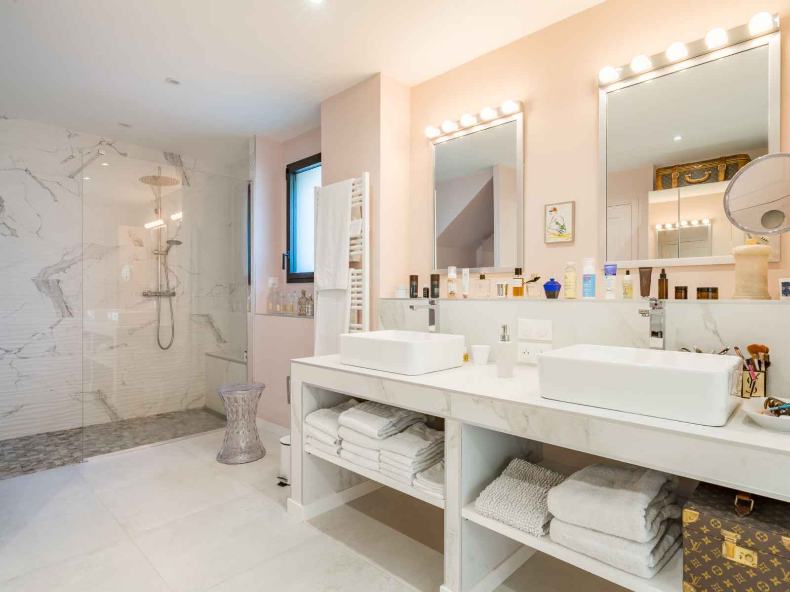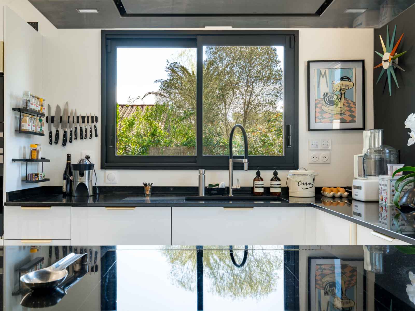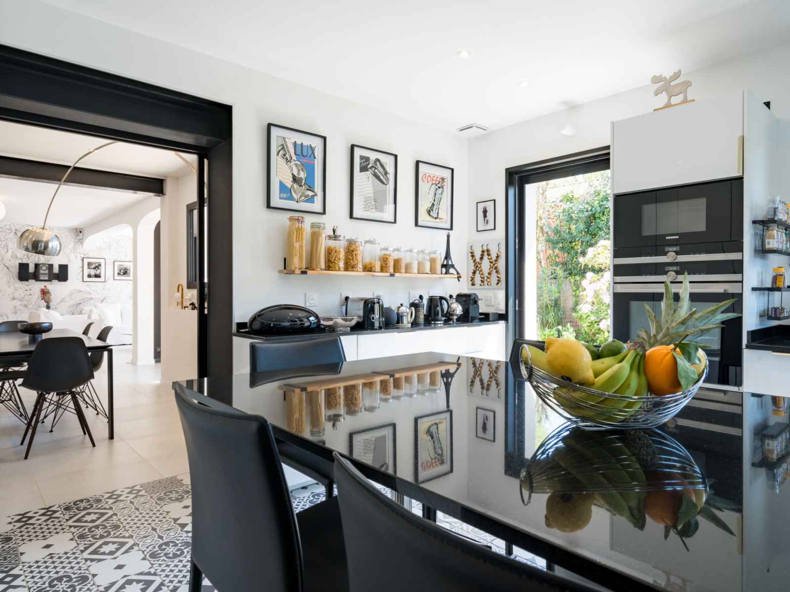 Villa 4 pièces 155 m2. spacieux, aménagement confortable et de style: séjour/salle à manger avec tv (écran plat). sortie sur le jardin, sur la terrasse. 1 chambre avec 1 grand-lit (160 cm, longueur 200 cm), douche et double vasque. sortie sur le jardin, sur la terrasse. cuisine (four, lave-vaisselle, 4 plaques à induction, grille-pain,