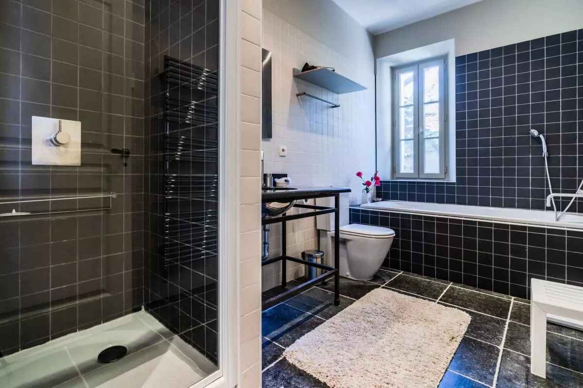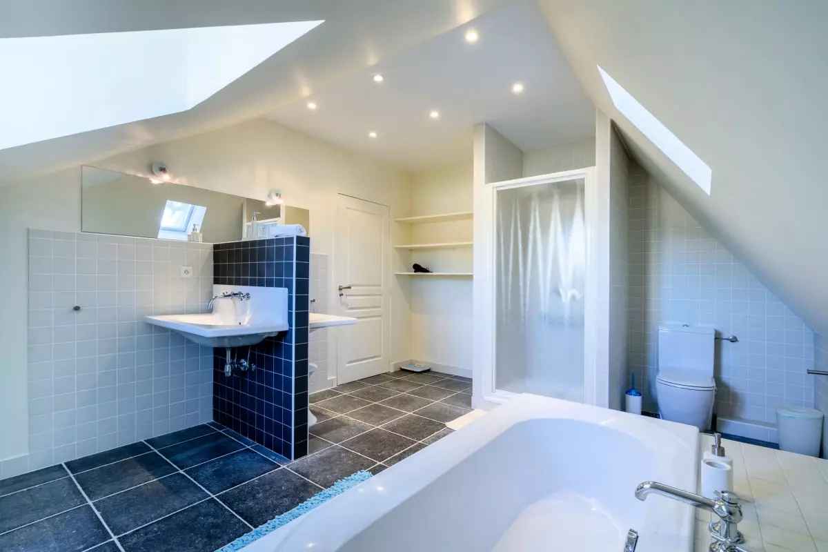 - Une grande salle de bain avec douche et WC.