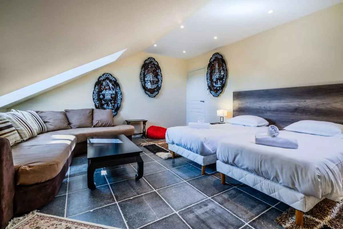- Une cinquième chambre avec 2 lits simples et un canapé confort.