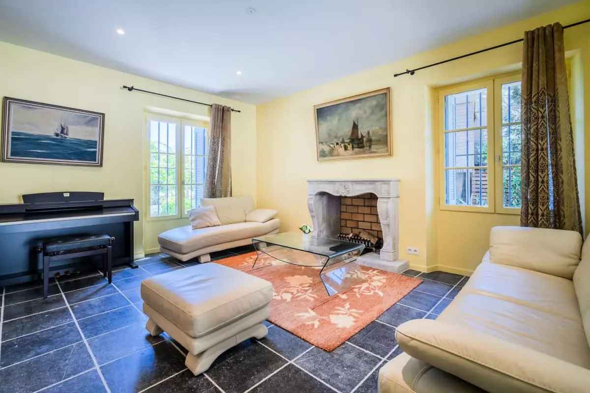 - Un grand salon avec télévision grand écran, canapés confort, cheminée et piano