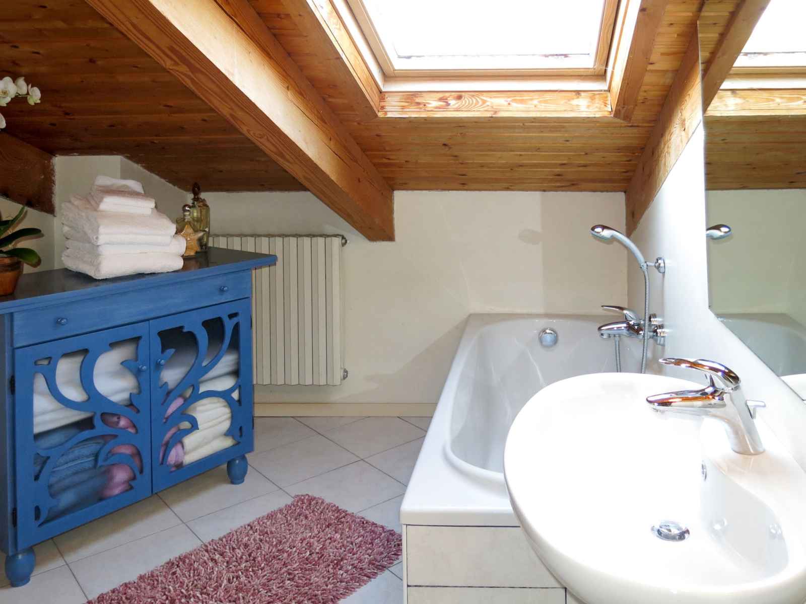 Maison jumelée 4 pièces 110 m2 sur 2 niveaux. clair, aménagement confortable et de bon goût: salle à manger avec cheminée, table pour les repas et tv. sortie sur le jardin. petite cuisine (four, lave-vaisselle, 4 feux, grille-pain, bouilloire électrique, micro-ondes, congélateur, cafetière électrique). wc séparé. À l'étage
