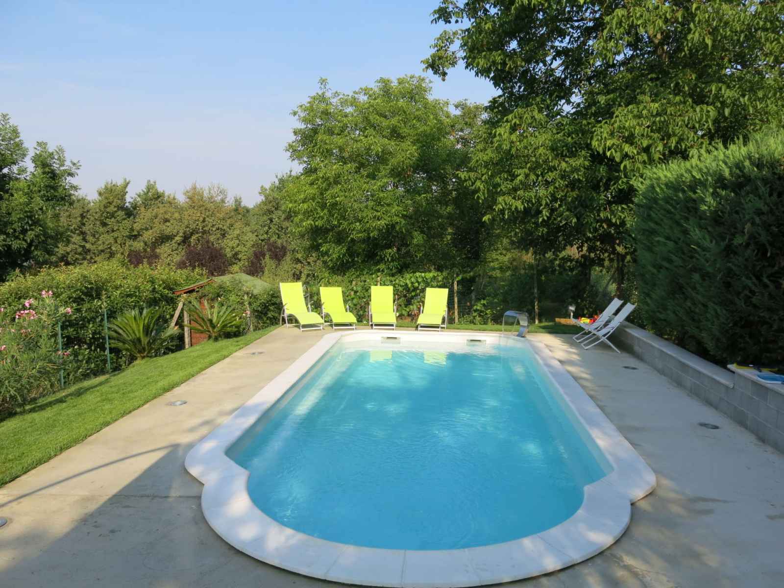 Maison à 2 apts confortable "villa felice", environnée par les arbres. dans le quartier de casabianca, à 4 km du centre d'asti, à 49 km du centre de turin, à 35 km du centre d'alba, dans la verdure. en commun: terrain 4'000 m2 (clôturé), jardin entretenu avec pelouse et arbres. a usage privé: piscine (9 x 4 m, profondeur 140 cm,