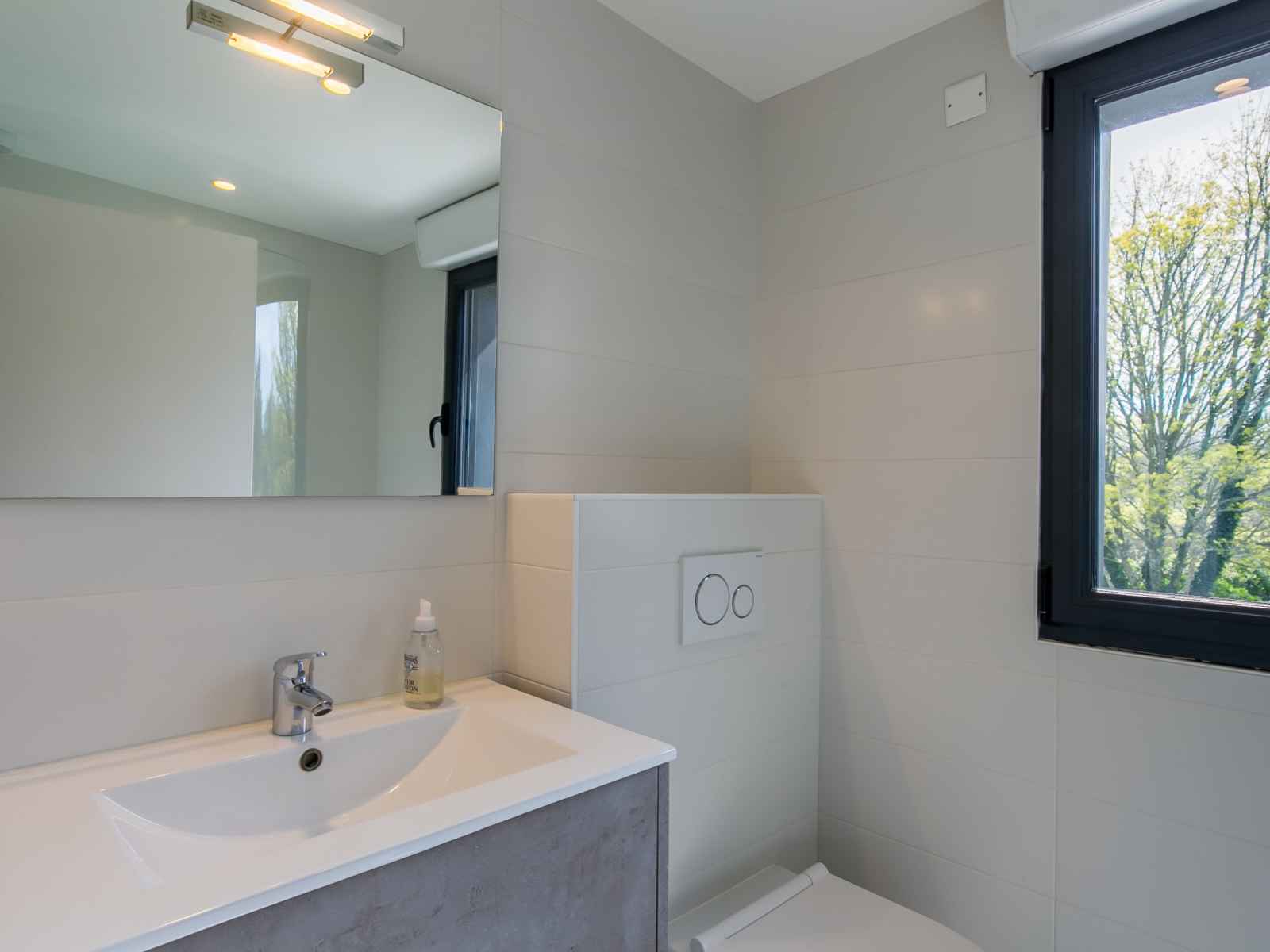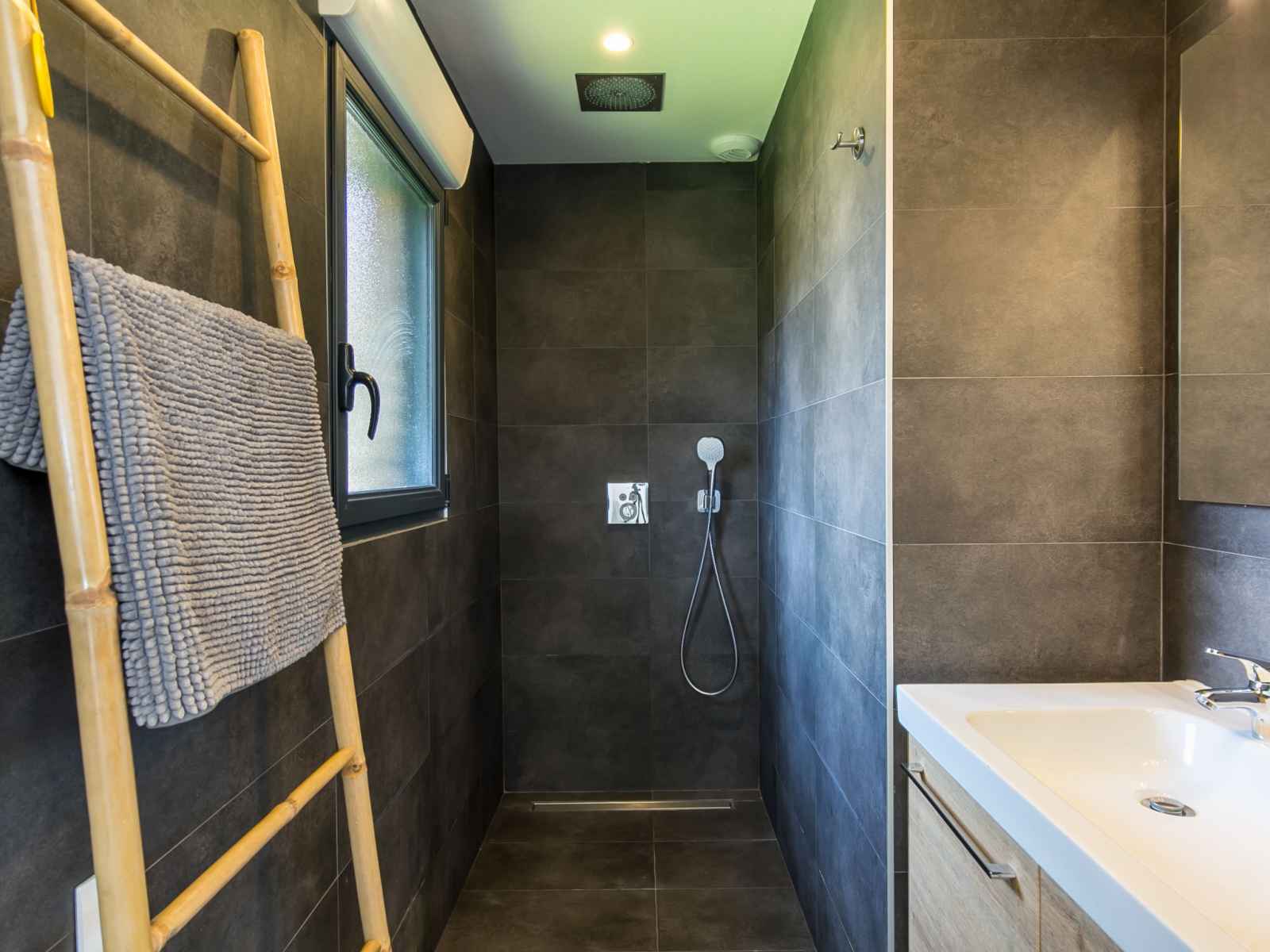 vasque. Cuisine ouverte (four, lave-vaisselle, 3 plaques à induction, grille-pain, bouilloire électrique, micro-ondes, congélateur, cafetière électrique) avec table pour les repas. WC séparé. À l'étage supérieur: 1 chambre, mansardée avec 1 grand-lit (160 cm, longueur 200 cm). 1 chambre, mansardée avec 2 lits (90 cm, longueur 200 cm). Bain/WC. Chauffage électrique. Sol en parquet. Grande terrasse 100 m2, situation sud. Meubles de terrasse, barbecue (portable), chaises longues (4). A disposition: lave-linge, sèche-linge, fer à repasser. Internet (Connexion WIFI, gratuit). Veuillez noter: maison non-fumeur. Maximum 1 animal/ chien autorisé. Détecteur de fumée.