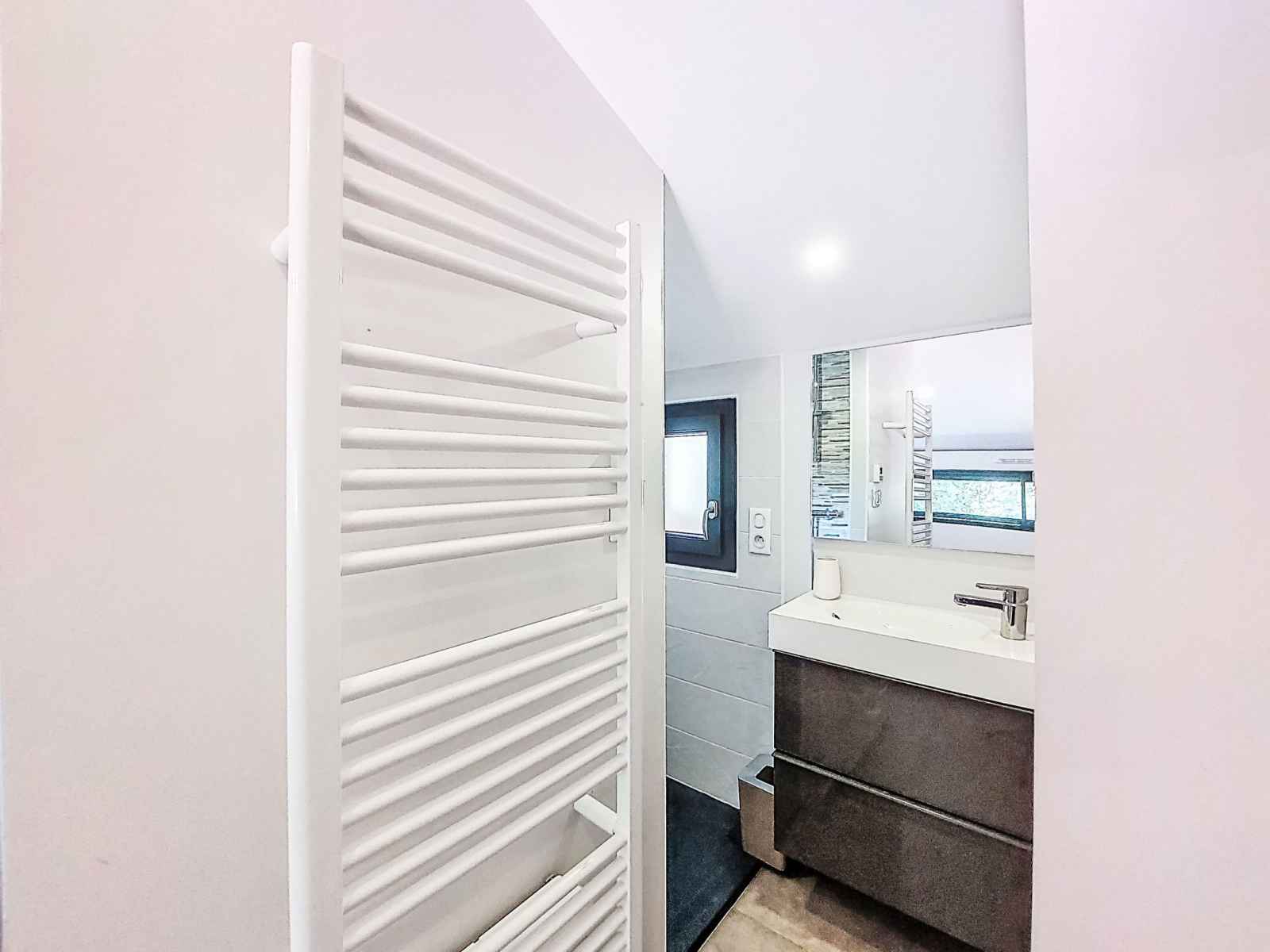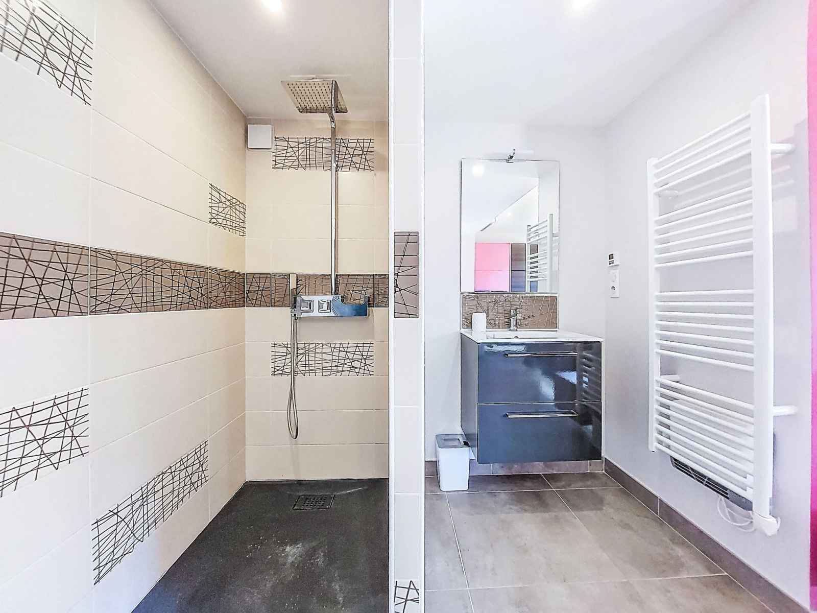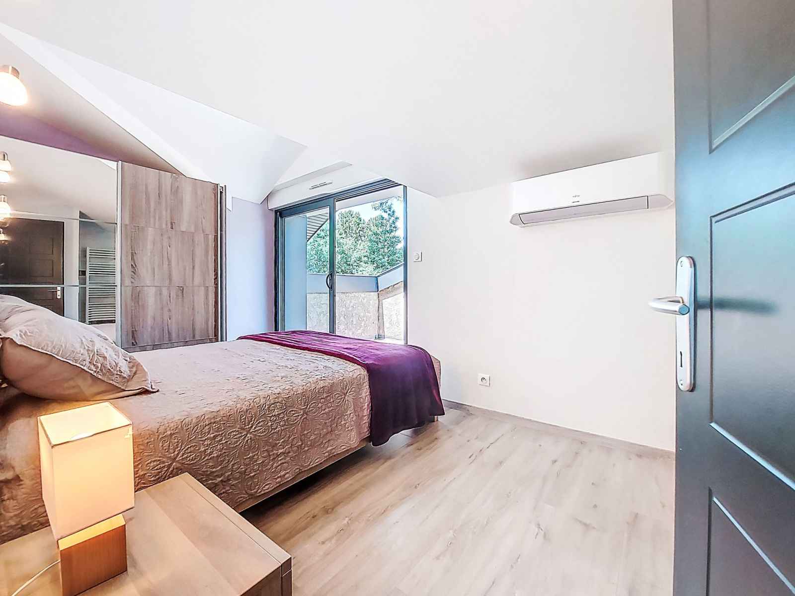 bouilloire électrique, micro-ondes, cafetière électrique, Capsules pour machine à café (Dolce Gusto) (NON INCLUSES)). WC séparé. À l'étage supérieur: 1 chambre avec (160 cm, longueur 200 cm), douche. 1 chambre avec (160 cm, longueur 200 cm), douche. Sortie sur la terrasse. WC séparé. Air-conditionné. Grande terrasse 105 m2, situation sud. Meubles de terrasse, barbecue, chaises longues (6). A disposition: lave-linge, fer à repasser. Internet (Connexion WIFI, gratuit). Place de parking (cloturée, 4 Voitures). Veuillez noter: logement non-fumeur. Maximum 2 animaux/ chiens autorisés. Détecteur de fumée. Annonce d'un particulier (art 155, IV du CGI).