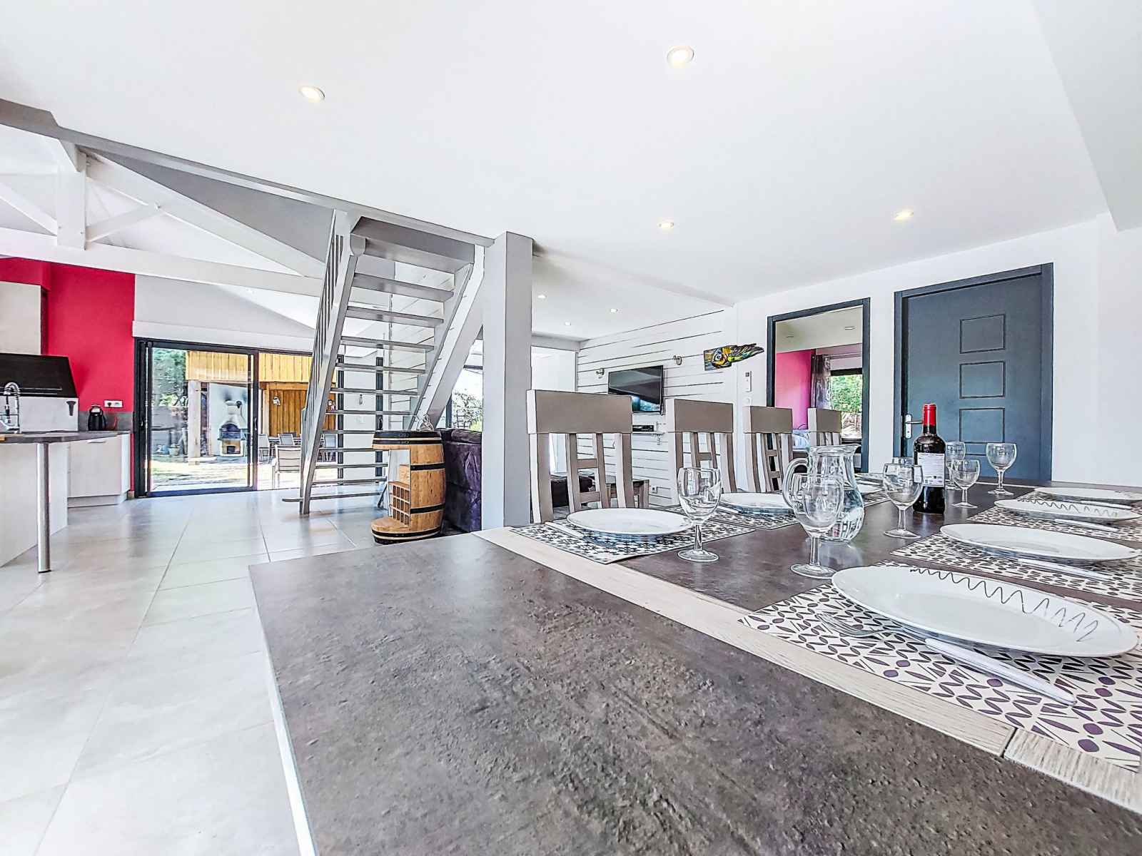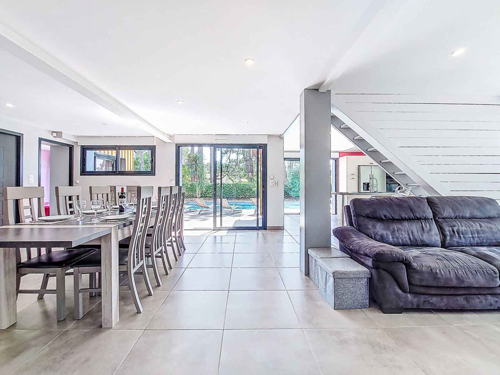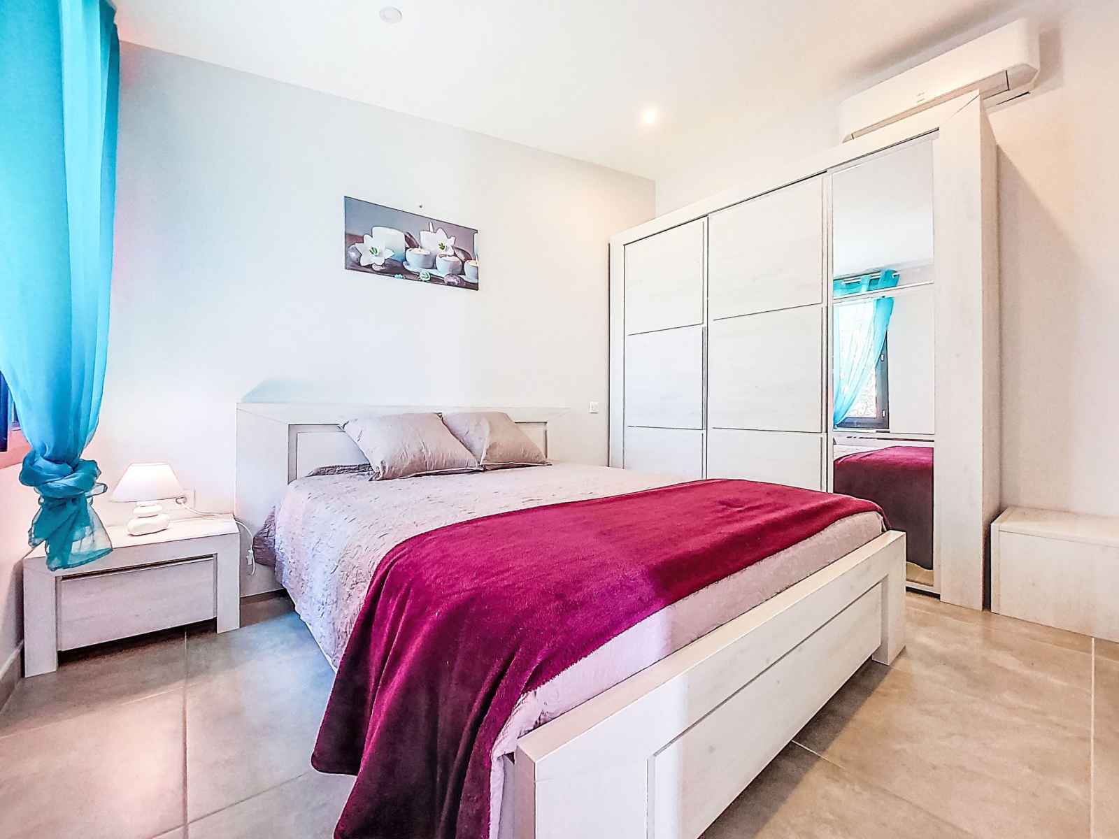 Villa 6 pièces 150 m2 sur 2 niveaux. aménagement confortable et agréable: salle à manger avec tv (écran plat). 1 chambre avec (140 cm, longueur 190 cm), douche. sortie sur la terrasse, sur la piscine. 2 chambres, chaque chambre avec: (160 cm, longueur 200 cm), douche. grande cuisine ouverte (four, 4 plaques à induction, grille-pain,