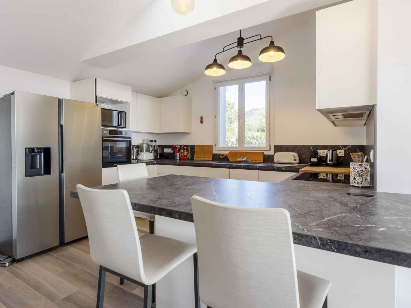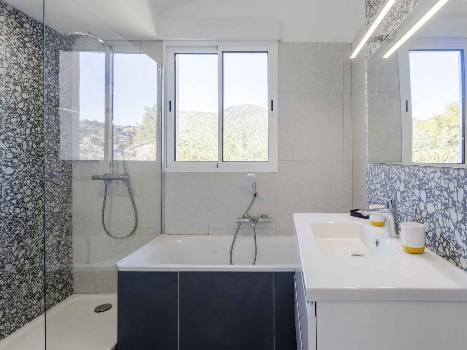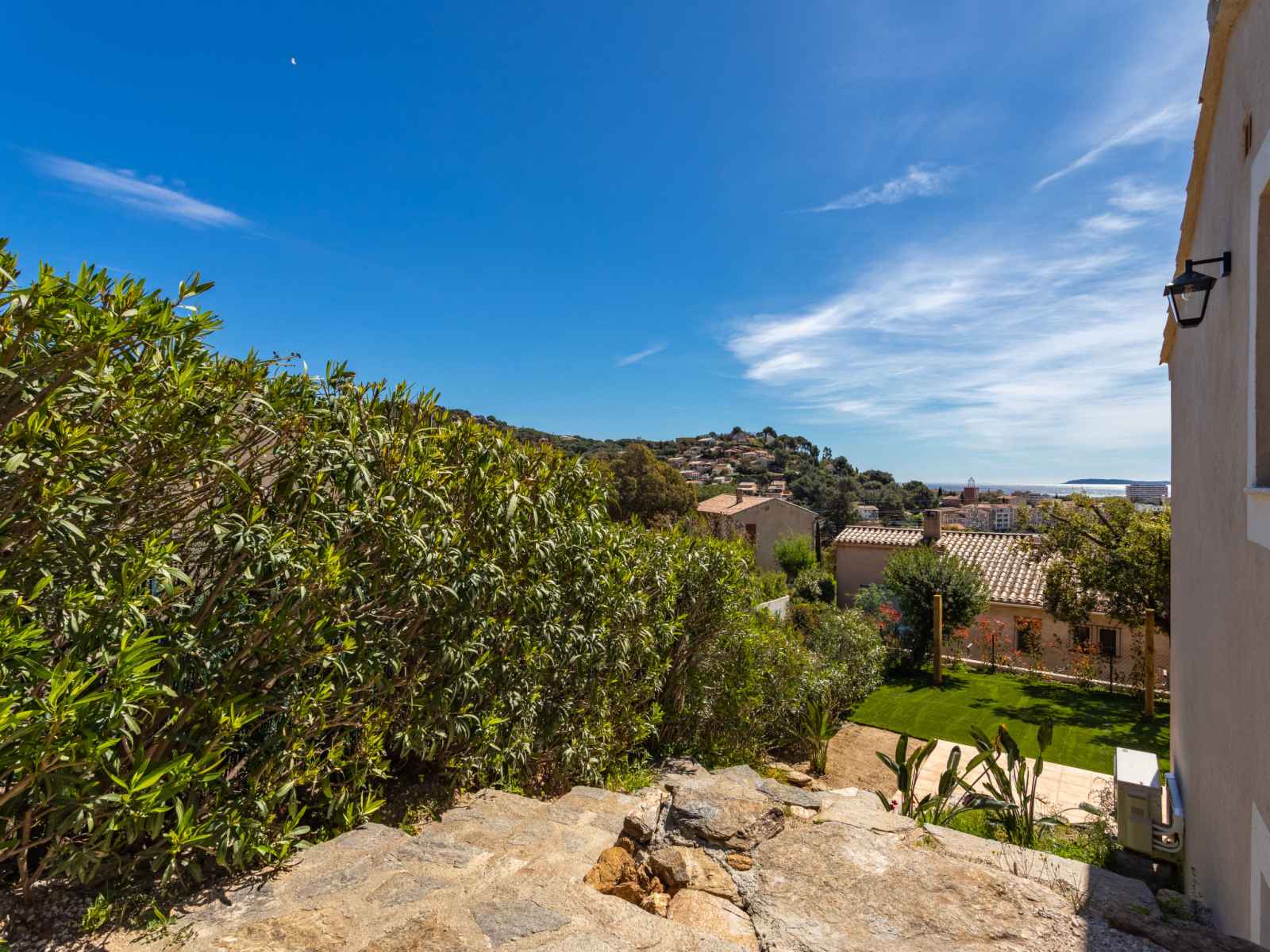 électrique, micro-ondes, cafetière électrique, Capsules pour machine à café (Nespresso) (NON INCLUSES)). Bain/douche, WC séparé. À l'étage inférieur: 1 chambre avec 1 grand-lit (140 cm, longueur 190 cm). Sortie sur la terrasse. 1 chambre avec 2 lits (90 cm, longueur 200 cm). Sortie sur la terrasse. 1 chambre avec 2 lits (90 cm, longueur 200 cm). Sortie sur la terrasse. Douche, WC séparé. Chauffage électrique, air-conditionné. Grande terrasse 42 m2, situation sud et situation est, petite terrasse 20 m2, jardin 200 m2. Vue éloignée sur la mer. A disposition: lave-linge, fer à repasser, sèche-cheveux. Internet (Connexion WIFI, gratuit). Place de parking (2 Voitures). Veuillez noter: maison non-fumeur. TV seulement FR. Détecteur de fumée. Annonce d'un particulier (art 155, IV du CGI). 83019001442U2