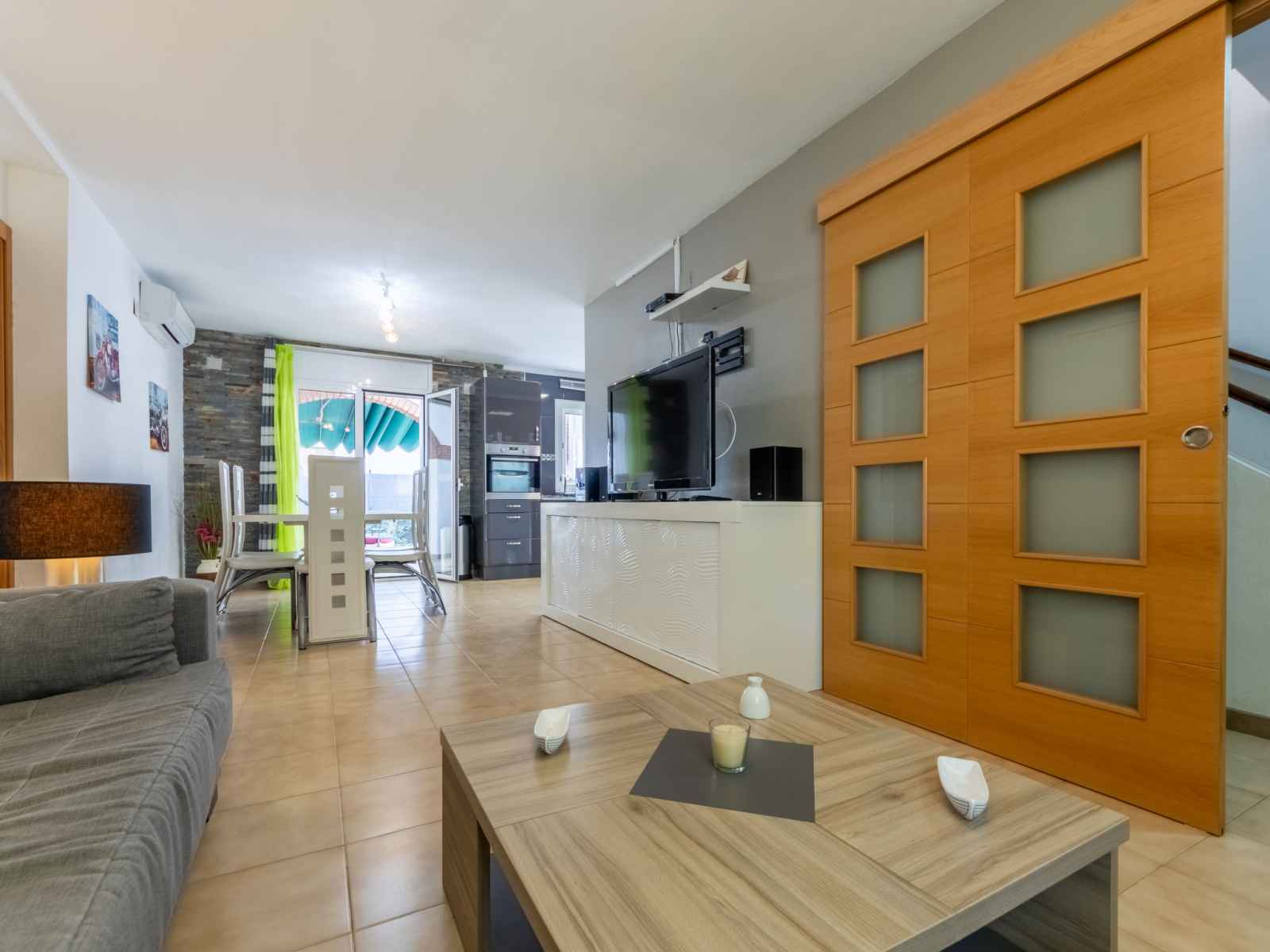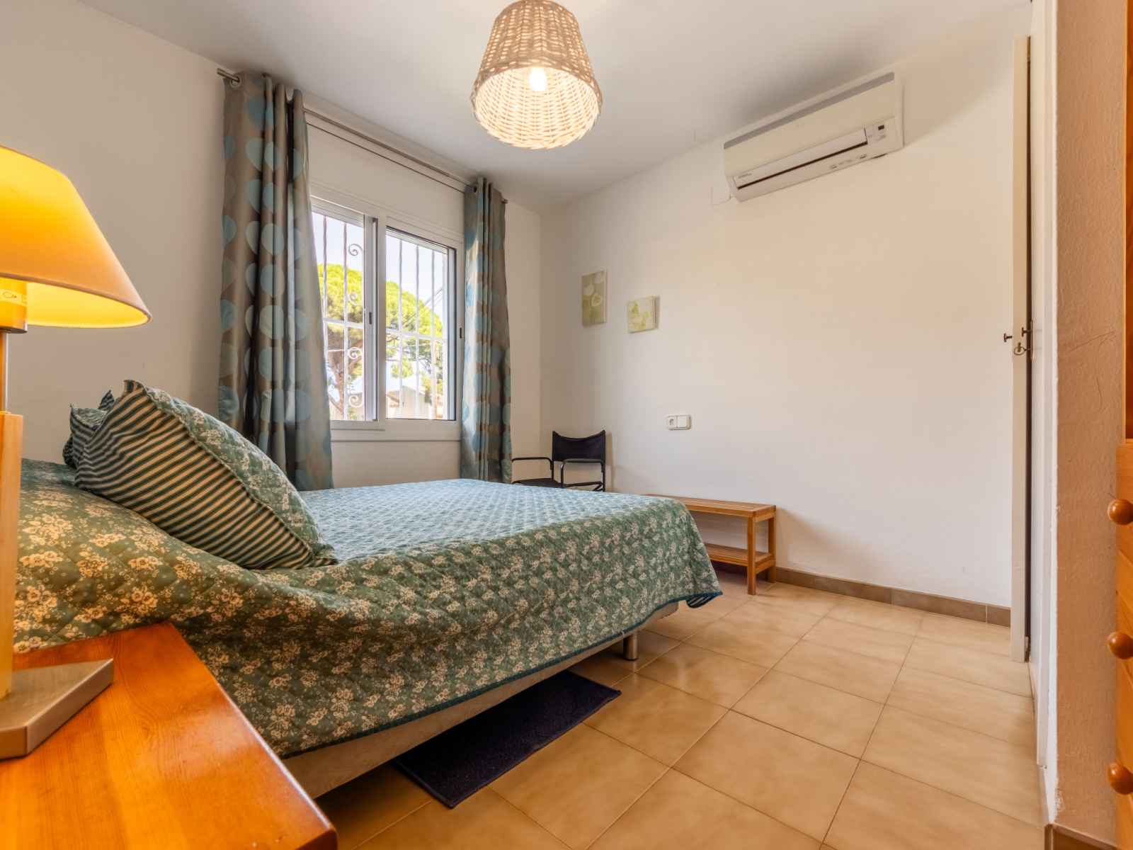 chambre avec 1 x 2 lits superposés (90 cm, longueur 190 cm). Cuisine (4 plaques de cuisson, four, lave-vaisselle, grille-pain, bouilloire électrique, micro-ondes, cafetière électrique, Capsules pour machine à café (Dolce Gusto)) avec table pour les repas. Douche/WC, WC séparé. Air-conditionné, chauffage à air chaud. Pas de chauffage. Meubles de terrasse, barbecue. Vue sur le jardin. A disposition: lave-linge, fer à repasser, chaise haute pour enfant, lit bébé, sèche-cheveux. Internet (Connexion WIFI, gratuit). Place de parking (cloturée). HUTT030204-94 // Reg. Nr.: ESFCTU000043031000150483000000000000000HUTT030204-946