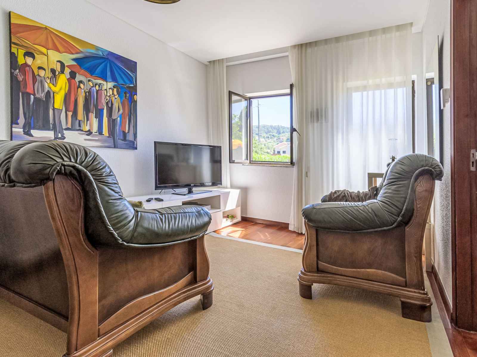 "do condado", maison 3 pièces 50 m2. aménagement fonctionnel et plaisant: séjour/salle à manger avec table pour les repas, tv (satellite), lecteur cd et dvd. sortie sur la terrasse. 1 chambre avec 1 grand-lit (145 cm). 1 chambre avec 2 lits. cuisine (lave-vaisselle, 4 feux, micro-ondes, congélateur, cafetière électrique). sortie sur la