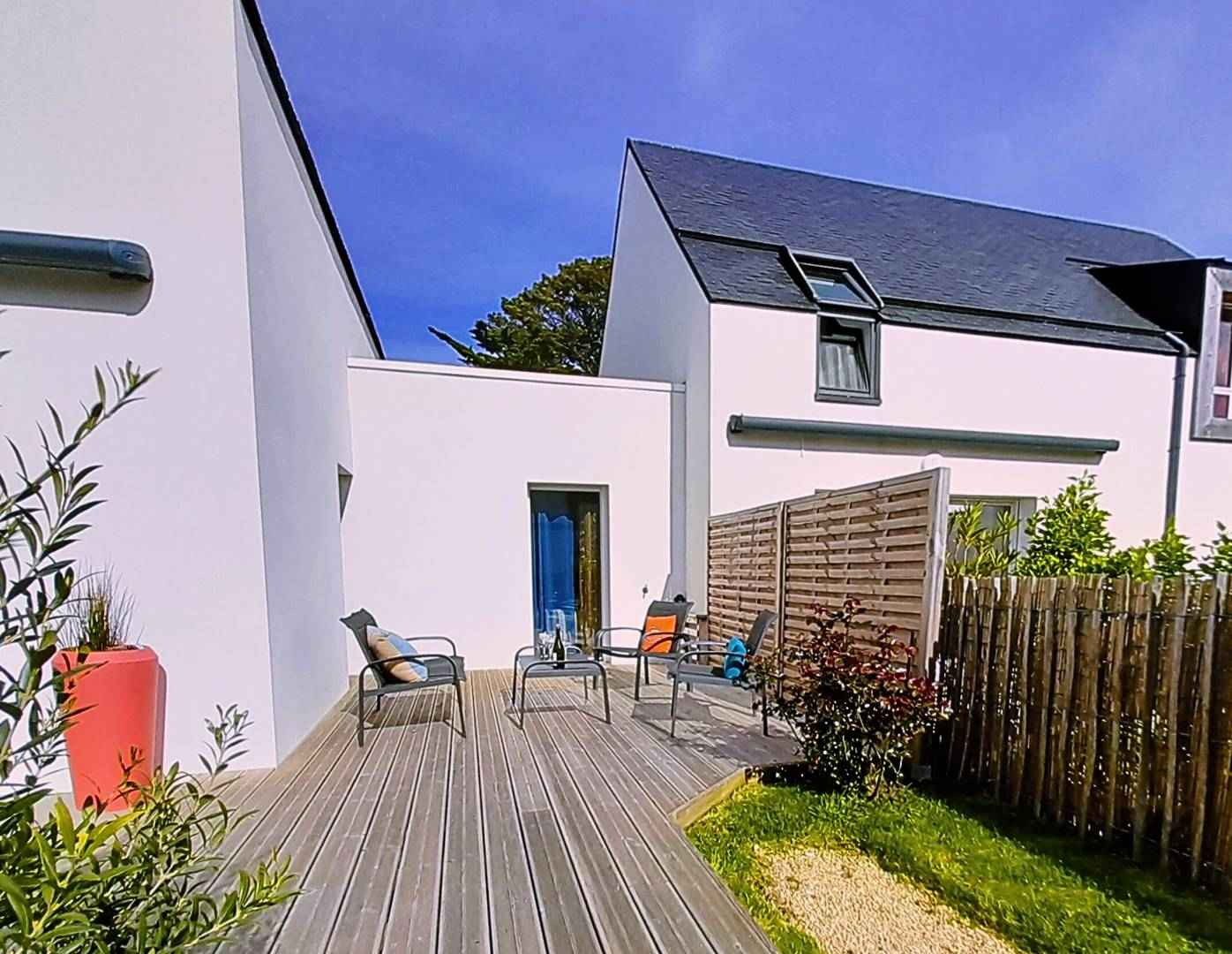 Située à 650m des commerces et à 850m de la grande plage de carnac, très belle maison mitoyenne de 4 pièces (env. 86m²) pour 8 personnes, située dans la résidence le domaine de cesarine (maison n°20) :