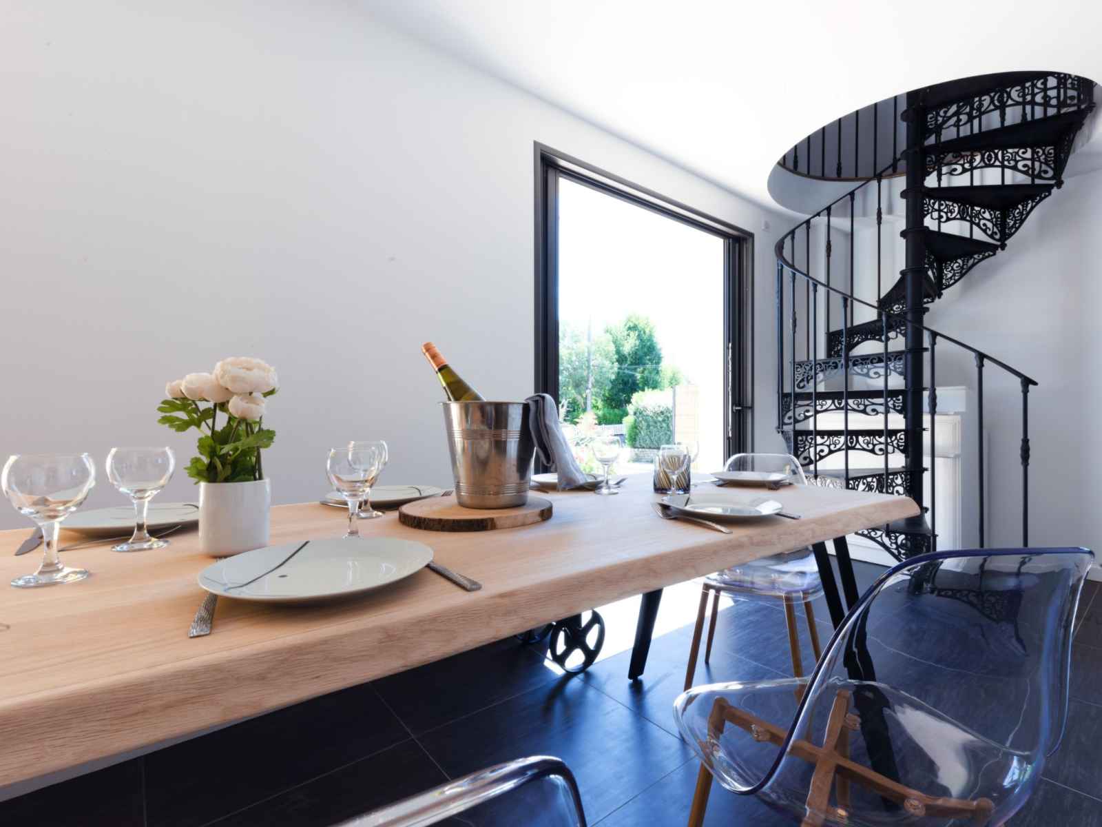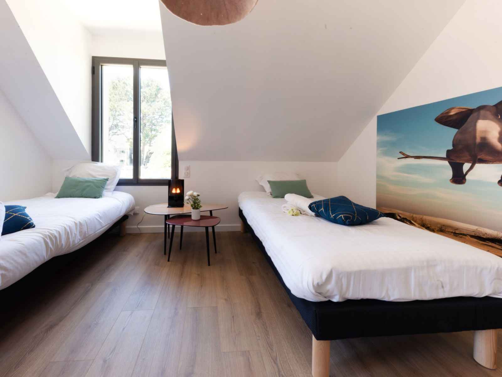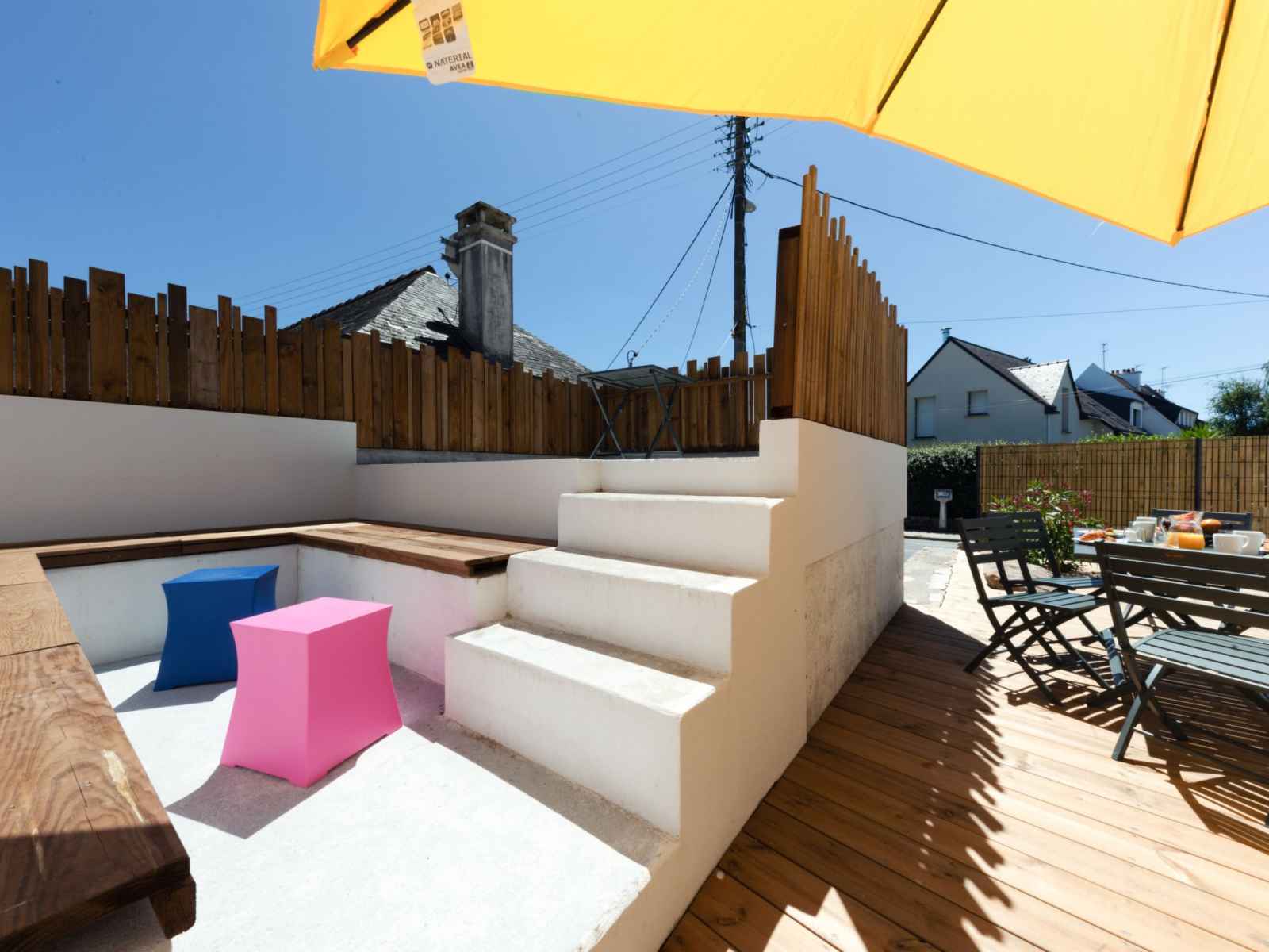 "le rahic", maison 4 pièces 75 m2 sur 2 niveaux. complètement rénovée en 2022, aménagement moderne: séjour/salle à manger avec tv (écran plat). sortie sur la terrasse. 1 chambre avec 1 grand-lit (1 x 140 cm, longueur 190 cm), lavabo et douche. cuisine (four, lave-vaisselle, 3 plaques à induction, grille-pain, bouilloire électrique,