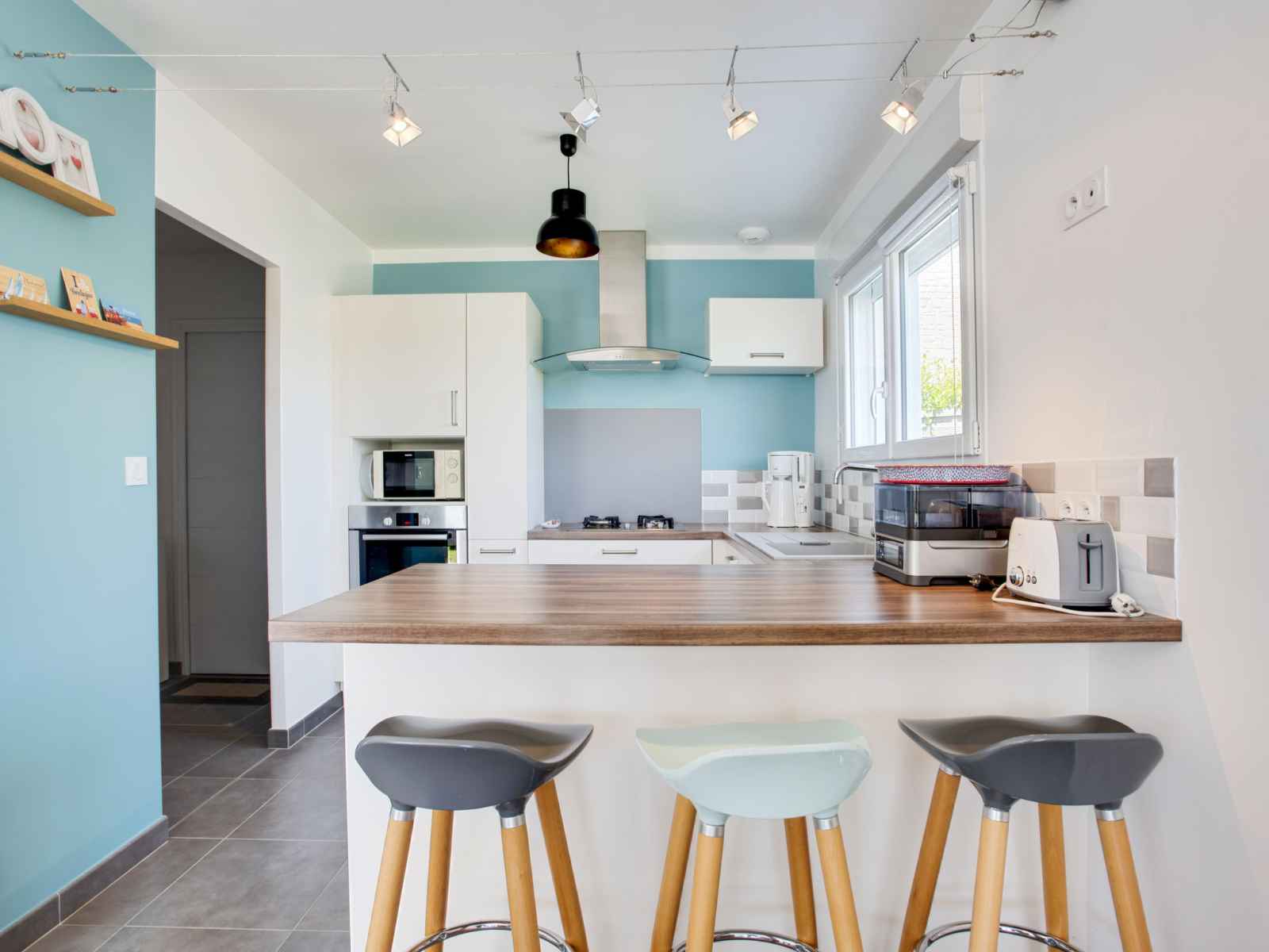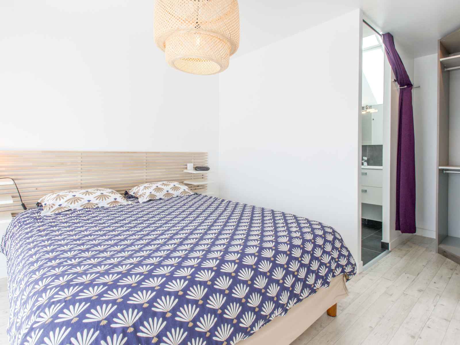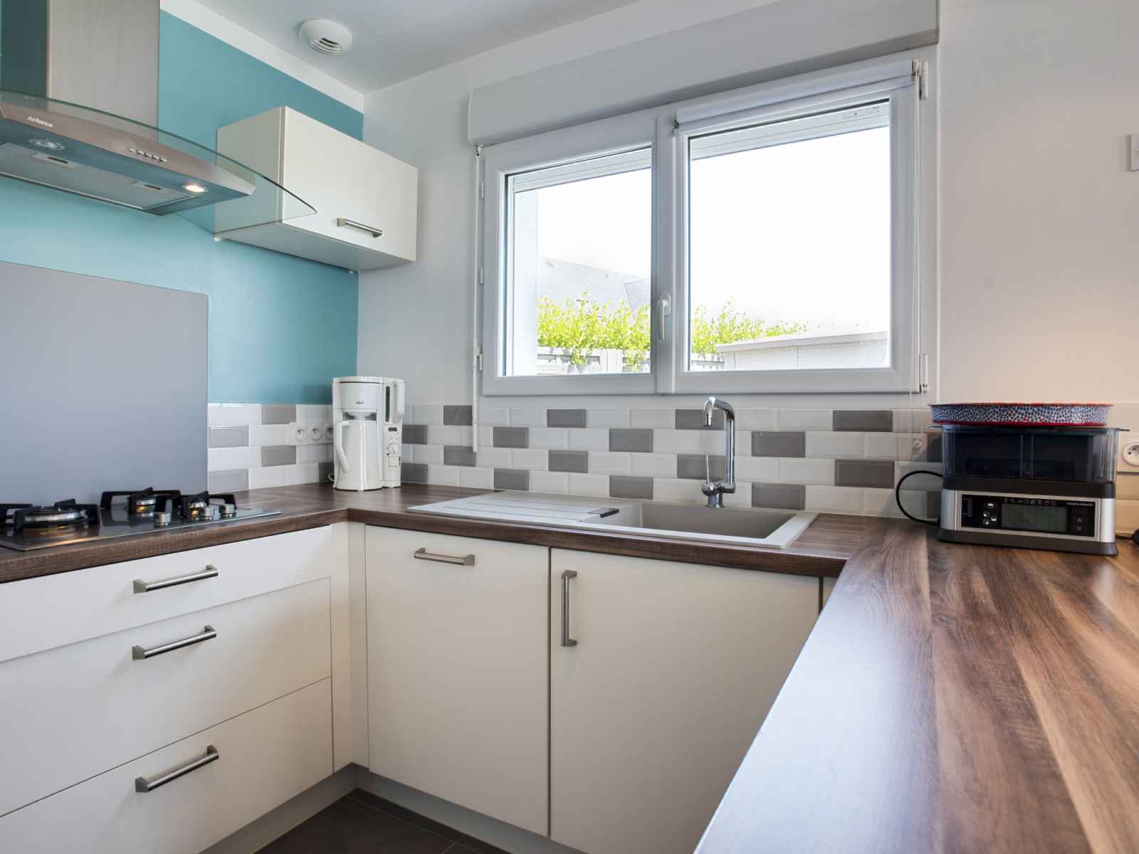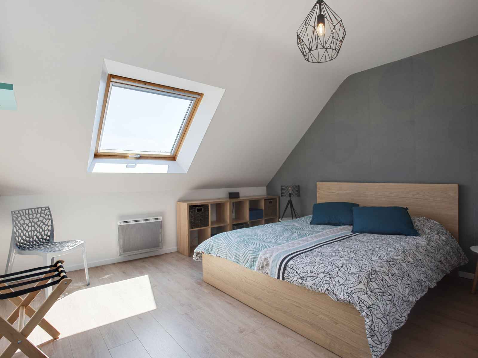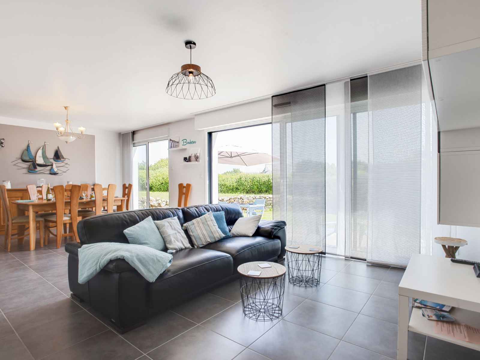 Maison 4 pièces 105 m2 sur 2 niveaux. aménagement agréable: séjour/salle à manger avec tv (écran plat). sortie sur le jardin. 1 chambre avec 1 grand-lit (1 x 160 cm, longueur 200 cm), douche. cuisine ouverte (four, lave-vaisselle, 4 plaques vitrocéramiques, micro-ondes, cafetière électrique). wc séparé. À l'étage supérieur: 1 chambre