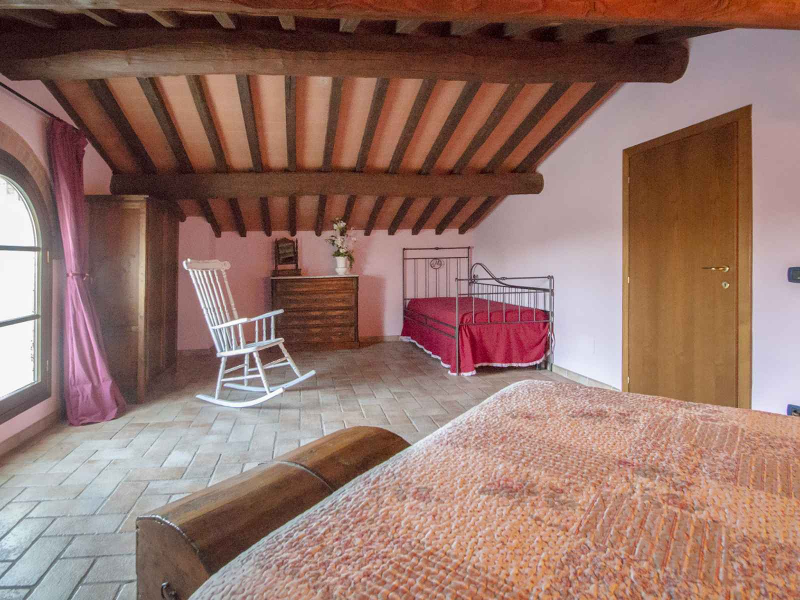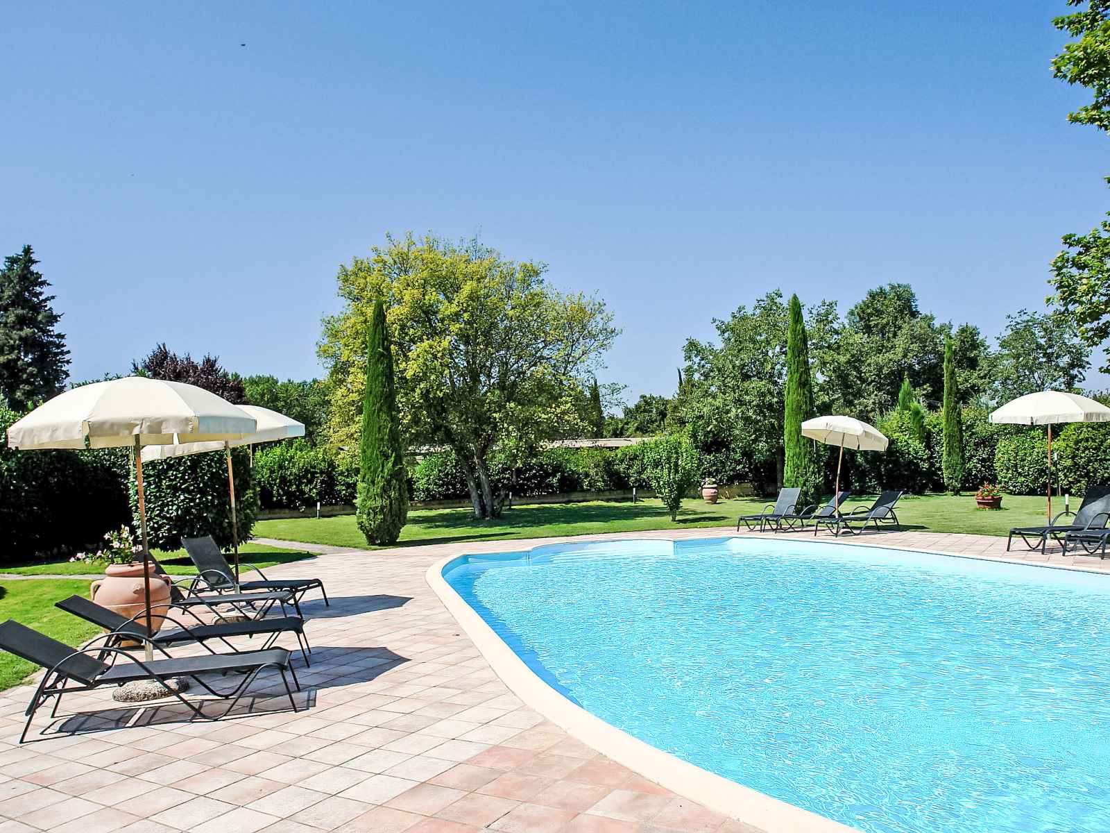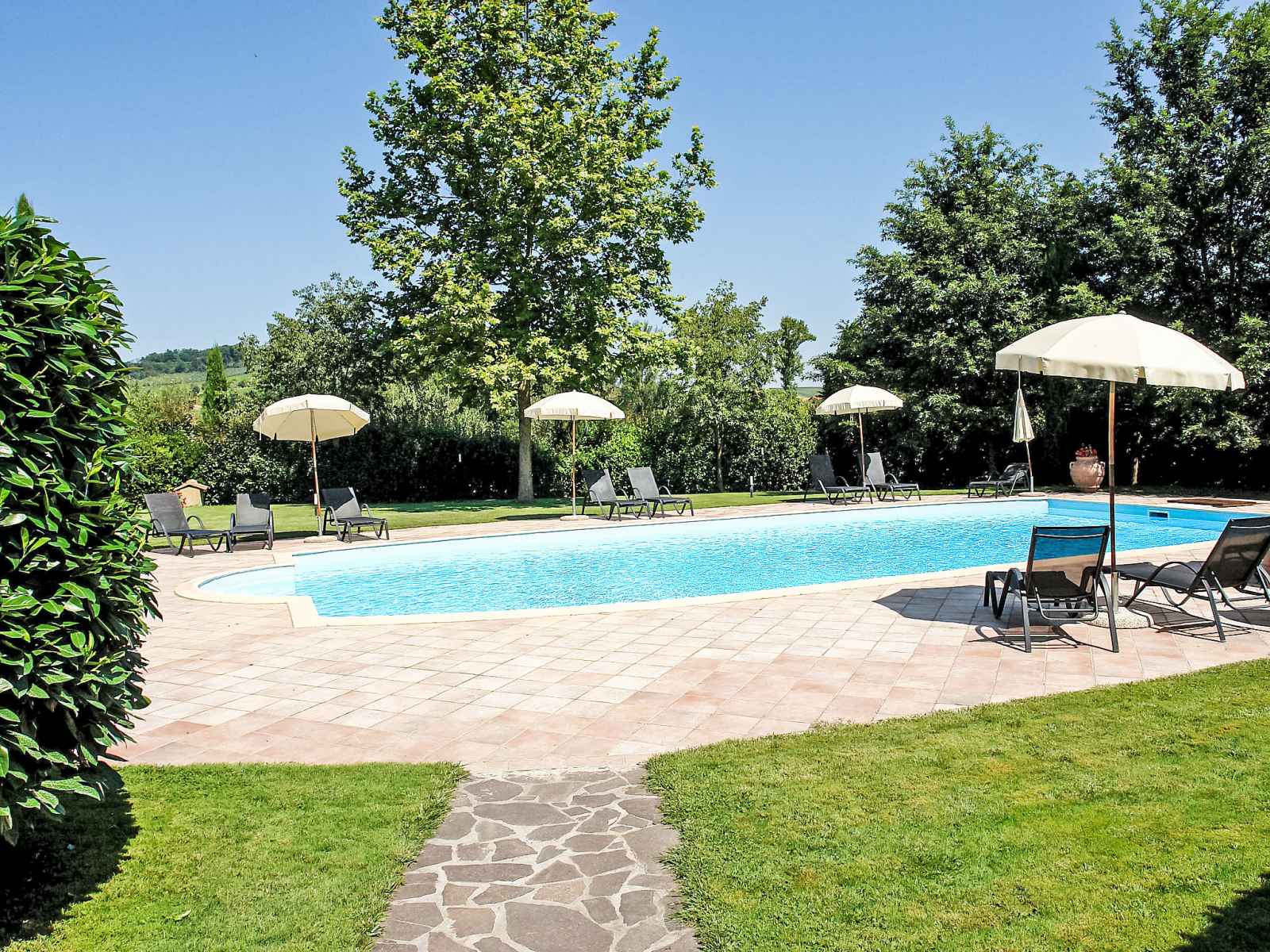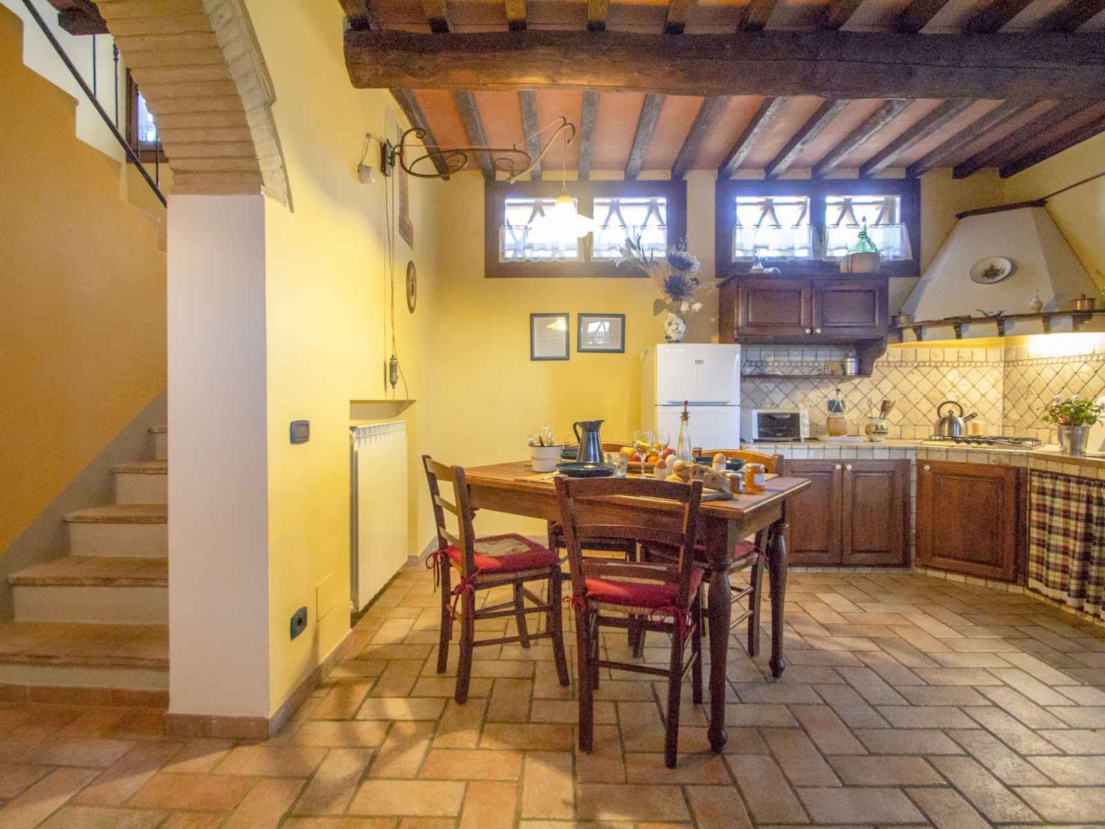 ancienne ferme "la mirandola", rénovée. À 10 km du centre de castellina in chianti, à 15 km du centre de siena, à 45 km du centre de firenze, situation tranquille, dans la verdure. en commun: terrain (clôturé), grand, beau jardin entretenu avec pelouse et plantes, piscine (14 x 7 m, profondeur 140 - 200 cm, disponibilité saisonnière: 24.avr. - 16.oct.). ping-pong, terrasse, meubles de jardin. a usage privé: terrasse, meubles de jardin, barbecue. infrastructures de la maison: salle pour petits déjeuners, accès internet, chauffage central, lave-linge (en commun, en sus), chauffage payable localement, possibilité de chauffage uniquement du 01.nov. - 15.avr. (en sus). nettoyage possible (en sus). place de parking (couvert) près de la maison. magasins 2 km, arrêt de bus 2 km, gare ferroviaire "castellina scalo" 2 km. terrain de golf 15 km, tennis 3 km, centre équestre 2 km. veuillez noter: le propriétaire habite sur le même terrain.