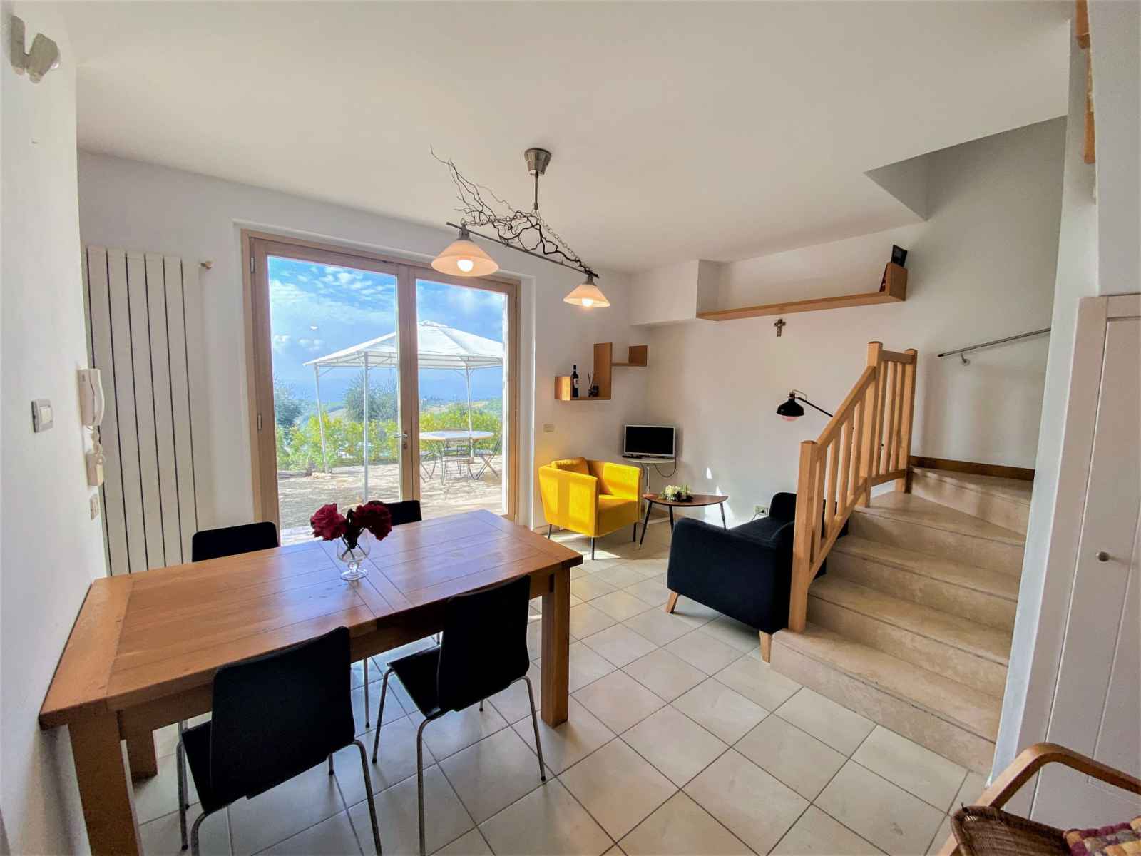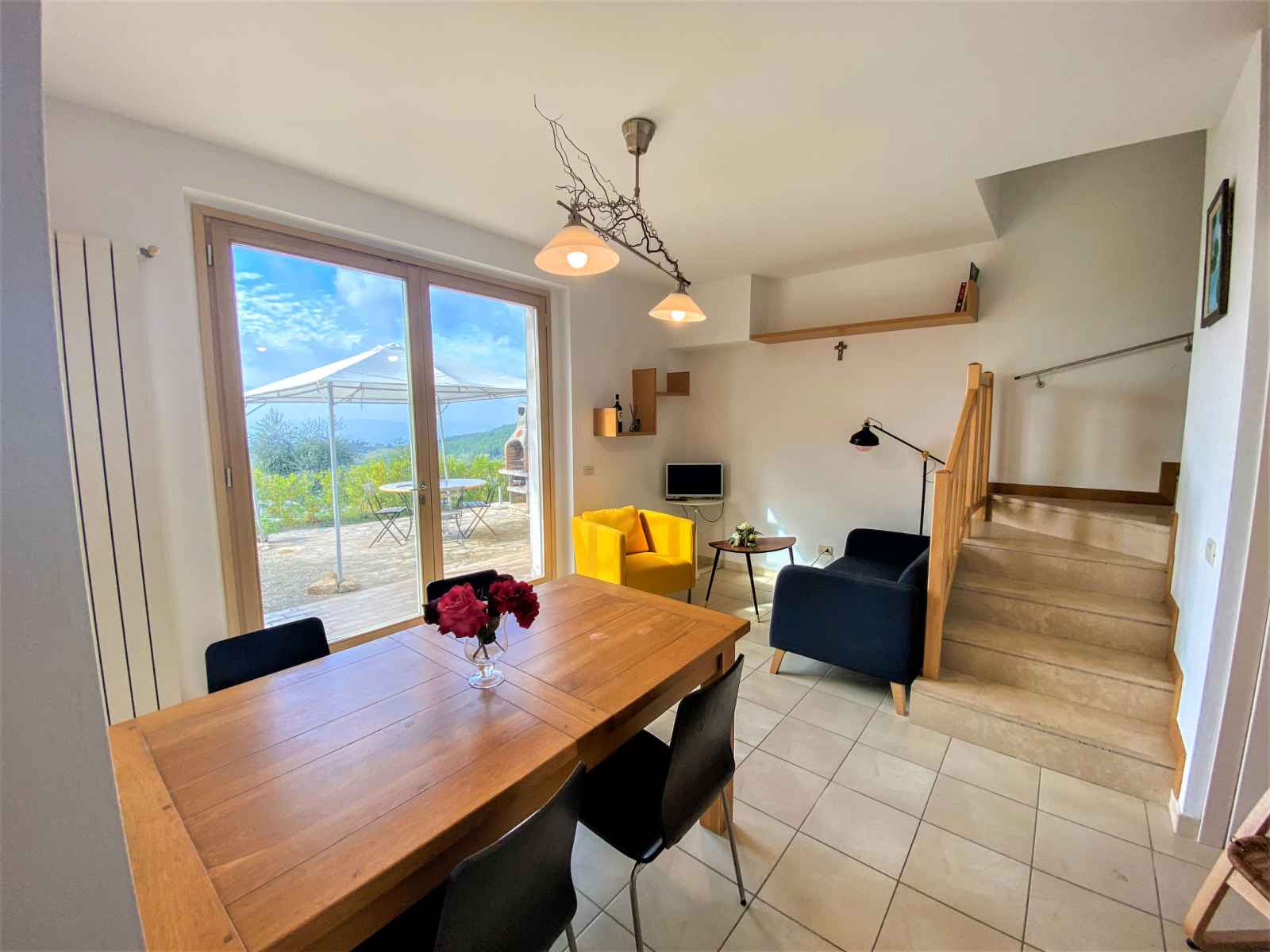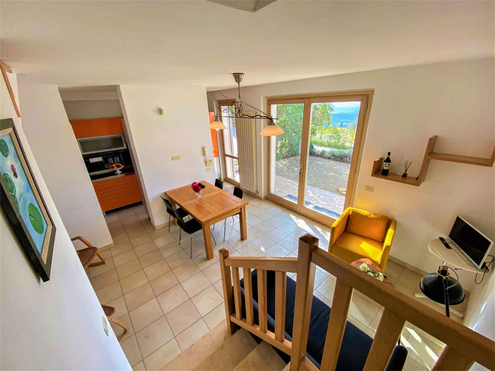 Maison moderne "casa chiara", de 2 étages, année de construction 2009. À 300 m du centre de castellina in chianti, situation ensoleillée, excellente situation: centrale mais tranquille, orientée ouest. a usage privé: jardin sur plusieurs niveaux 40 m2 (pas clôturé), place de parking sur le terrain, garage individuel près de la maison.