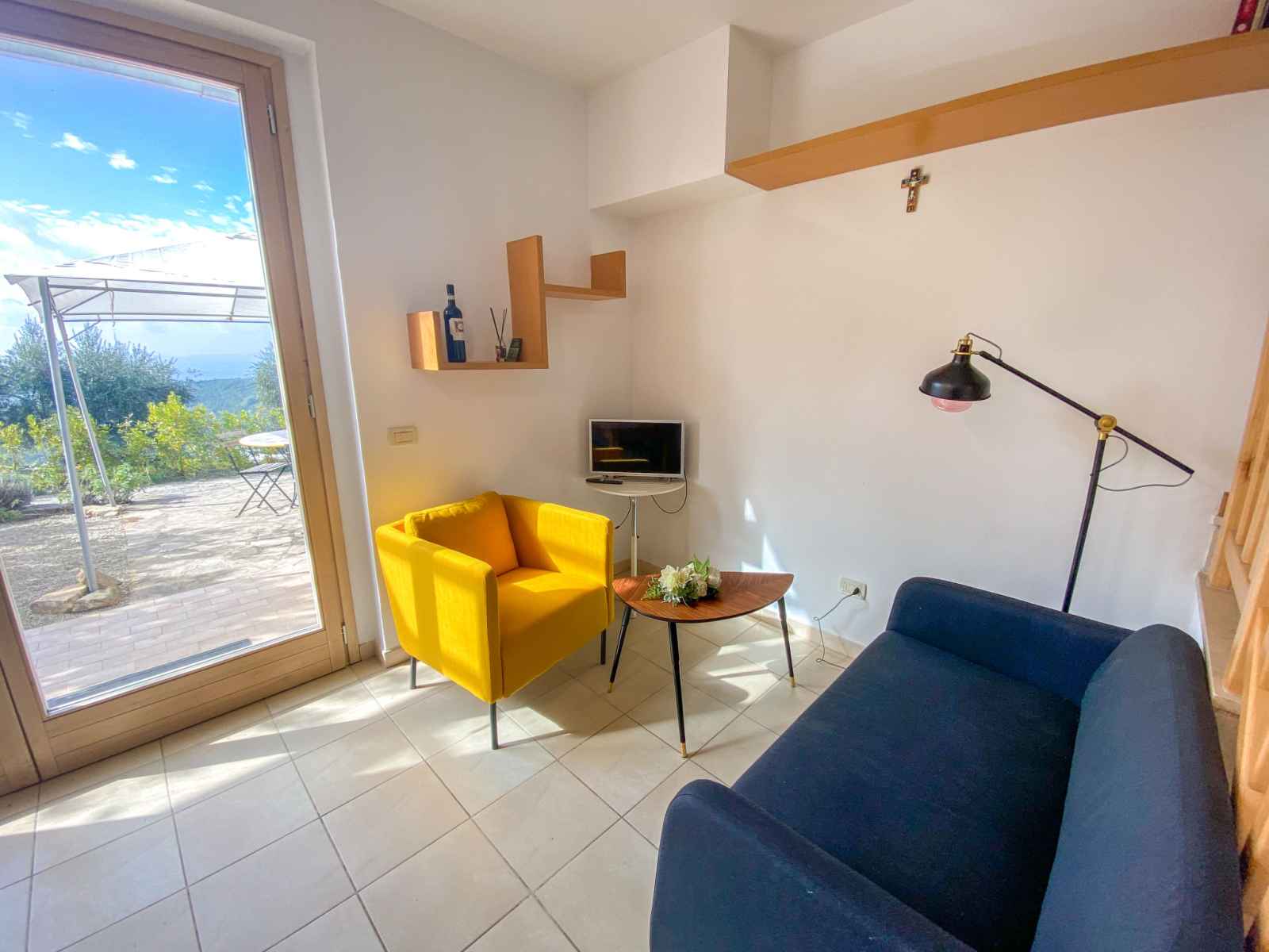 café (Nespresso) (NON INCLUSES)). Sortie sur la terrasse. WC séparé. À l'étage supérieur: 1 chambre double avec air-conditionné. Sortie sur le balcon. 1 chambre d'enfants avec 2 lits (90 cm, longueur 200 cm), air-conditionné. Bain/bidet/WC. Chauffage, air-conditionné. Sol en parquet, sol en pierres naturelles. Terrasse 20 m2 partiellement couverte, situation ouest. Meubles de terrasse, barbecue, chaises longues (2), réduit. Très belle vue panoramique sur les alentours. A disposition: lave-linge, sèche-linge, fer à repasser, chaise haute pour enfant, lit bébé jusqu'à 2 ans, sèche-cheveux. Internet (Connexion WIFI, gratuit). Place de parking (1 Voiture), garage sur le terrain (1 Voiture) près de la maison. Veuillez noter: adapté(e) aux familles. Logement non-fumeur. Maximum 1 animal/ chien autorisé. Entrée privée. Pas de frais supplémentaires obligatoires à régler sur place, sauf pour la taxe de séjour Linge de maison, serviette de bain, ménage final et coûts énergétiques inclus. IT052005C2YKG73XN2