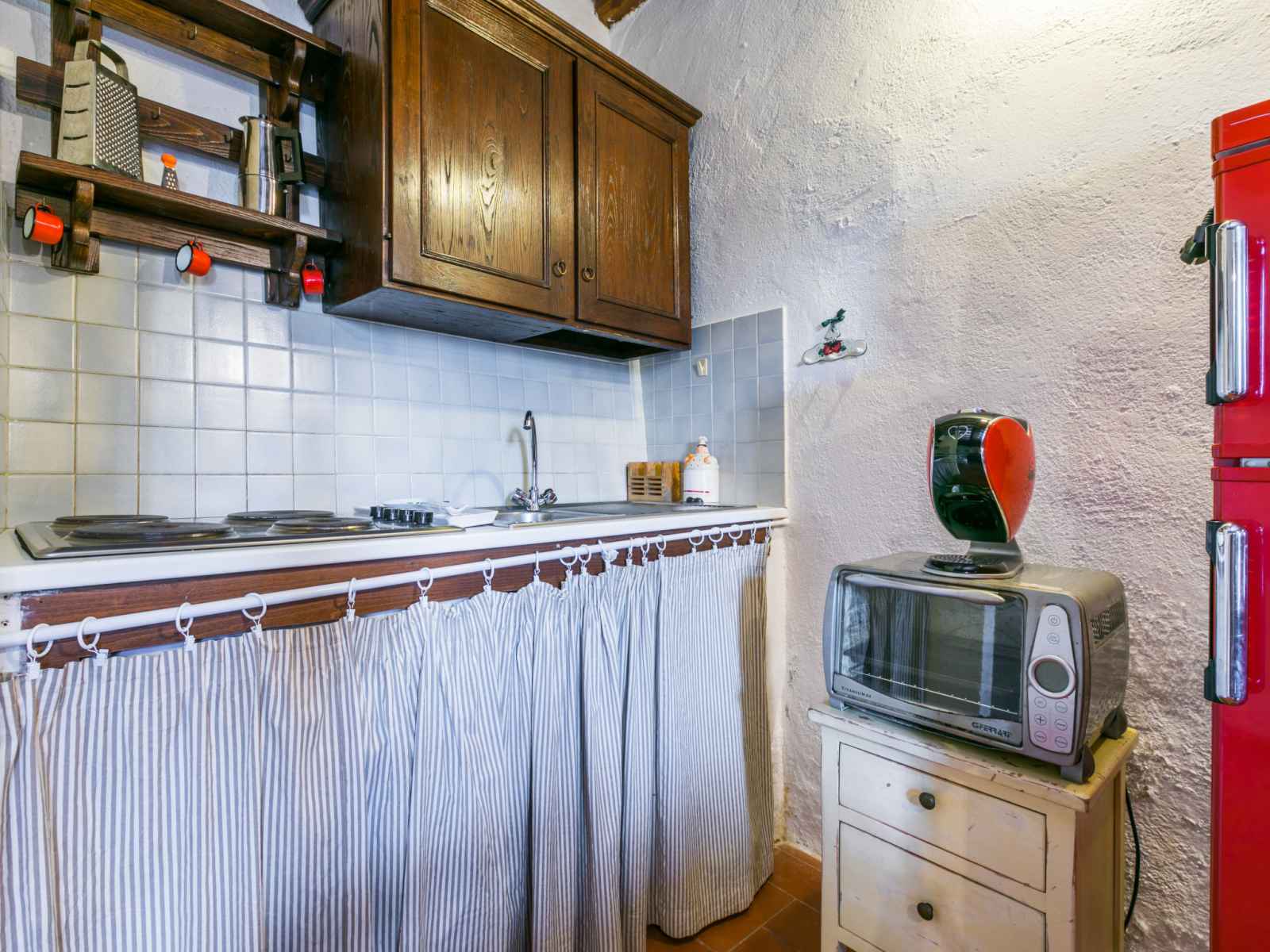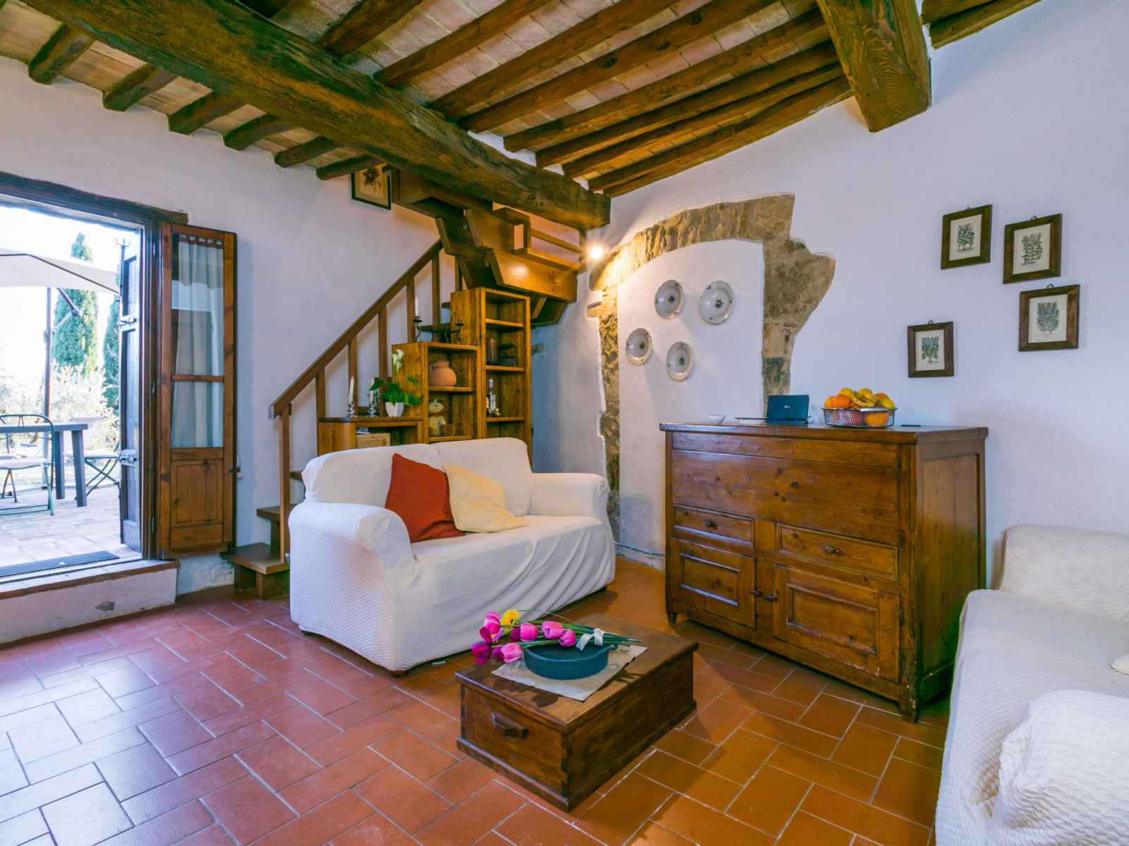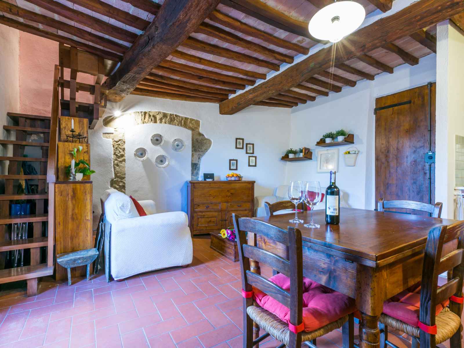 "casa patrizia", maison 3 pièces 50 m2 sur 2 niveaux. aménagement rustique et plaisant: séjour/salle à manger avec tv (écran plat). sortie sur le jardin, sur la terrasse. coin cuisine (lave-vaisselle, 4 plaques à induction, grille-pain, bouilloire électrique, micro-ondes, cafetière électrique). À l'étage supérieur: 1 chambre double. 1