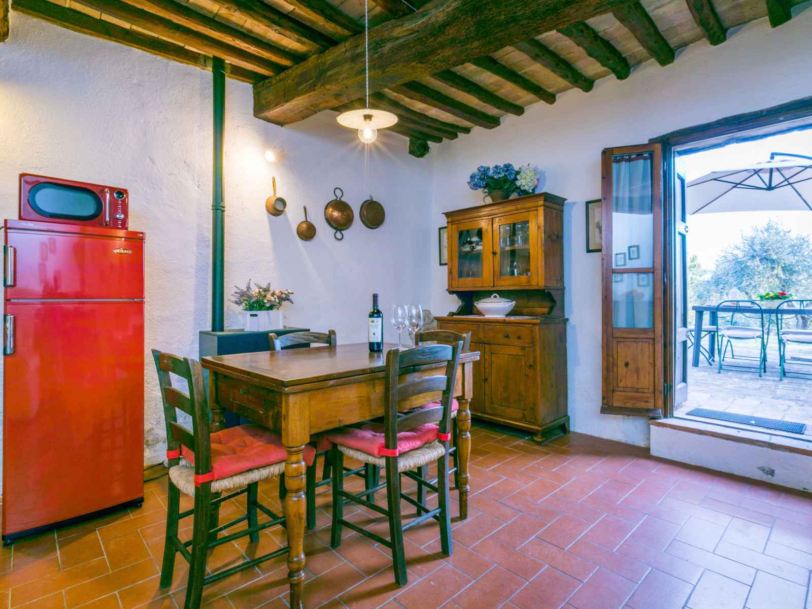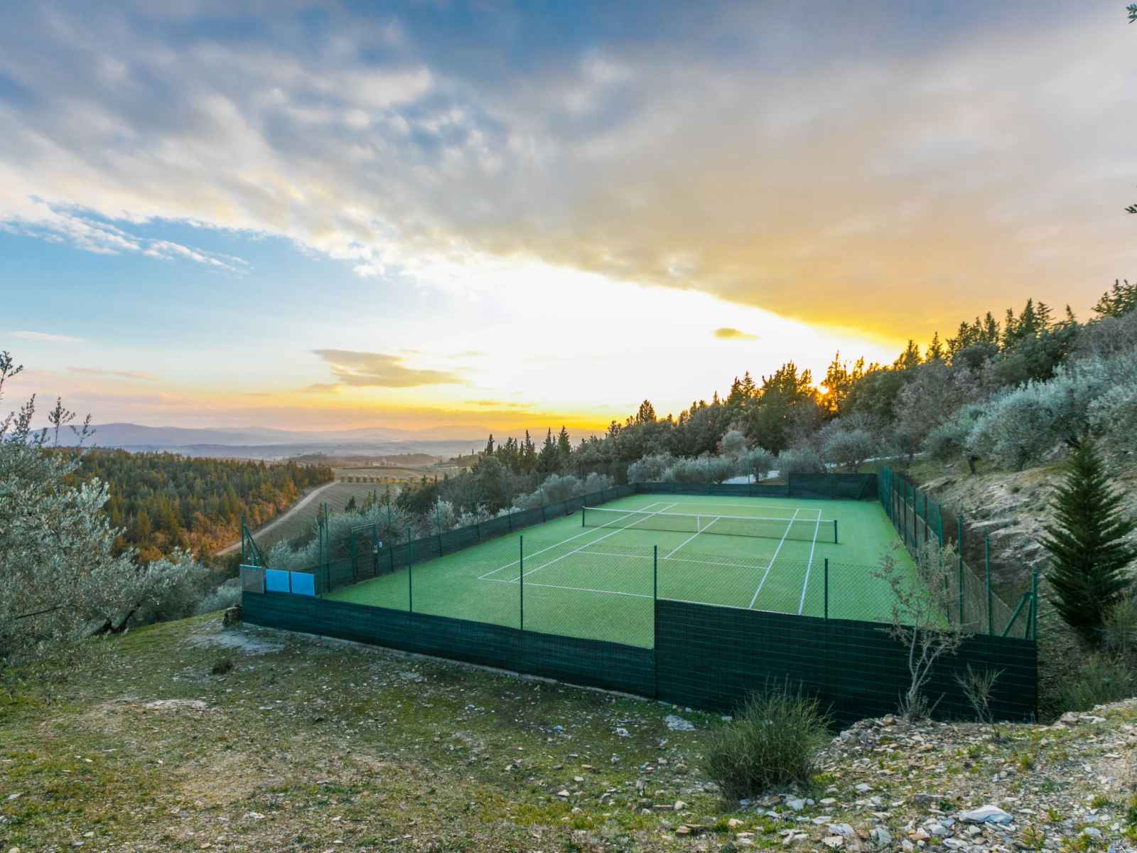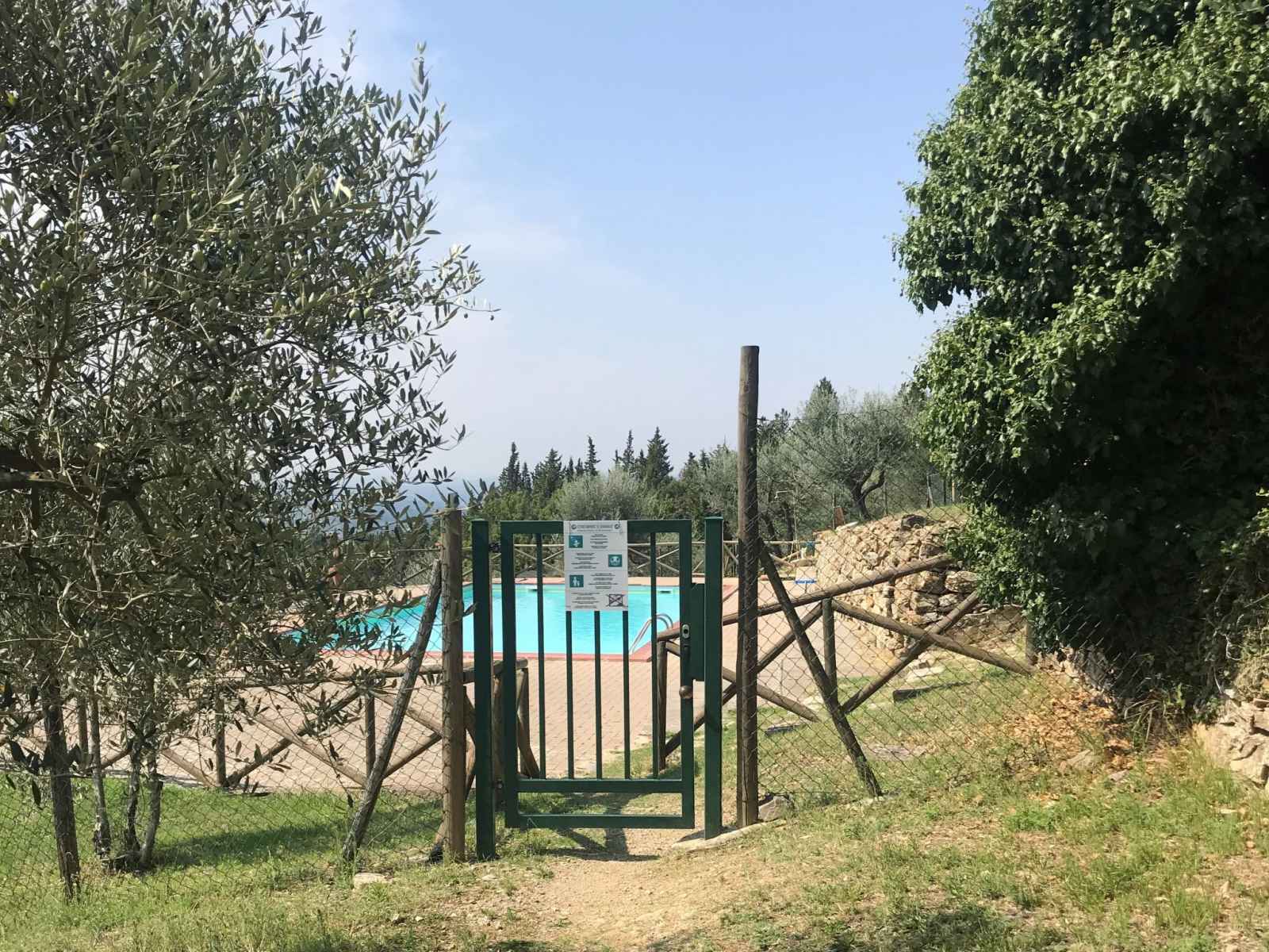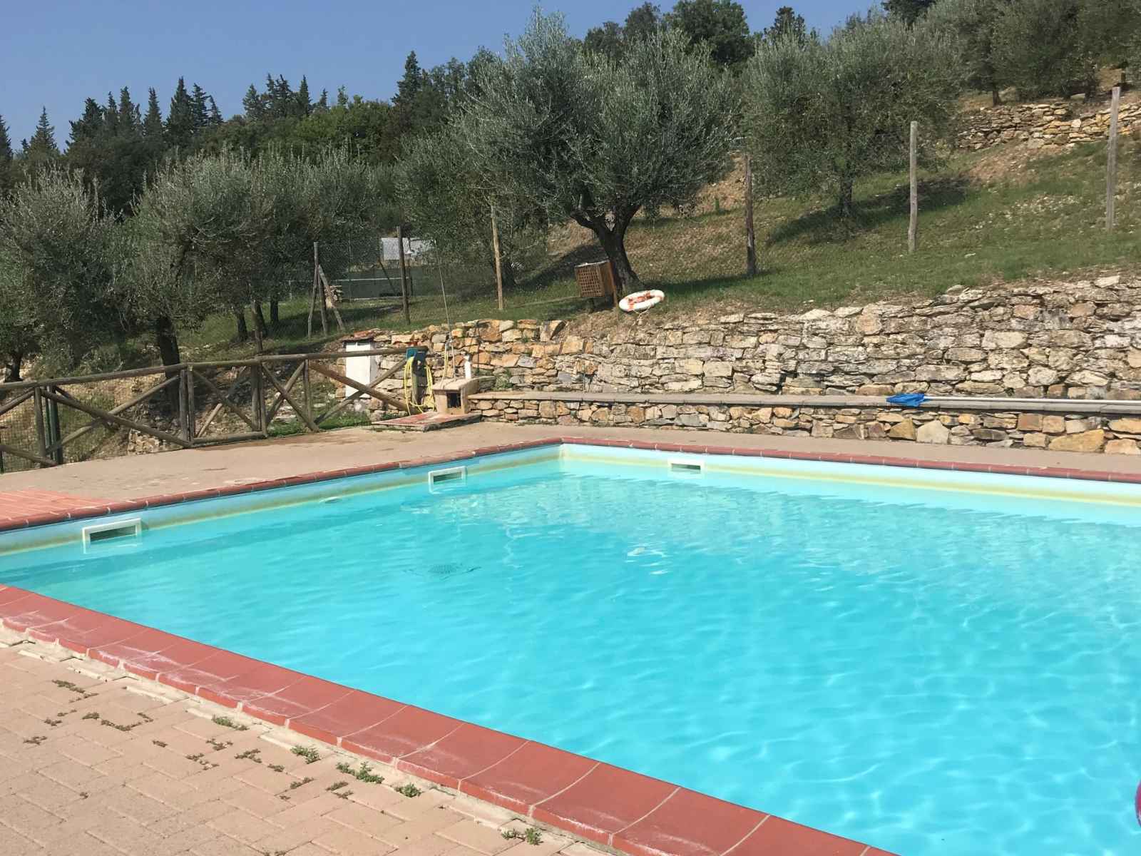 tranquille, ensoleillée sur une colline, à 100 m de la forêt, à 80 km de la mer, dans la verdure. en commun: terrain à l'état naturel, plantes et arbres, piscine cloturée (6 x 13 m, profondeur 80 - 130 cm, disponibilité saisonnière: 20.mai. - 30.sep. horaires d'ouverture de la piscine: 07:00-21:00). douche extérieure, tennis (1 x dur), terrasse, meubles de jardin, entretien de la piscine par le propriétaire/jardinier. accès en voiture jusqu'à la maison par un chemin difficile de 1.8 km de long. place de parking (pour 2 voitures) près de la maison sur le terrain. magasin d'alimentation 6 km, supermarché 6 km, restaurant 5 km, boulangerie 6 km, location de bicyclettes 12 km, arrêt de bus 6 km, gare ferroviaire "poggibonsi" 9 km, plage de sable "cecina mare" 80 km, piscine couverte 9 km, centre thermal "rapolano terme" 70 km. terrain de golf (18 trous) 55 km, tennis 100 m, chemins de randonnées pédestres depuis la maison 100 m. attractions à proximité: san gimignano 23 km, greve in chianti 26 km, siena 43 km, firenze 58 m. veuillez noter: voiture recommandée. Équipement pour bébés (inclus). déchargement et chargement des bagages à la location de vacances. port du bonnet de bain obligatoire.