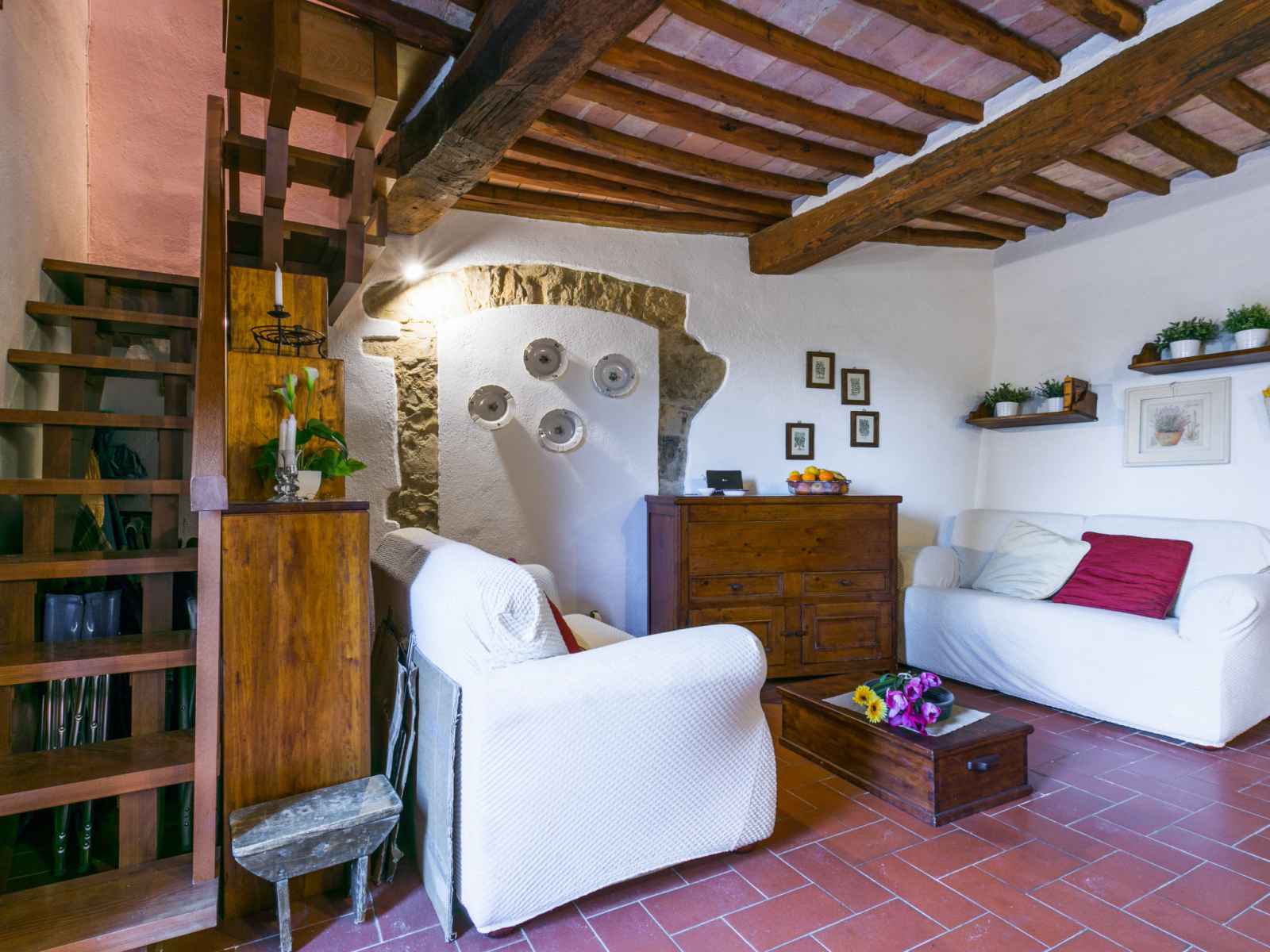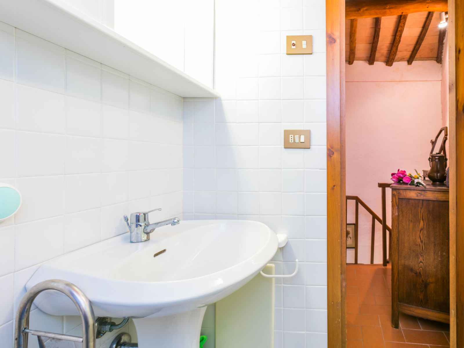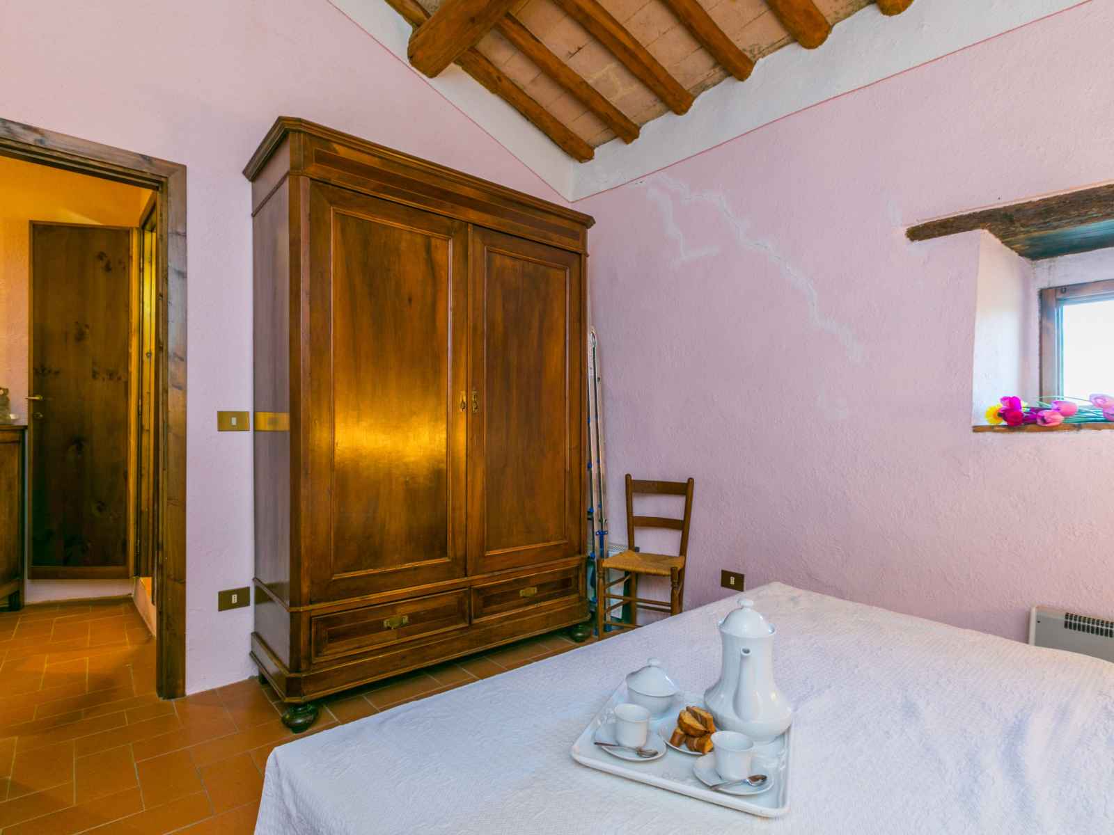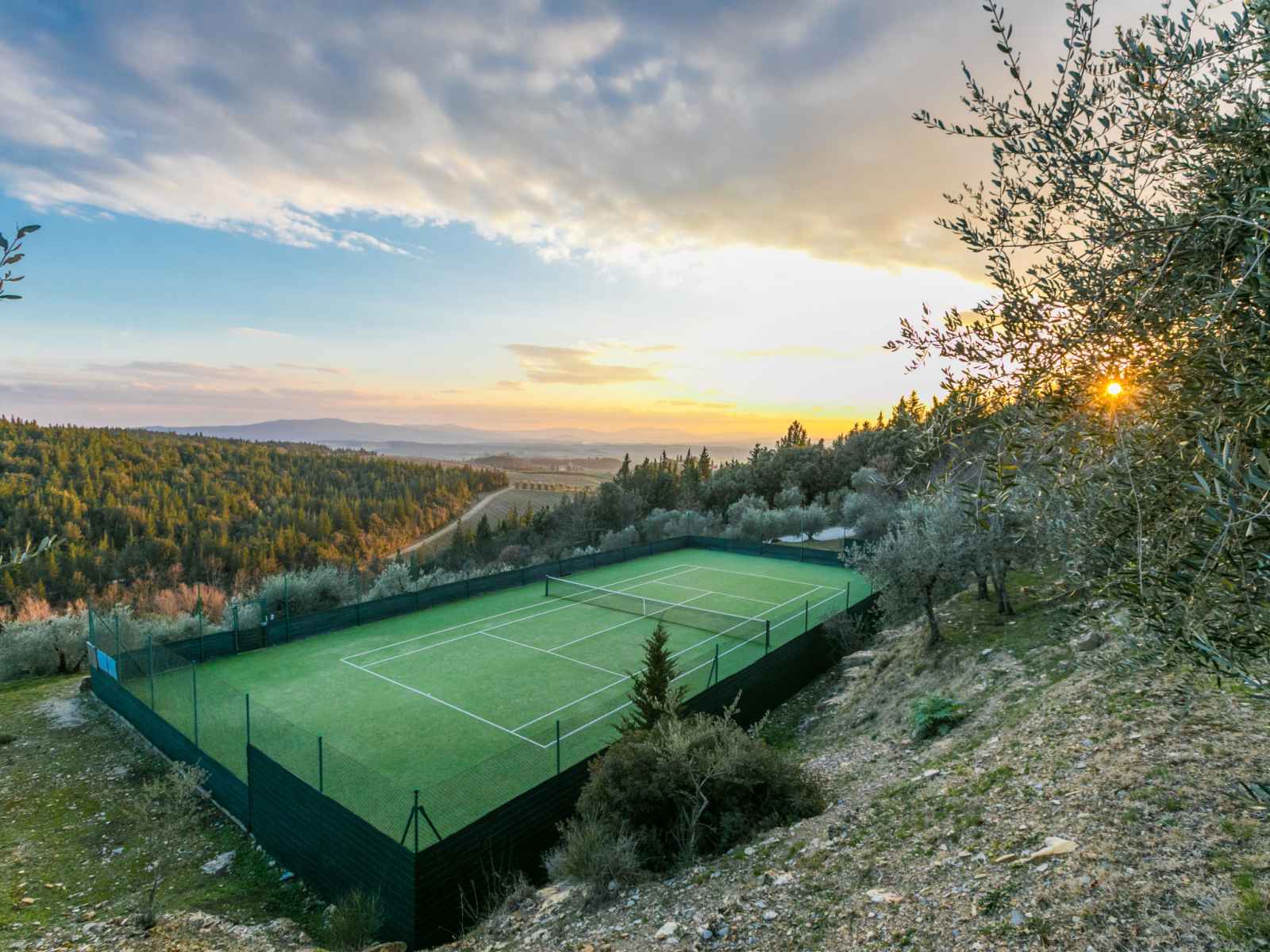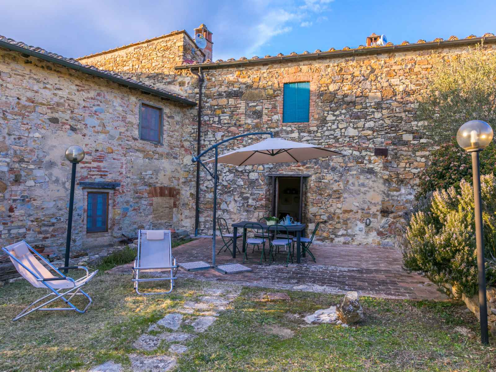 tranquille, ensoleillée sur une colline, à 100 m de la forêt, à 80 km de la mer, dans la verdure. en commun: terrain à l'état naturel, plantes et arbres, piscine cloturée (6 x 13 m, profondeur 80 - 130 cm, disponibilité saisonnière: 20.mai. - 30.sep. horaires d'ouverture de la piscine: 07:00-21:00). douche extérieure, tennis (1 x dur), terrasse, meubles de jardin, entretien de la piscine par le propriétaire/jardinier. accès en voiture jusqu'à la maison par un chemin difficile de 1.8 km de long. place de parking (pour 2 voitures) près de la maison sur le terrain. magasin d'alimentation 6 km, supermarché 6 km, restaurant 5 km, boulangerie 6 km, location de bicyclettes 12 km, arrêt de bus 6 km, gare ferroviaire "poggibonsi" 9 km, plage de sable "cecina mare" 80 km, piscine couverte 9 km, centre thermal "rapolano terme" 70 km. terrain de golf (18 trous) 55 km, tennis 100 m, chemins de randonnées pédestres depuis la maison 100 m. attractions à proximité: san gimignano 23 km, greve in chianti 26 km, siena 43 km, firenze 58 m. veuillez noter: voiture recommandée. Équipement pour bébés (inclus). déchargement et chargement des bagages à la location de vacances. port du bonnet de bain obligatoire.