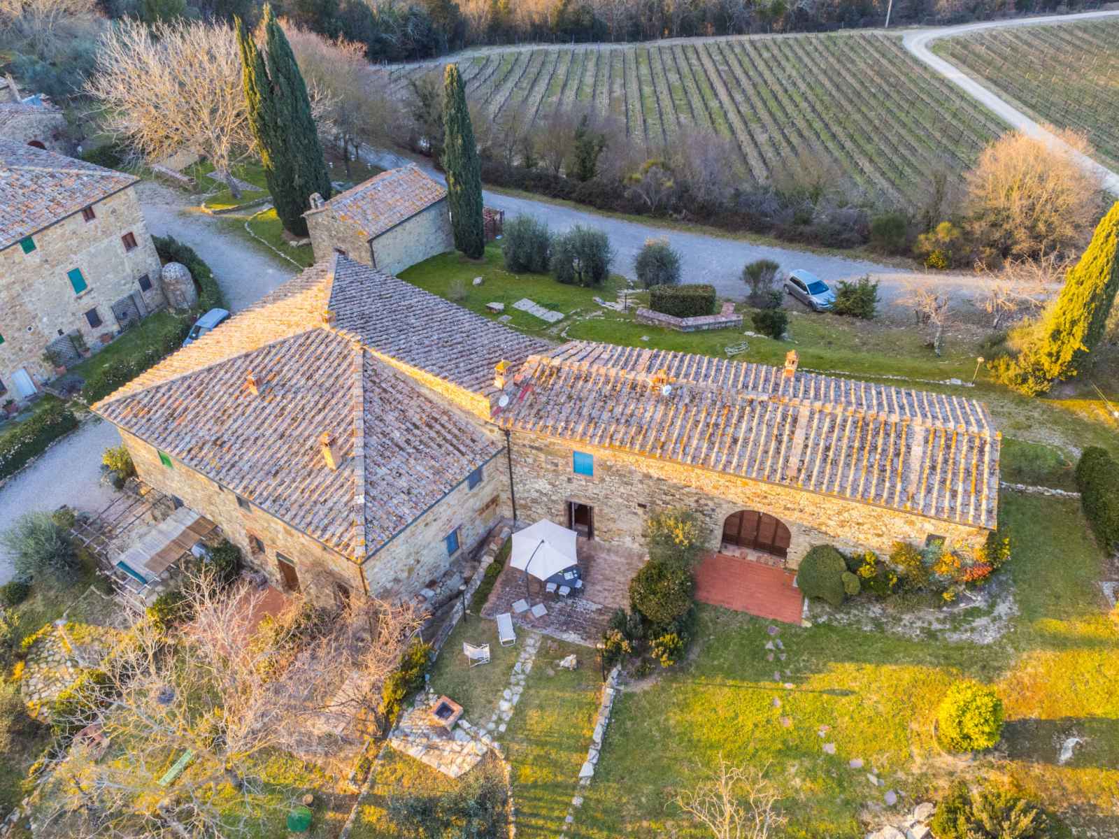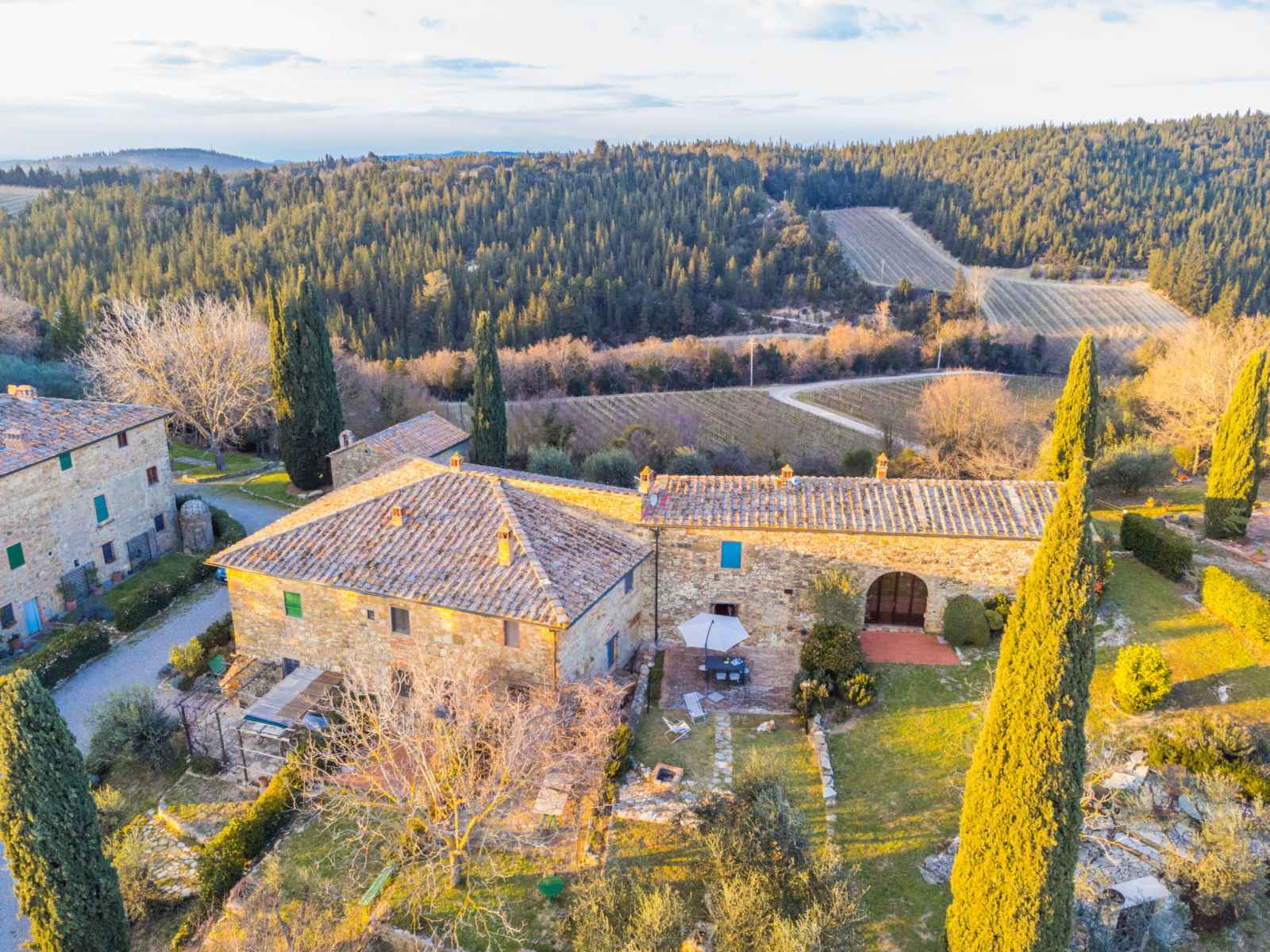 Castellina in chianti: maison mitoyenne accueillante, rustique "casa patrizia", de 2 étages, année de construction 1700, rénovée en 1990, environnée par les arbres et vignobles. 20 appartements dans la résidence. dans un hameau avec 5 maisons, à 12 km du centre de castellina in chianti, à 9 km du centre de poggibonsi, situation isolée,