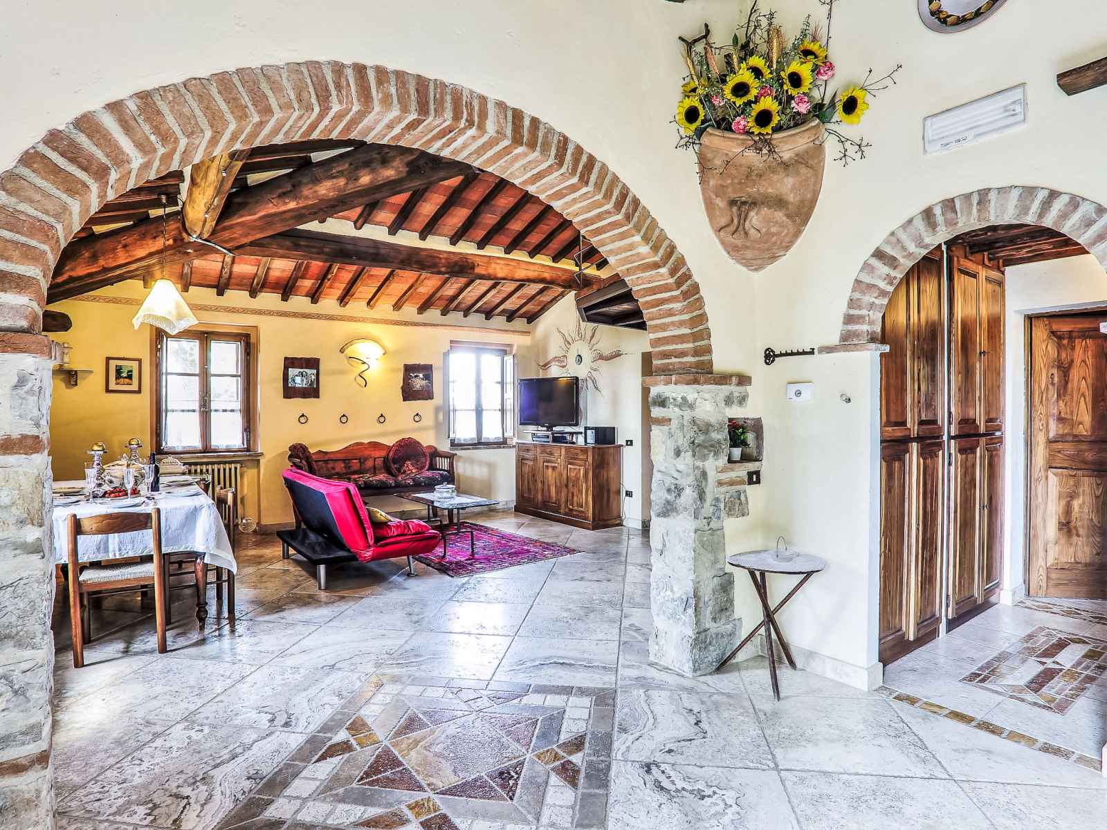 5.8 km du centre de castellina in chianti, à 26 km du centre de siena, à 42 km du centre de firenze, situation isolée, tranquille, ensoleillée sur une colline, dans la verdure. a usage privé: jardin 1 ha (clôturé), piscine cloturée (12 x 6 m, profondeur 120 - 240 cm, disponibilité saisonnière: 01.avr. - 31.oct.). douche extérieure, ping-pong, pergola, meubles de jardin, barbecue. infrastructures de la résidence: salle fitness, réduit pour bicyclettes, chauffage payable localement, possibilité de chauffage uniquement du 01.nov. - 07.avr., location de bicyclettes. a disposition: vélos (4). cuisinier possible (en sus). accès en voiture jusqu'à la maison (1.5 km chemin non goudronné). place de parking (couvert) sur le terrain. magasin d'alimentation 5.8 km, supermarché 5.8 km, restaurant 5.8 km, arrêt de bus 3.5 km, centre thermal "rapolano terme" 50 km. attractions à proximité: san donato in poggio 16 km, radda in chianti 16 km, monteriggioni 18 km, gaiole in chianti 19 km, greve in chianti 25 km, san gimignano 47 km. résidence avec portail électrique. vidéosurveillance à l'extérieur.