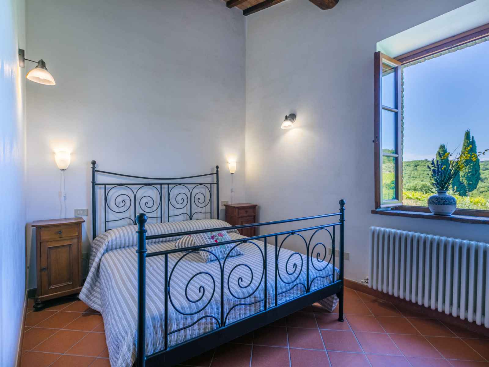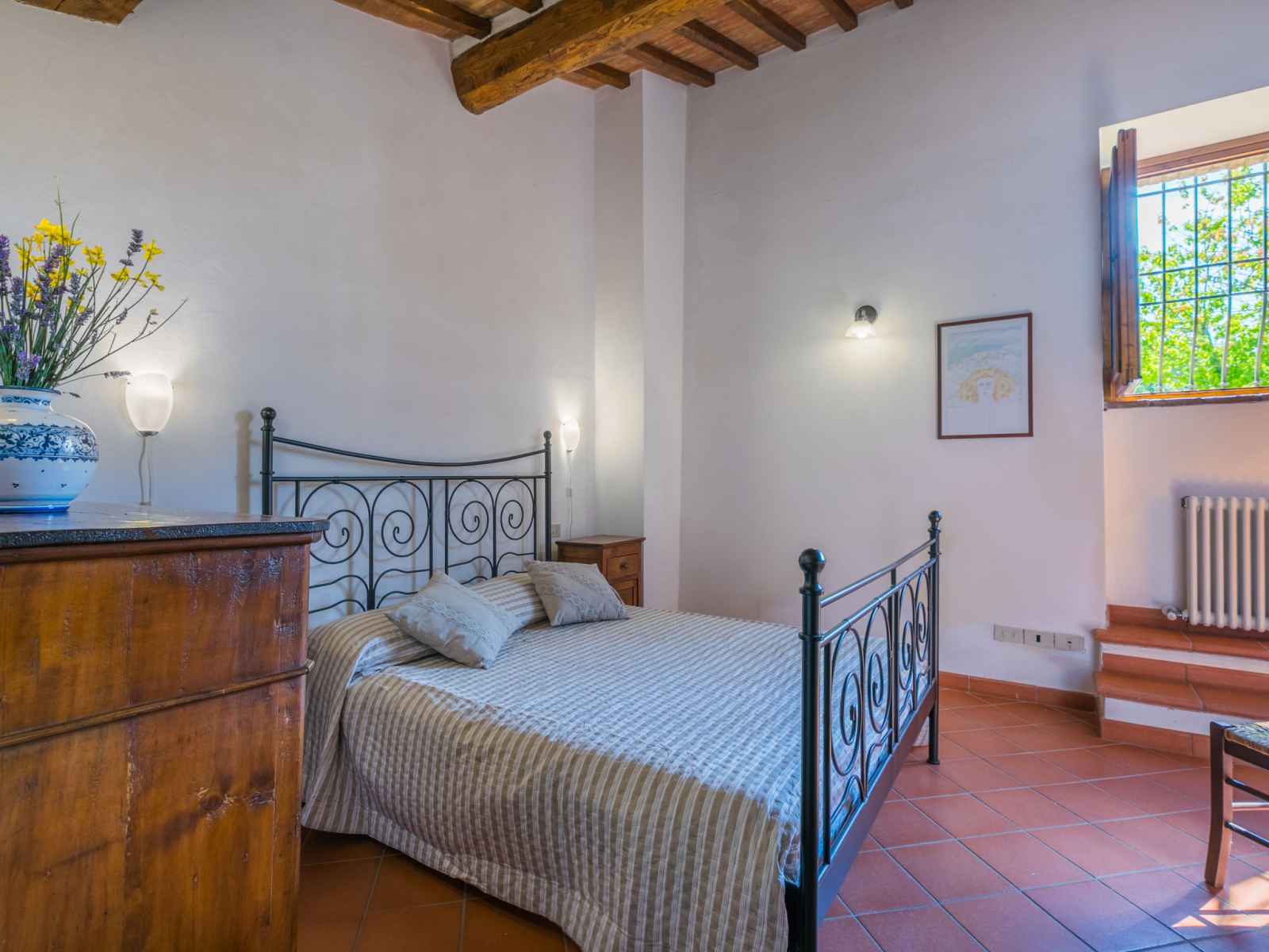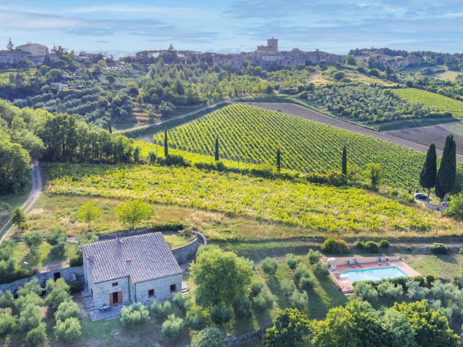 disponibilité saisonnière: 15.mai. - 15.oct.). douche extérieure, jardinet, terrasse, meubles de jardin, entretien de la piscine par le propriétaire/jardinier. infrastructures de la maison: air-conditionné, lave-linge, sèche-linge (en commun). accès en voiture jusqu'à la maison par un chemin très difficile, étroite de 300 m de long. place de parking près de la maison. magasins 1 km, magasin d'alimentation 1 km, supermarché 1 km, restaurant 1 km, bar 500 m, boulangerie 1 km, zone piétonne 1 km, centre à 15 minutes à pieds, arrêt de bus 1 km, plage de sable "cecina mare" 88 km, centre thermal "rapolano terme" 50 km. chemins de randonnées pédestres depuis la maison 200 m. attractions à proximité: panzano in chianti 13 km, greve in chianti 20 km, gaiole in chianti 20 km, siena 26 km, san gimignano 42 km, firenze 50 km. veuillez noter: équipement pour bébés (inclus).