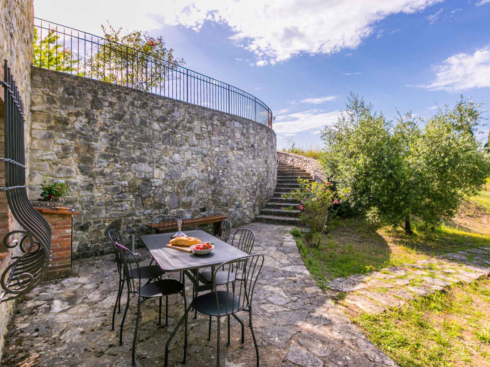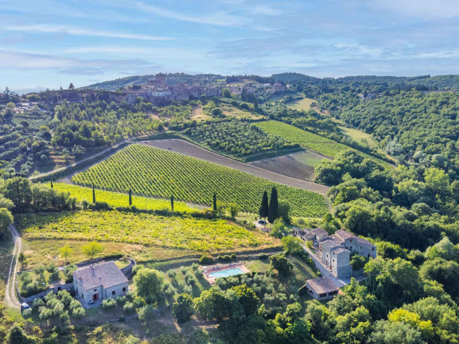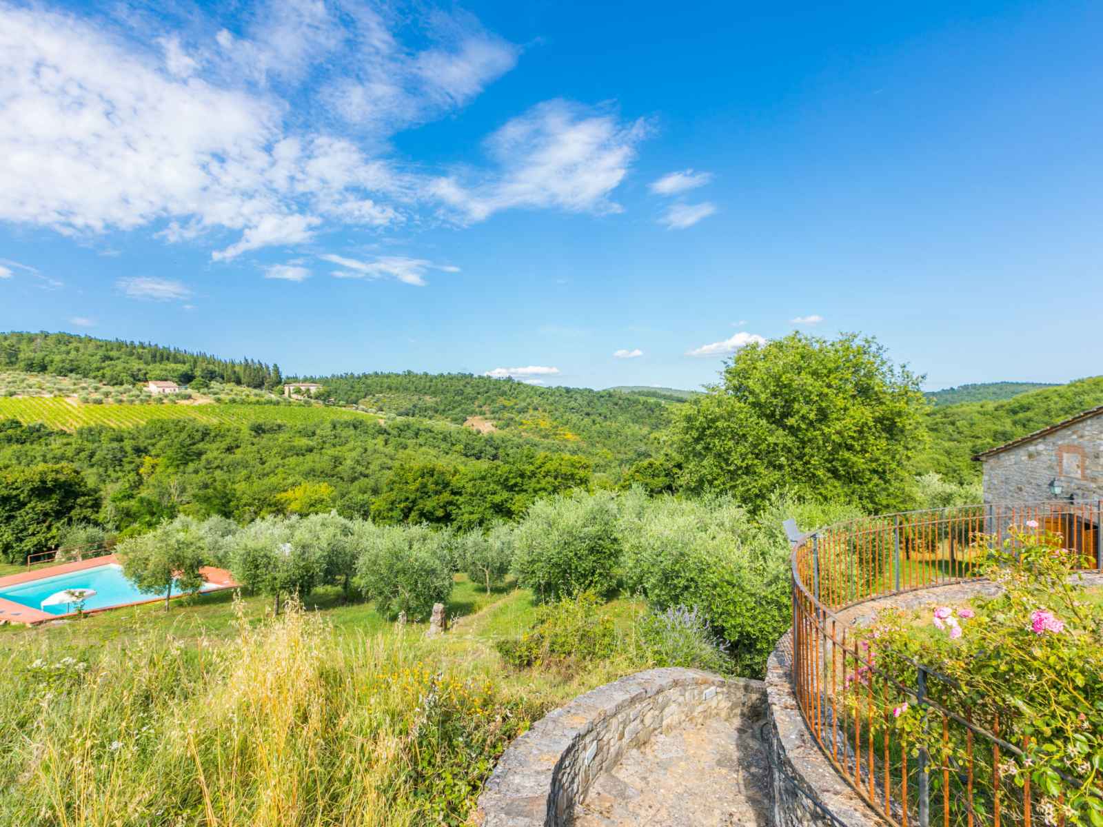 disponibilité saisonnière: 15.mai. - 15.oct.). douche extérieure, jardinet, terrasse, meubles de jardin, entretien de la piscine par le propriétaire/jardinier. infrastructures de la maison: air-conditionné, lave-linge, sèche-linge (en commun). accès en voiture jusqu'à la maison par un chemin très difficile, étroite de 300 m de long. place de parking près de la maison. magasins 1 km, magasin d'alimentation 1 km, supermarché 1 km, restaurant 1 km, bar 500 m, boulangerie 1 km, zone piétonne 1 km, centre à 15 minutes à pieds, arrêt de bus 1 km, plage de sable "cecina mare" 88 km, centre thermal "rapolano terme" 50 km. chemins de randonnées pédestres depuis la maison 200 m. attractions à proximité: panzano in chianti 13 km, greve in chianti 20 km, gaiole in chianti 20 km, siena 26 km, san gimignano 42 km, firenze 50 km. veuillez noter: équipement pour bébés (inclus).