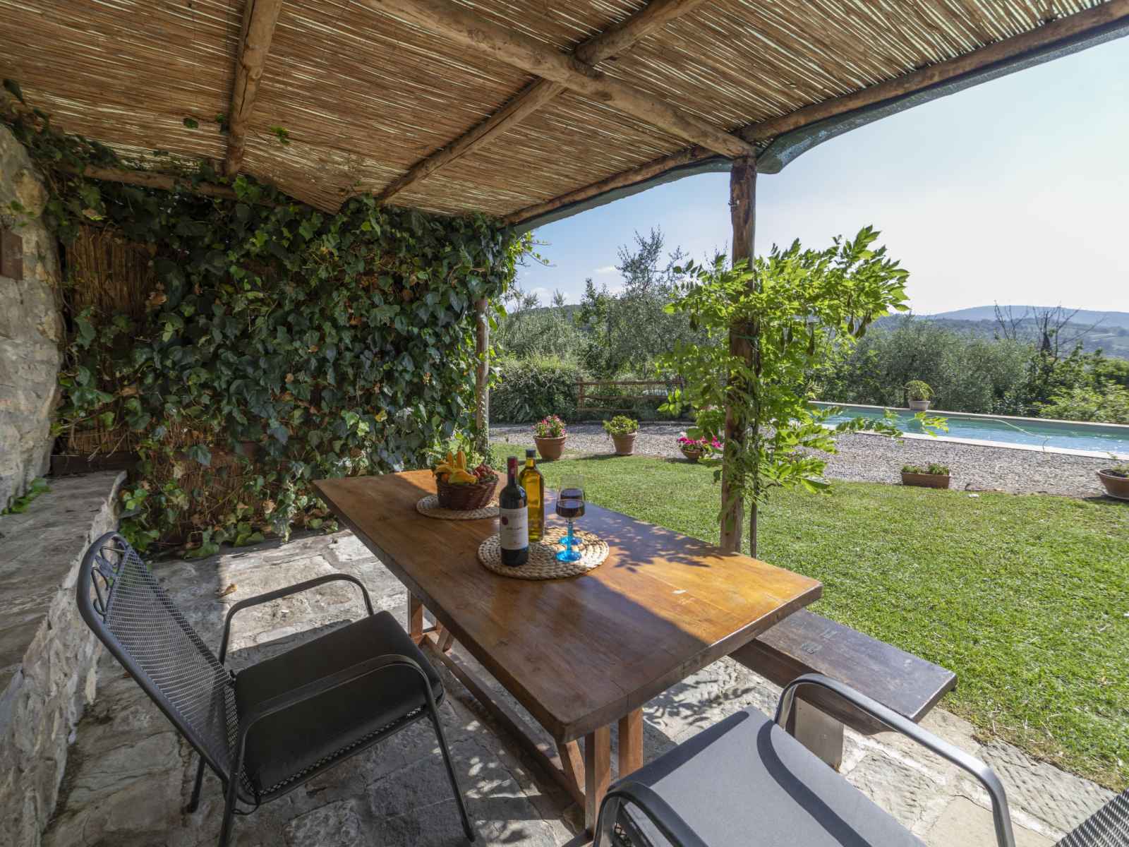 extérieure, pergola, meubles de jardin, barbecue. chauffage payable localement, possibilité de chauffage uniquement du 01.nov. - 07.avr.. place de parking sur le terrain. magasin d'alimentation, supermarché 500 m, arrêt de bus 50 m, centre thermal "rapolano terme" 52 km. attractions à proximité: san donato in poggio 10 km, radda in chianti 11 km, panzano in chianti 13 km, greve in chianti, monteriggioni 19 km, san gimignano, siena 27 km, volterra 47 km.