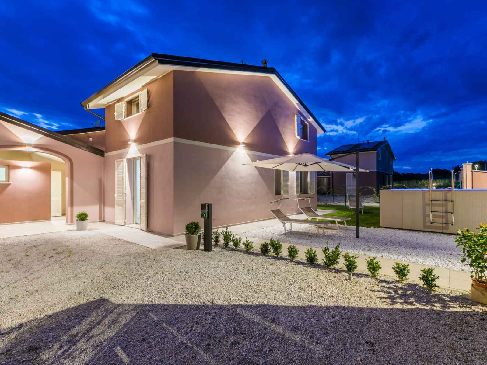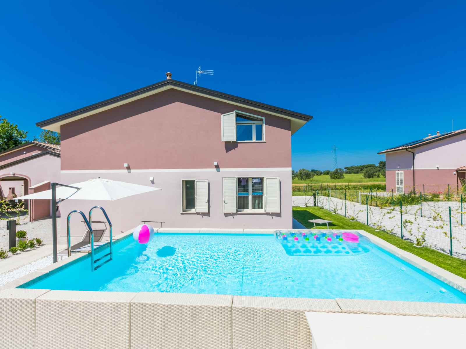 Résidence "borgo il vallin delle conche", année de construction 2025. 4 maisons dans la résidence. À 2 km du centre de san pietro in palazzi, à 4 km du centre de cecina, à 4.8 km de la mer, à 4.8 km de la plage. a usage privé: terrain 600 m2 (clôturé), jardin, piscine (hors sol) (3 x 5 m, profondeur 125 - 125 cm, disponibilité