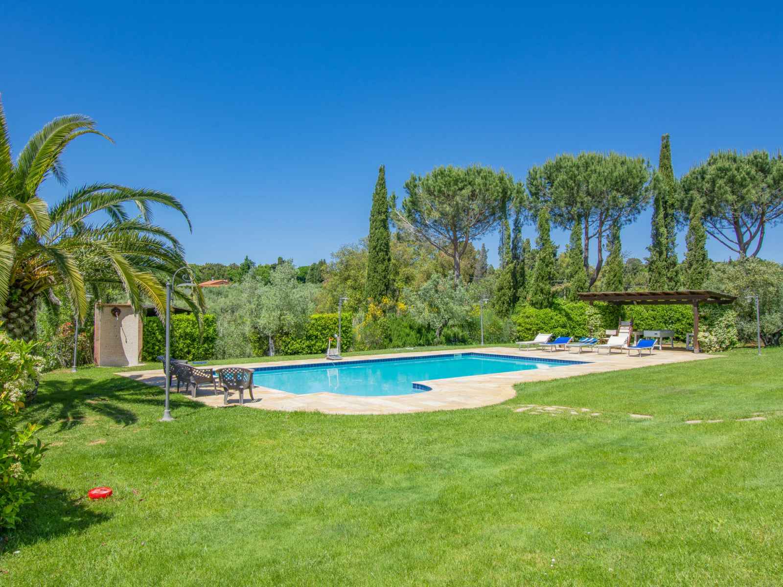 jusqu'à la mer. belle maison individuelle "villa rosa", de 2 étages, environnée par les arbres et champs. situation tranquille, ensoleillée, à 6 km de la mer. a usage privé: jardin propice à la détente, piscine (8 x 12 m, disponibilité saisonnière: 01.mai. - 30.oct.) avec systeme d'électolyseur au sel. wc dans l'espace piscine, douche extérieure, bain à remous , pergola, entretien de la piscine par le propriétaire/jardinier. infrastructures de la maison: connexion wifi, chauffage central, lave-linge. accès en voiture (200 m chemin non goudronné). place de parking (pour 3 voitures, couvert). magasins 5 km, supermarché 5 km, restaurant 4 km, arrêt de bus 3 km, gare ferroviaire "cecina" 7 km, centre thermal "donoratico" 18 km. marina 22 km. attractions à proximité: pisa 70 km, lucca 90 km, firenze 120 km.
