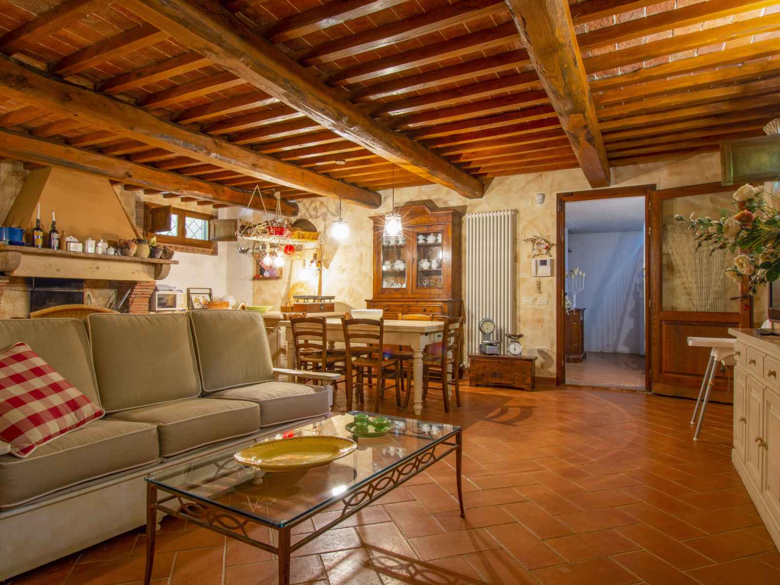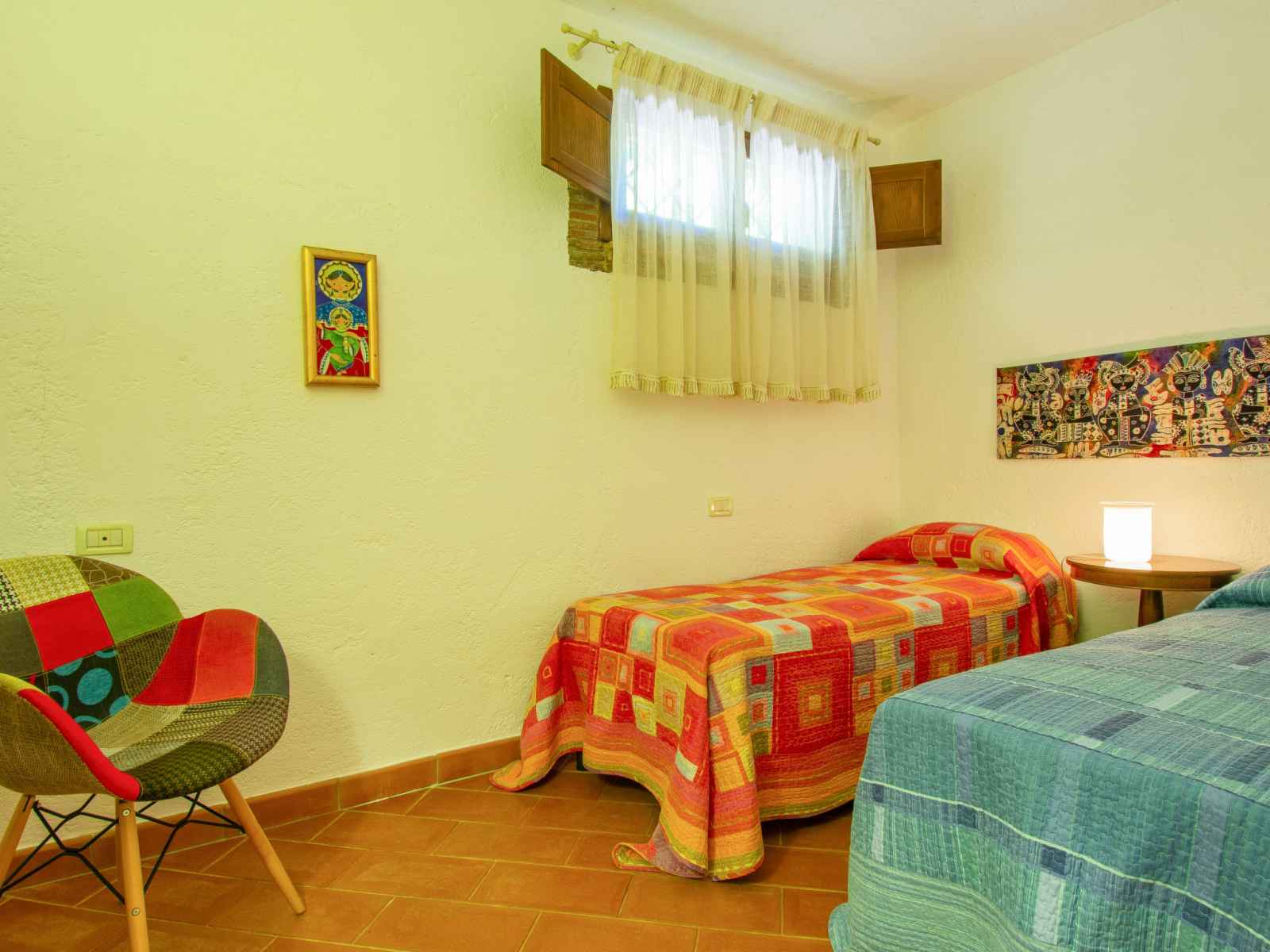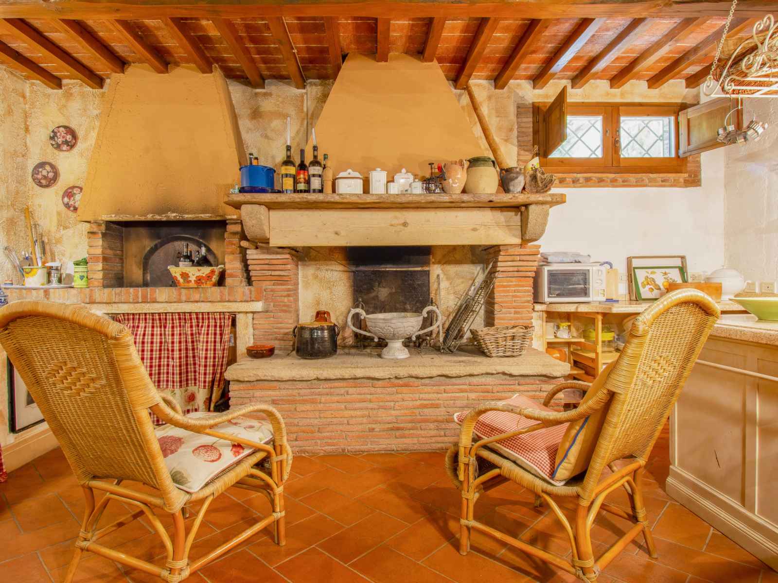 séparés et TV (câblée). 1 chambre avec 1 lit double. 1 chambre avec 1 lit (140 cm, longueur 195 cm). Grande cuisine (four, lave-vaisselle, 4 feux, grille-pain, bouilloire électrique, congélateur, cafetière électrique). Bain/douche/bidet/WC. Chauffage au gaz. À l'étage inférieur: grand séjour/salle à manger avec cheminée et TV (câblée) (écran plat). 1 chambre double avec 1 lit double. 1 chambre avec 2 lits. Cuisine ouverte (four, lave-vaisselle, 4 plaques vitrocéramiques, micro-ondes). Bain/douche/bidet/WC. Sol en pierres naturelles. Mobilier confortable de style campagnard. Grande terrasse 120 m2. Meubles de terrasse, barbecue. A disposition: fer à repasser, chaise haute pour enfant, sèche-cheveux. Veuillez noter: adapté(e) aux familles. Maison non-fumeur. Maximum 2 animaux/ chiens autorisés. Extincteur. Si le nombre d’occupants n’atteint pas le maximum, un étage restera fermé. IT049007C246KTY6YM
