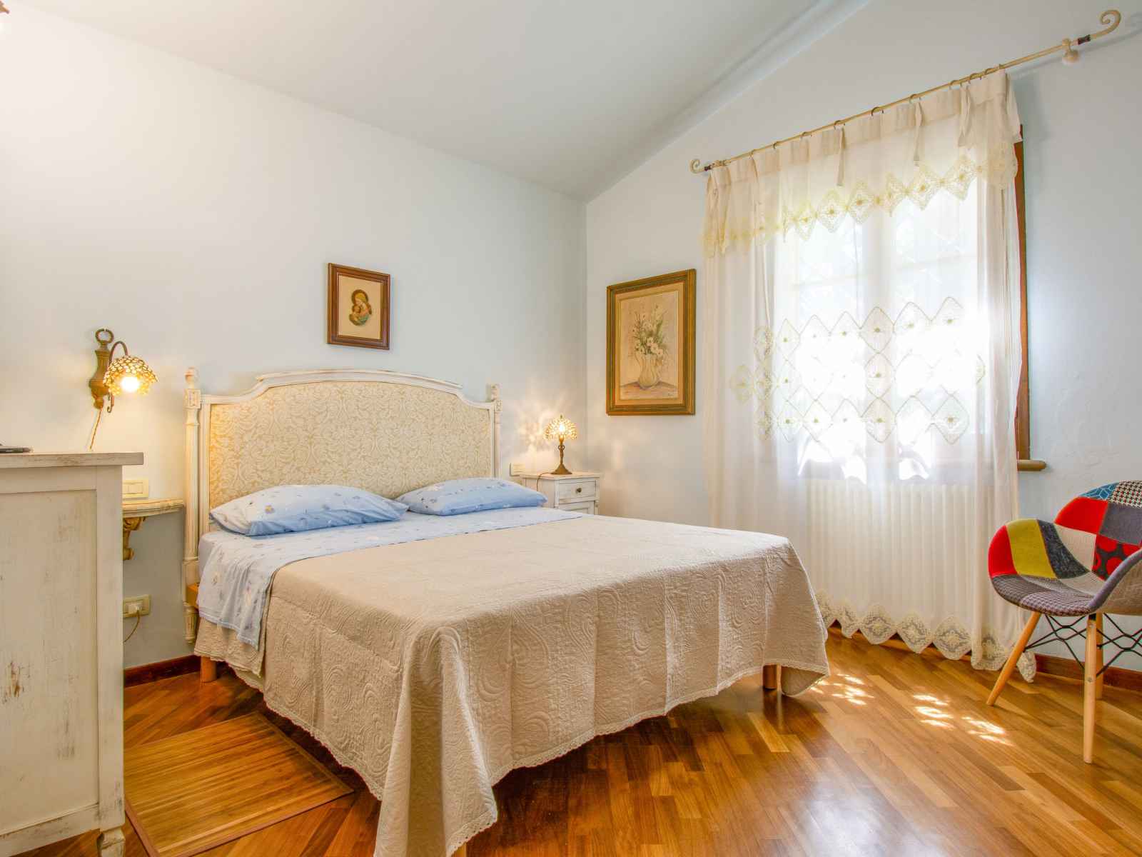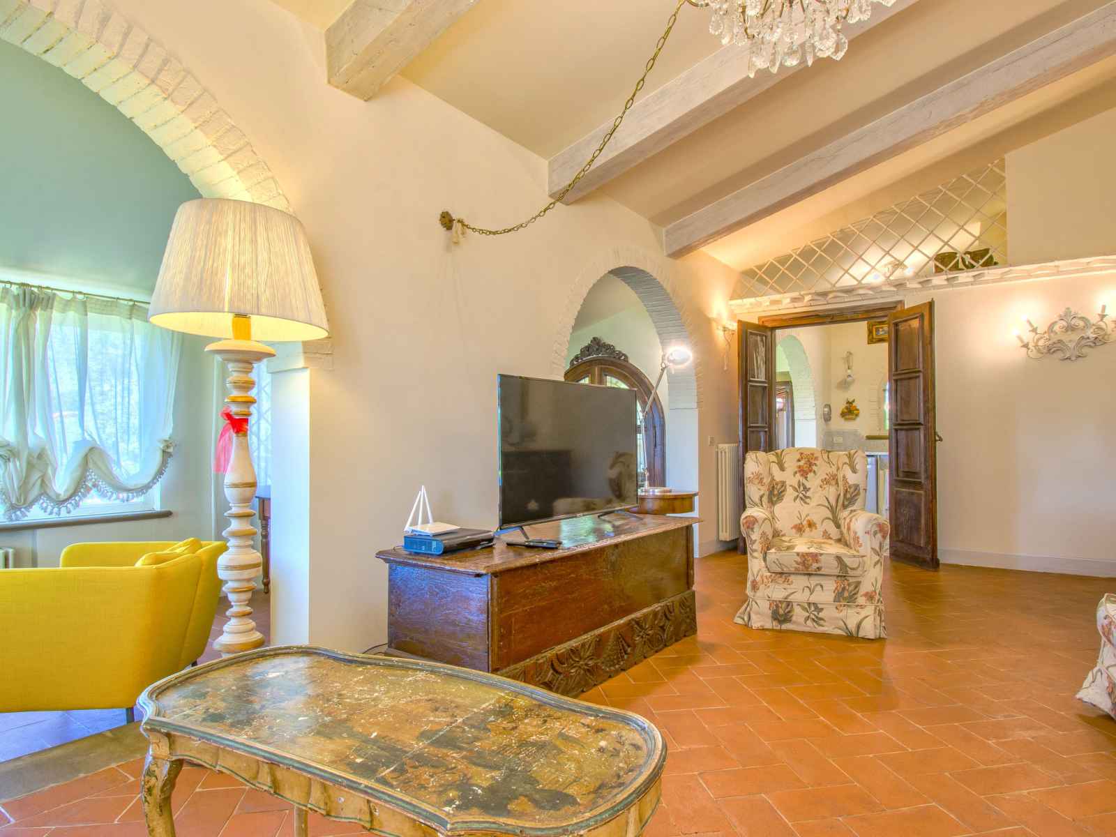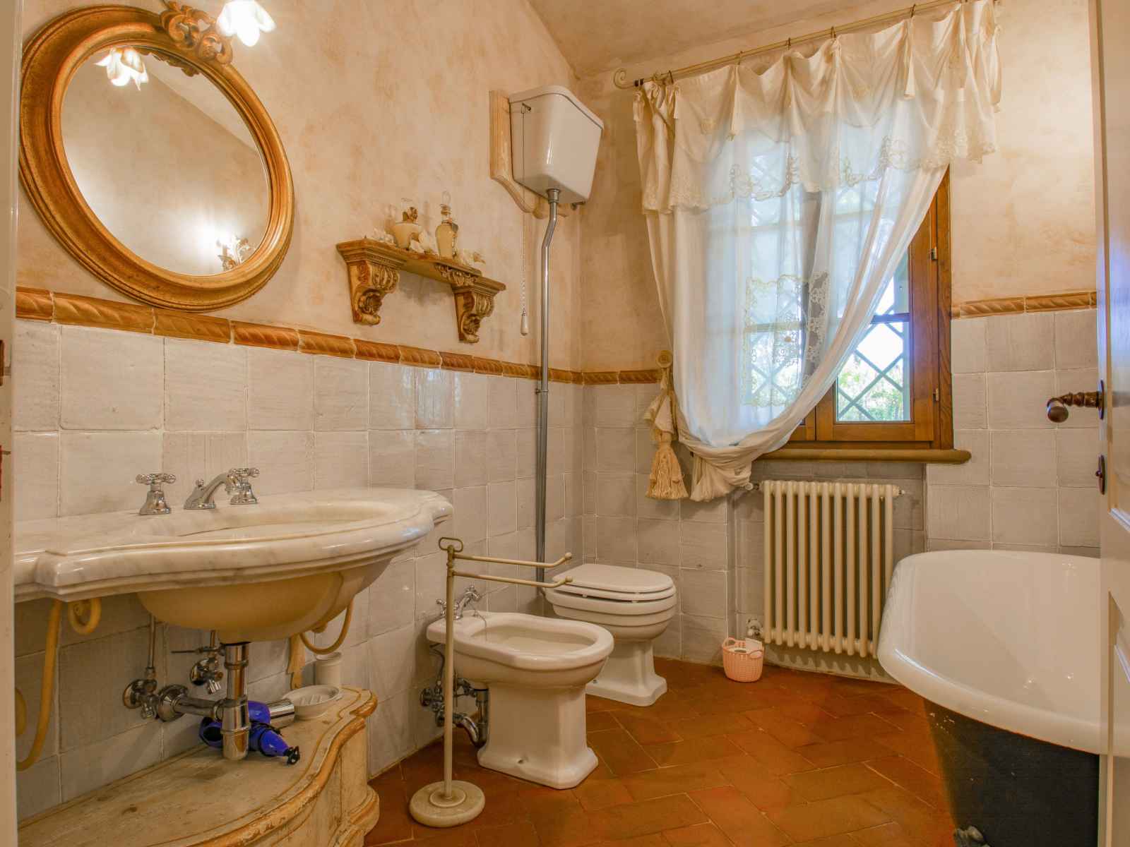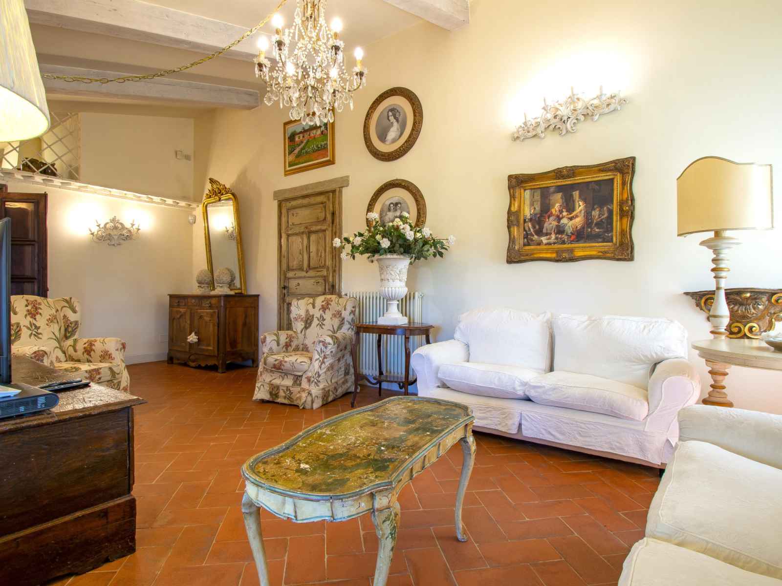séparés et TV (câblée). 1 chambre avec 1 lit double. 1 chambre avec 1 lit (140 cm, longueur 195 cm). Grande cuisine (four, lave-vaisselle, 4 feux, grille-pain, bouilloire électrique, congélateur, cafetière électrique). Bain/douche/bidet/WC. Chauffage au gaz. À l'étage inférieur: grand séjour/salle à manger avec cheminée et TV (câblée) (écran plat). 1 chambre double avec 1 lit double. 1 chambre avec 2 lits. Cuisine ouverte (four, lave-vaisselle, 4 plaques vitrocéramiques, micro-ondes). Bain/douche/bidet/WC. Sol en pierres naturelles. Mobilier confortable de style campagnard. Grande terrasse 120 m2. Meubles de terrasse, barbecue. A disposition: fer à repasser, chaise haute pour enfant, sèche-cheveux. Veuillez noter: adapté(e) aux familles. Maison non-fumeur. Maximum 2 animaux/ chiens autorisés. Extincteur. Si le nombre d’occupants n’atteint pas le maximum, un étage restera fermé. IT049007C246KTY6YM