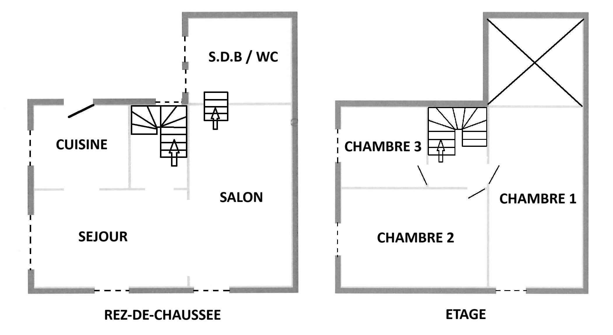 stocker valises ou autres. RDC: cuisine aménagée ouverte sur séjour et salon (convertible 140x190) et salle de bains/wc avec baignoire sur pieds (accès par 8 marches). Etage : 3 chambres spacieuses (1 et 2 : lit 160x200, 3: 2 lits 90x190 jumelables). Equipements inclus : wifi, lit/chaise bébé, produits d'accueil salle de bains, épicerie salée et sucrée, nombreux jeux et livres/BD pour adultes et enfants. Tout compris: électricité, chauffage gaz, draps (lits faits à l'arrivée), linge de toilette et ménage fin de séjour. Taxe de séjour en plus.