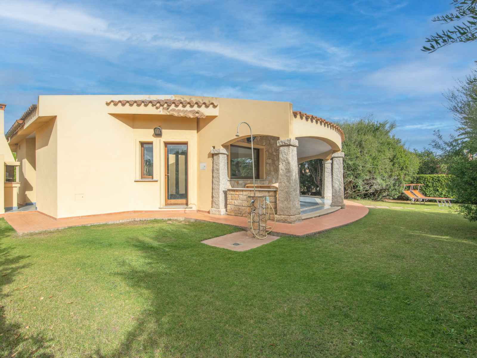 pelouse et plantes. douche extérieure, terrasse, meubles de jardin, barbecue. places de parking centrales. magasins 2.5 km, magasin d'alimentation 700 m, supermarché 2.5 km, restaurant 2.5 km, arrêt de bus 3 km, plage de sable 400 m. veuillez noter: la photo ne montre qu’un exemple de location de vacances. les locations peuvent également se différencier par l'emplacement, la taille et les caractéristiques du terrain.