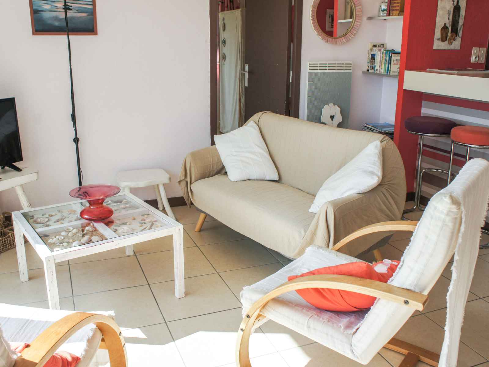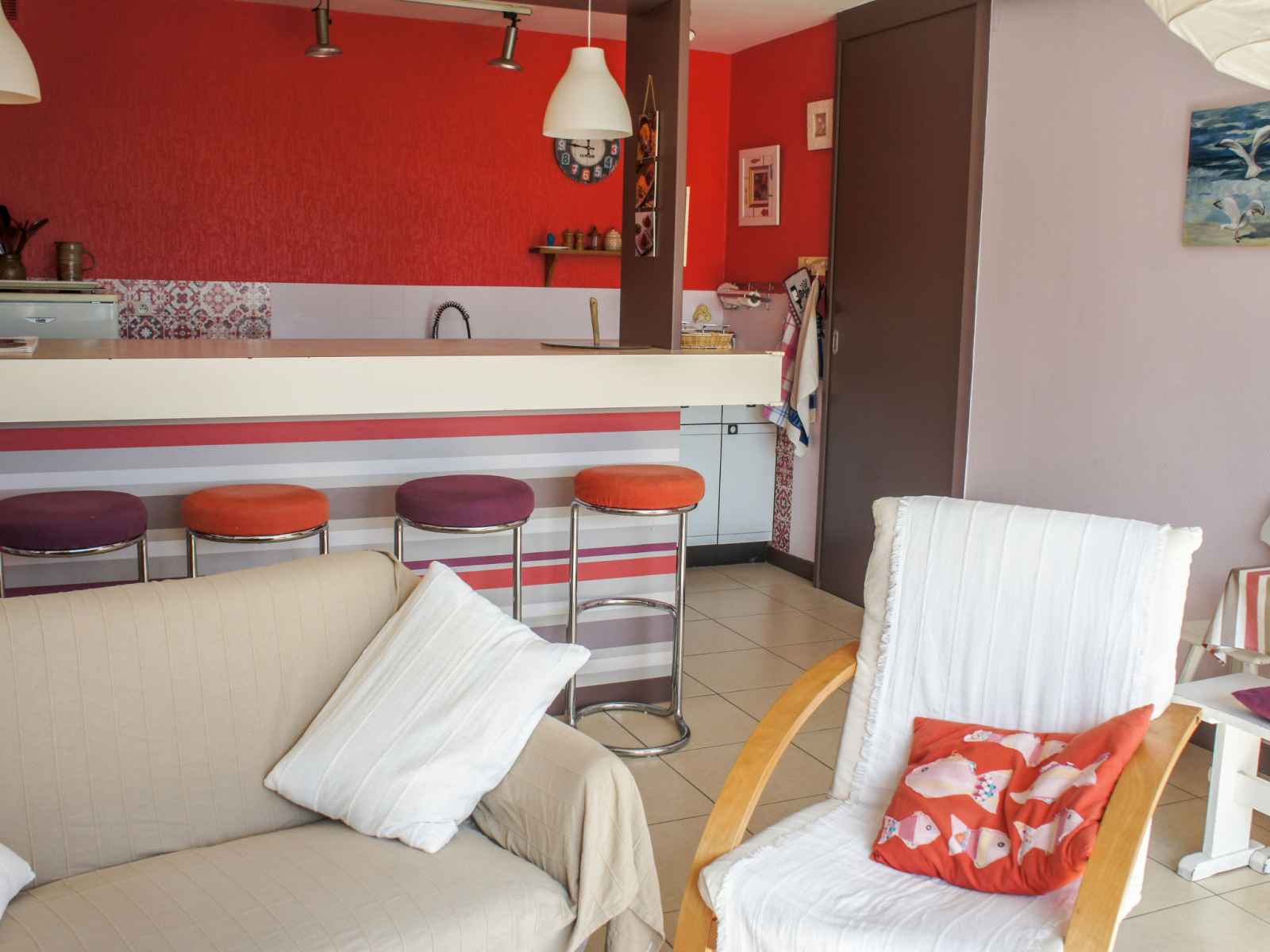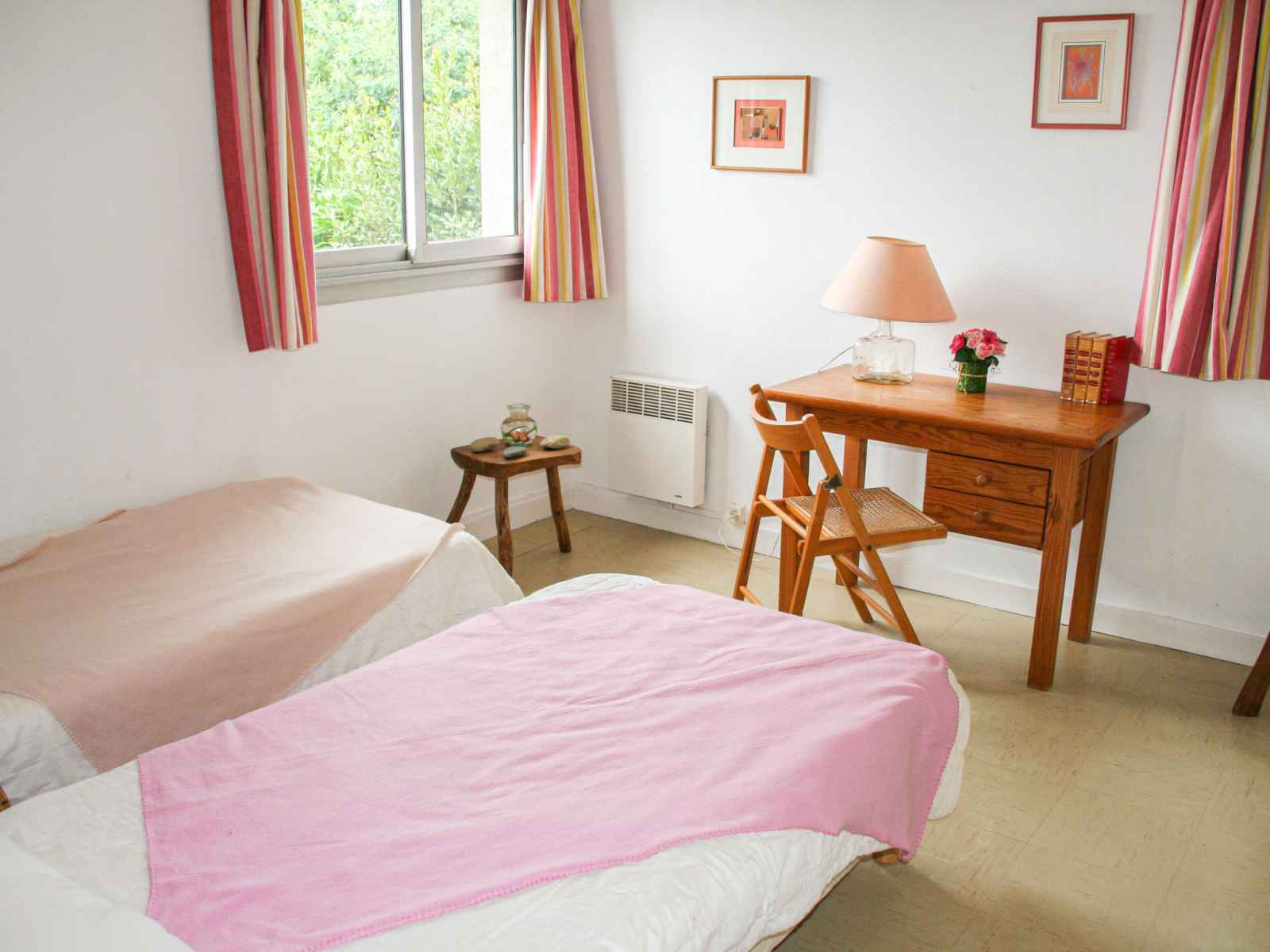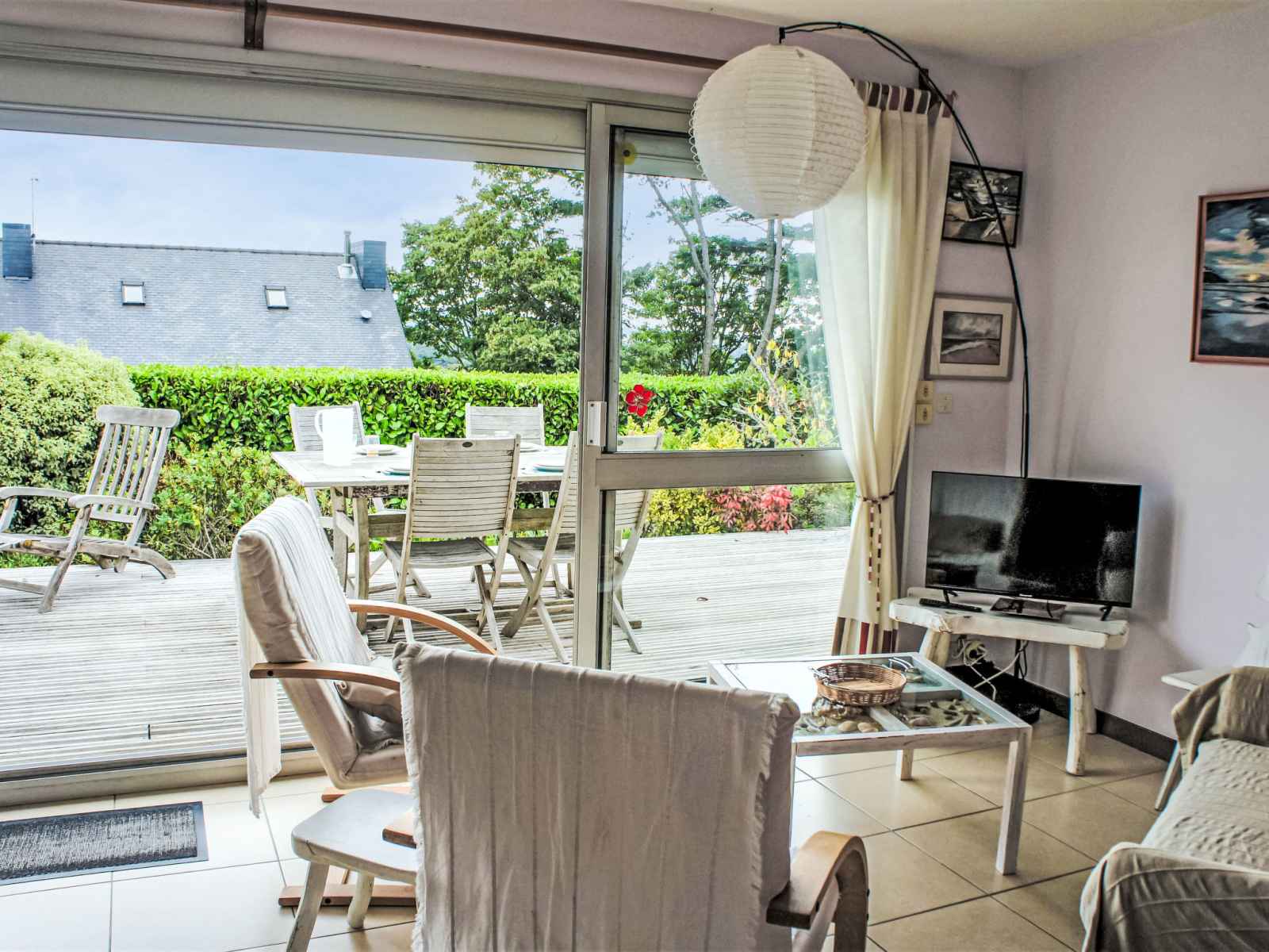 Maison 3 pièces 60 m2, situation sud. aménagement fonctionnel: séjour 25 m2 avec tv (écran plat), volet roulant électrique. sortie sur la terrasse. 1 chambre 10 m2 avec 1 grand-lit (1 x 140 cm, longueur 190 cm). 1 chambre 12 m2 avec 2 lits (90 cm, longueur 190 cm). coin cuisine (mini-four, lave-vaisselle, 4 plaques vitrocéramiques,