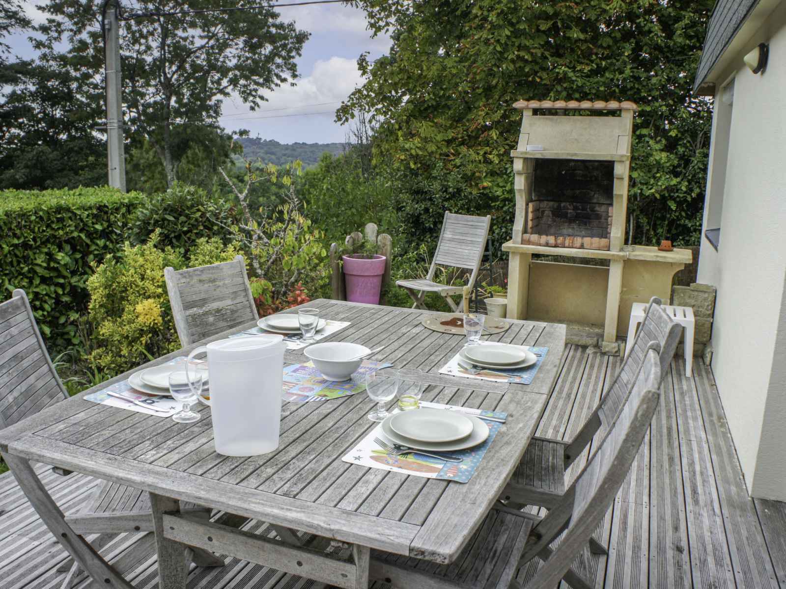 à proximité: quimper 55 km, locronan 34 km, brest 59 km, douarnenez 42 km. veuillez noter: voiture recommandée. maison située sur un terrain en pente, accessible par une dizaine de marches.